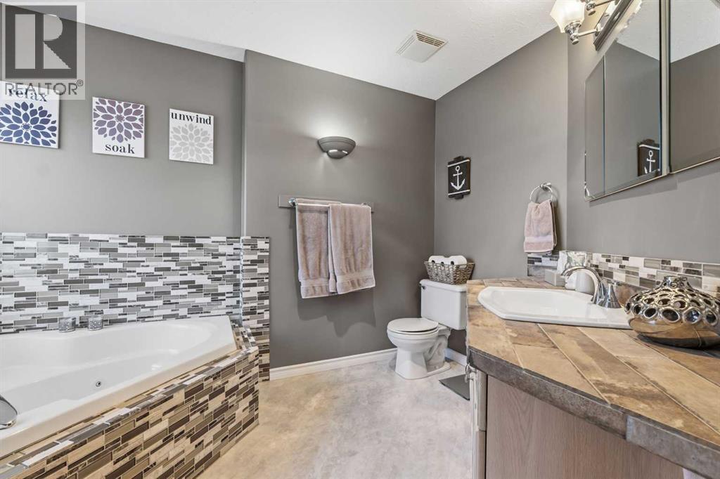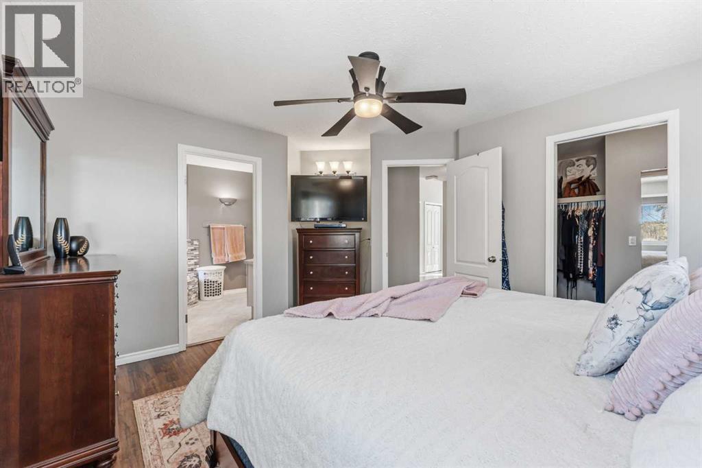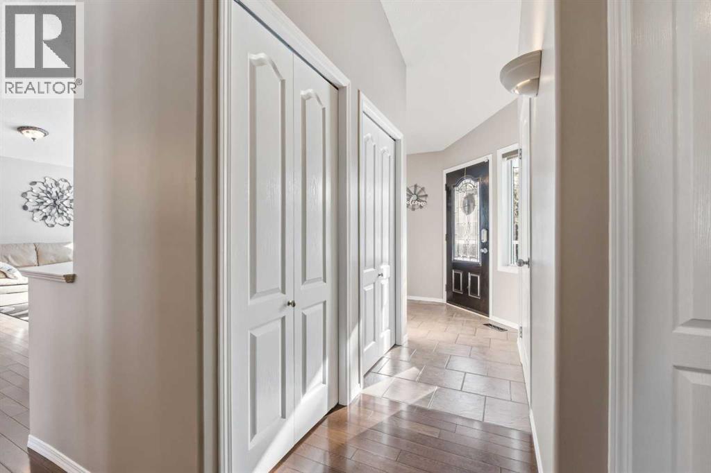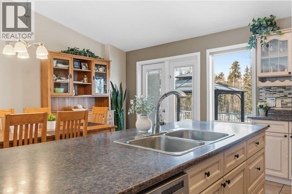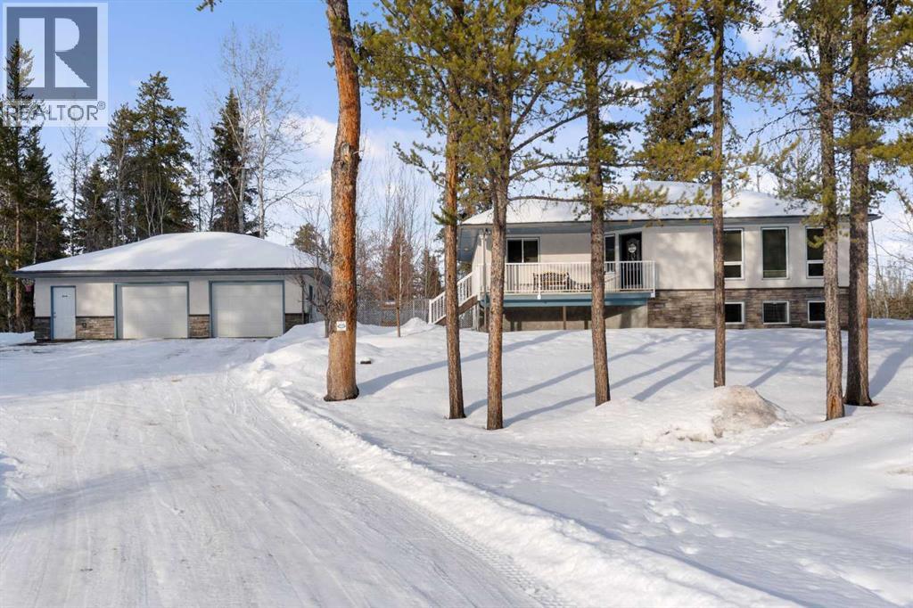 If you’ve been looking for that perfect balance of privacy and convenience, this 5.78-acre property in Pine Meadow Estates is going to check a lot of boxes. Located just a few minutes from Whitecourt and backing onto Crown land, it offers the quiet acreage life without the long commute.The heart of the home features a bright, open floor plan with tall ceilings and beautiful hardwood flooring stretching through the living and dining areas. The kitchen is built for real life, complete with an island, a walk-in pantry, and access to a back deck that is perfect for grilling. You can move in with peace of mind knowing the stainless fridge and stove are less than two years old. The main floor also hosts the primary suite, which serves as a spacious retreat with a large walk-in closet and a four-piece ensuite featuring a corner tub and separate shower. An additional bedroom, full guest bathroom, main floor laundry, and oversized coat and broom closets round out the main level.The lower level feels anything but like a basement, thanks to large windows and high ceilings. You’ll find three more large bedrooms and another full bathroom with extra space. The utility room is well maintained, with a hot water tank and pressure tank that are only about two years old, and central air conditioning installed approximately four years ago.The garage will be a favourite for watching the game or tinkering. The 34' wide by 26' deep detached garage has two man doors and 2 overhead entrances. It is heated with an overhead heater, fully painted, and comes equipped with benches, cabinets, and a floor drain. The driveway leading to the garage is paved, and there is ample additional gravel parking with room for an RV.The outdoor space is just as functional and serene. A private, covered front porch is tucked away behind mature pine trees, while the two-tiered back deck is fenced directly to the garage to create a great dog run. There is also a fire pit area. Two large sheds for extr a storage. Out back, you can explore the trees and a seasonal stream crossed by a cute bridge, some corrals, and a dugout, all with the privacy of having no neighbours behind you. (id:63190)