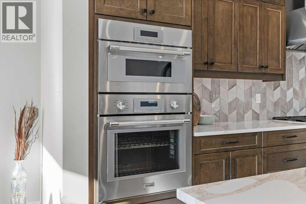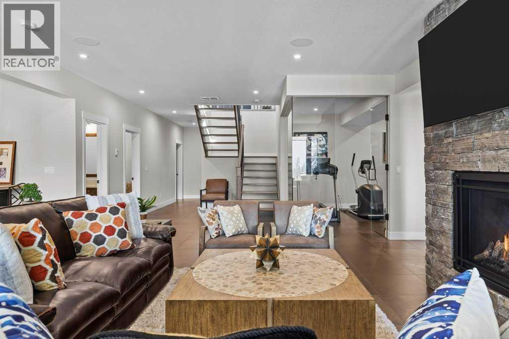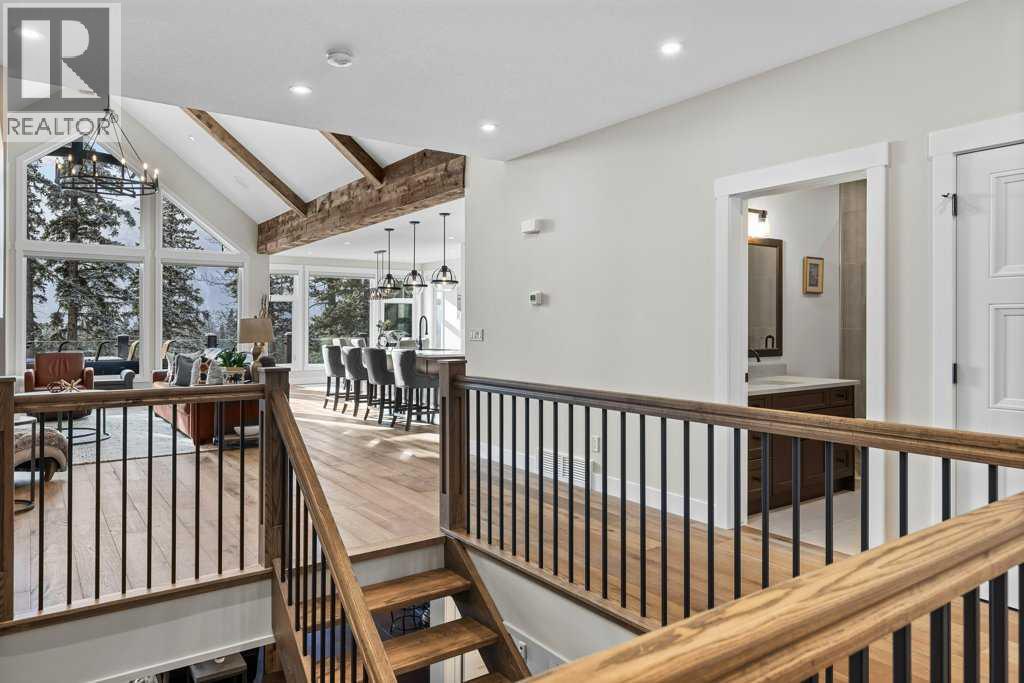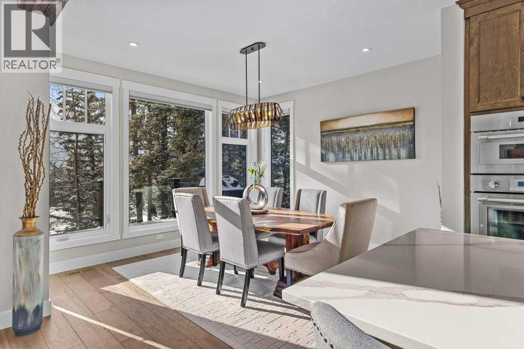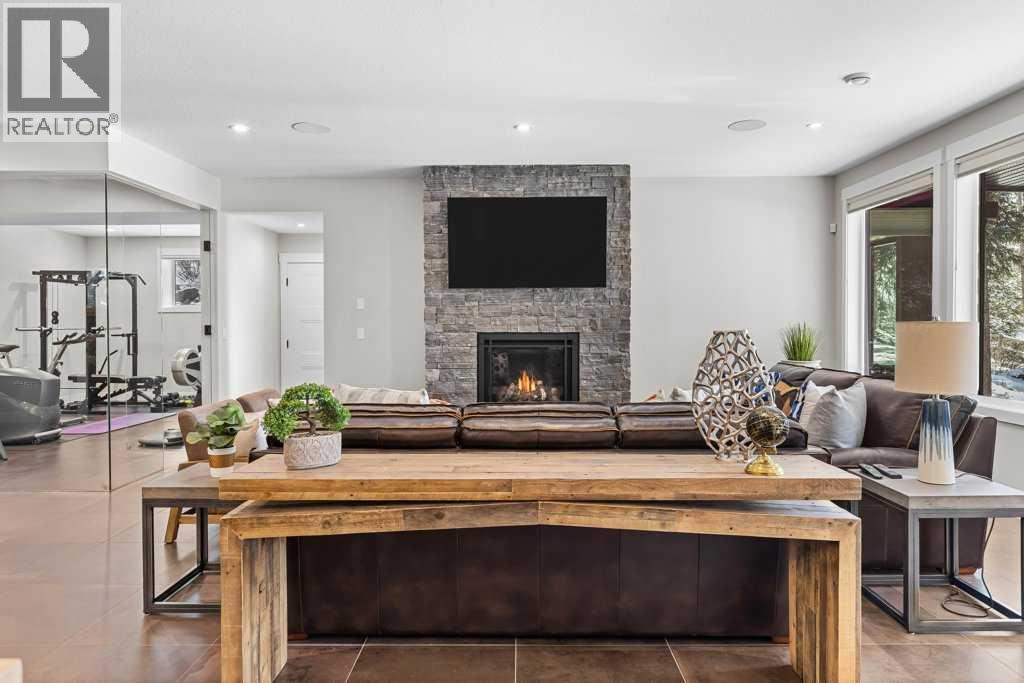 Experience this 3 year old luxurious mountain home located in Silvertip! Nestled in a private location on a huge lot backing onto the Silvertip Golf Course, this four bedroom, four bathroom home boasts 4200 square feet of spectacular mountain views and generous indoor and outdoor living spaces offering lavish features throughout. The main level features a kitchen with large pantry and great room with a grand, stone fireplace, vaulted ceilings, and beam work as well as a master bedroom with en-suite and walk in closet, den/bedroom with walk in closet, full bath, and laundry room. The walkout basement offers a custom wine display and wet bar, recreation and living area with fireplace, fitness room, junior master with en-suite, an additional bedroom, full bathroom, and two storage areas. Features include Thermador appliances, open riser stairs, nine foot basement ceilings, Sonos sound system, Kohler steam shower, in floor heating in basement and garage, triple car garage, landscaping, and much more. Professional interior design services were provided to create a timeless, classic, luxurious, and mountain modern aesthetic. Fully furnished including patio furniture. (id:63190)
