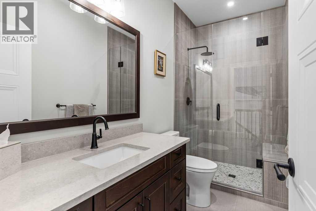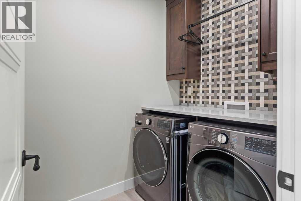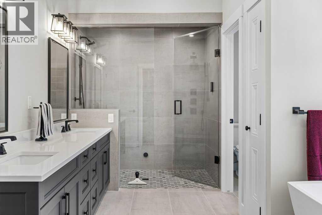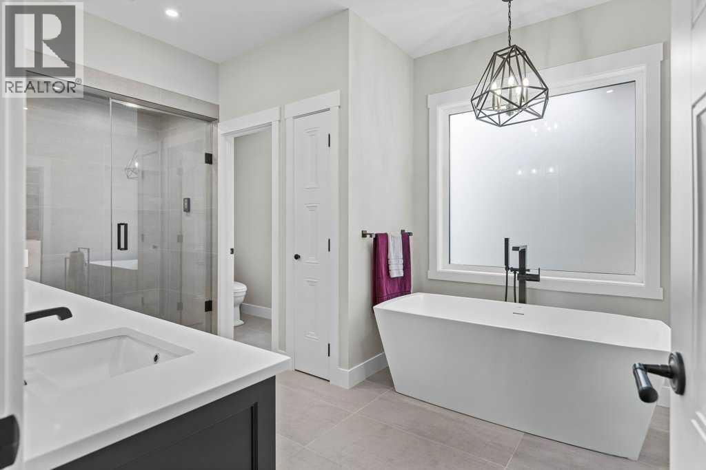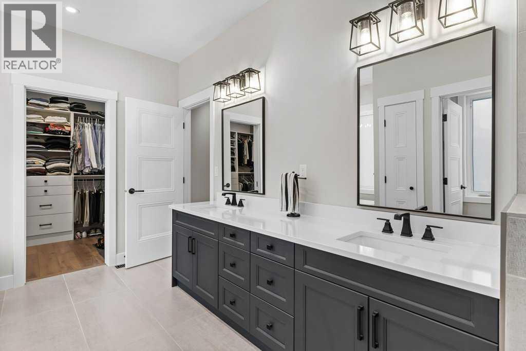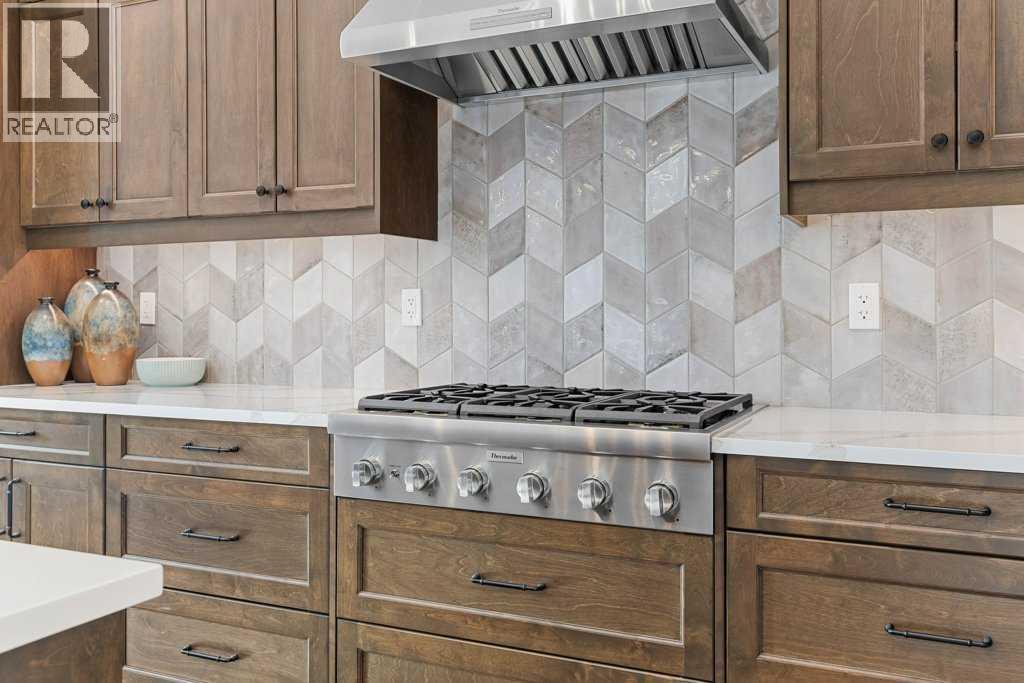 Experience this 3 year old luxurious mountain home located in Silvertip! Nestled in a private location on a huge lot backing onto the Silvertip Golf Course, this four bedroom, four bathroom home boasts 4200 square feet of spectacular mountain views and generous indoor and outdoor living spaces offering lavish features throughout. The main level features a kitchen with large pantry and great room with a grand, stone fireplace, vaulted ceilings, and beam work as well as a master bedroom with en-suite and walk in closet, den/bedroom with walk in closet, full bath, and laundry room. The walkout basement offers a custom wine display and wet bar, recreation and living area with fireplace, fitness room, junior master with en-suite, an additional bedroom, full bathroom, and two storage areas. Features include Thermador appliances, open riser stairs, nine foot basement ceilings, Sonos sound system, Kohler steam shower, in floor heating in basement and garage, triple car garage, landscaping, and much more. Professional interior design services were provided to create a timeless, classic, luxurious, and mountain modern aesthetic. Fully furnished including patio furniture. (id:63190)