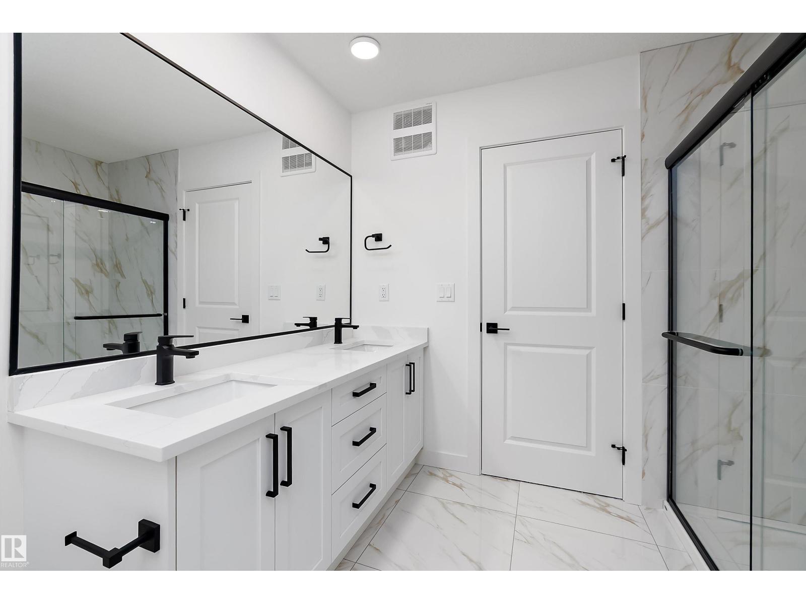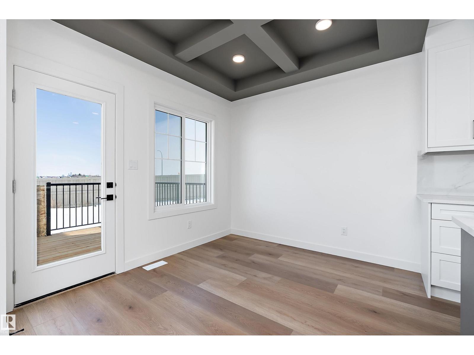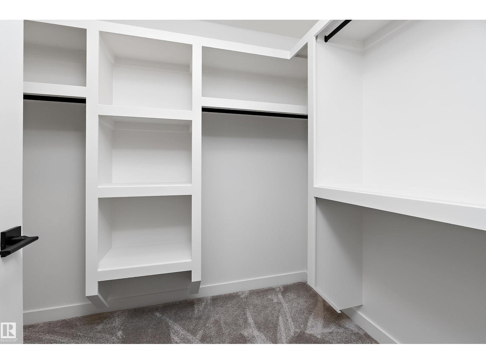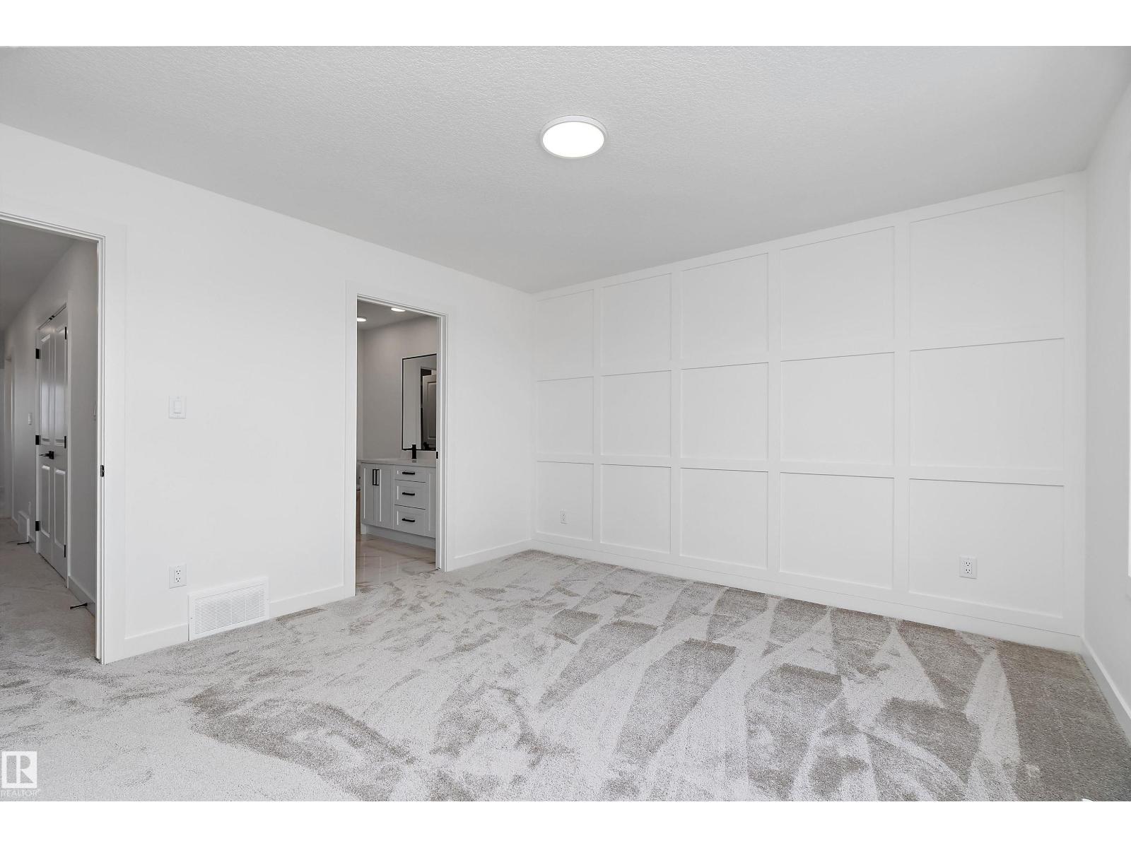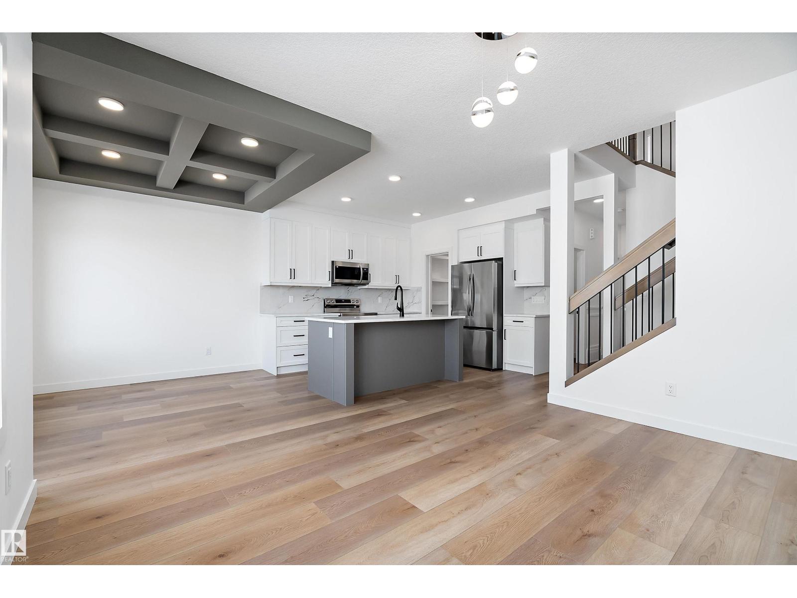 Welcome to this brand new 1809 SQFT Carlisle I model by award winning builder Blackstone Homes in Kinglet Gardens. Upon entry, you will be welcomed by spacious foyer and a main floor den, perfect for work from home days. The spacious great room offers electric fireplace with mdf finish, dining room with coffered ceiling, beautiful kitchen offering up to the ceiling soft closing cabinets, large island & walk-through pantry with mdf shelving. Main floor also has much needed mudroom with bench and shelves. The 2nd floor offers 3 large bedrooms, 2 baths, bonus room & laundry. Master bedroom is huge with beautiful en-suite & walk in closet. Other features - Double attached garage, Rear deck with metal railing, Separate entrance, 9' main/basement ceiling, MDF shelving, black plumbing fixtures, feature walls, upgraded quartz throughout, stainless steel appliances & New Home Warranty. Great location-close to Yellowhead and Anthony Henday, park, golf, shopping and all other amenities. (id:63190)
