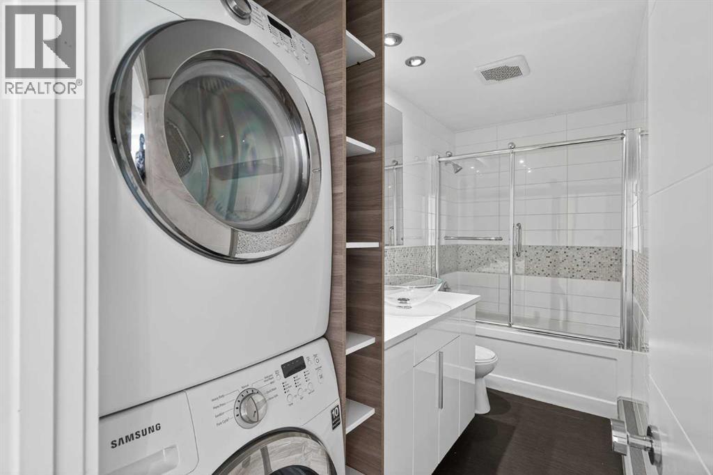 Welcome to Spruce Cliff, one of Calgary's most scenic and desirable communities. This home truly has it all. FULLY RENOVATED to the highest level, walking in you are greeted with a completely open floor plan with laminate floors that span throughout. Your chef inspired kitchen offers quartz counter tops, high end stainless steep appliances, gorgeous cabinetry and drawers as well as a ton of lighting. Your living room is very large and flows from your kitchen and out to your east facing balcony with AMAZING DOWNTOWN VIEW and the quiet tranquilness of backing on to EDWORTHY PARK with nature at your back door. The primary bedroom is huge and give you space for a king size bed along with additional bedroom furniture. The second bedroom is also a great size and is just adjacent to your spa style renovated bathroom. This unit boasts IN-UNIT FULL SIZE LAUNDRY which is rare for the complex as well as an assigned parking stall and indoor storage locker. If you want to wake up to morning coffee on your balcony with the birds and the deer or have a glass of wine with expansive night time city views, this unit is for you. Take a walk from your back door all right to the pathways through the park and down to the river. Do not miss this chance to make it yours! (id:63190)