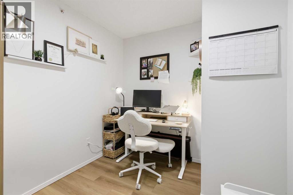 Perfectly positioned on the top floor, this beautifully refreshed 902 sq ft condo delivers comfortable low-maintenance living with 2 bedrooms, 2 bathrooms and a large den in a well-connected location. Fresh paint throughout and brand-new LVP flooring establish a clean, modern interior with no carpet for easy everyday upkeep. An open-concept layout supports both relaxed living and easy entertaining. Granite countertops anchor the well-planned kitchen where a peninsula island encourages casual conversation while preparing meals. Recently updated with a new dishwasher, new ceiling lighting, new kitchen sink and new faucets throughout, the space combines practical upgrades with timeless finishes. Designer lighting highlights the adjacent dining area, defining a welcoming setting for everyday meals or hosting friends. Comfortable living continues in the bright living room where large windows bring in natural light before extending outdoors to the west-facing balcony. Evening barbeques and outdoor relaxation come naturally while enjoying nightly sunsets across the surrounding community. Tucked quietly away from the main living space, a spacious den creates a flexible work or study area ideal for remote professionals or students needing a dedicated workspace. Dual walk-through closets define the primary bedroom while guiding you into the private 4-piece ensuite, creating a practical and comfortable retreat at the end of the day. A well-sized second bedroom and an additional 4-piece bathroom provide excellent flexibility for guests, roommates or family members. In-suite laundry adds everyday convenience while heated underground parking keeps your vehicle protected year-round. Condo fees include heat, electricity and water, supporting predictable monthly ownership costs and simplified budgeting. Walkable access to transit enhances daily convenience while the Panorama Hills Community Centre offers exceptional lifestyle amenities including a splash park, tennis courts, basketb all courts, playgrounds, picnic areas and a cascading waterfall feature for residents to enjoy throughout the year. Outdoor recreation expands further with nearby Nose Hill Park providing expansive natural pathways and peaceful escapes from city life. Everyday errands and dining are just minutes away at Country Hills Town Centre while an 8-minute drive connects you to Country Hills Golf Club and the popular Vivo Recreation Centre for fitness, aquatics and community programming. Thoughtful updates, a functional layout and a vibrant community setting combine to create a comfortable home with lasting lifestyle appeal. (id:63190)