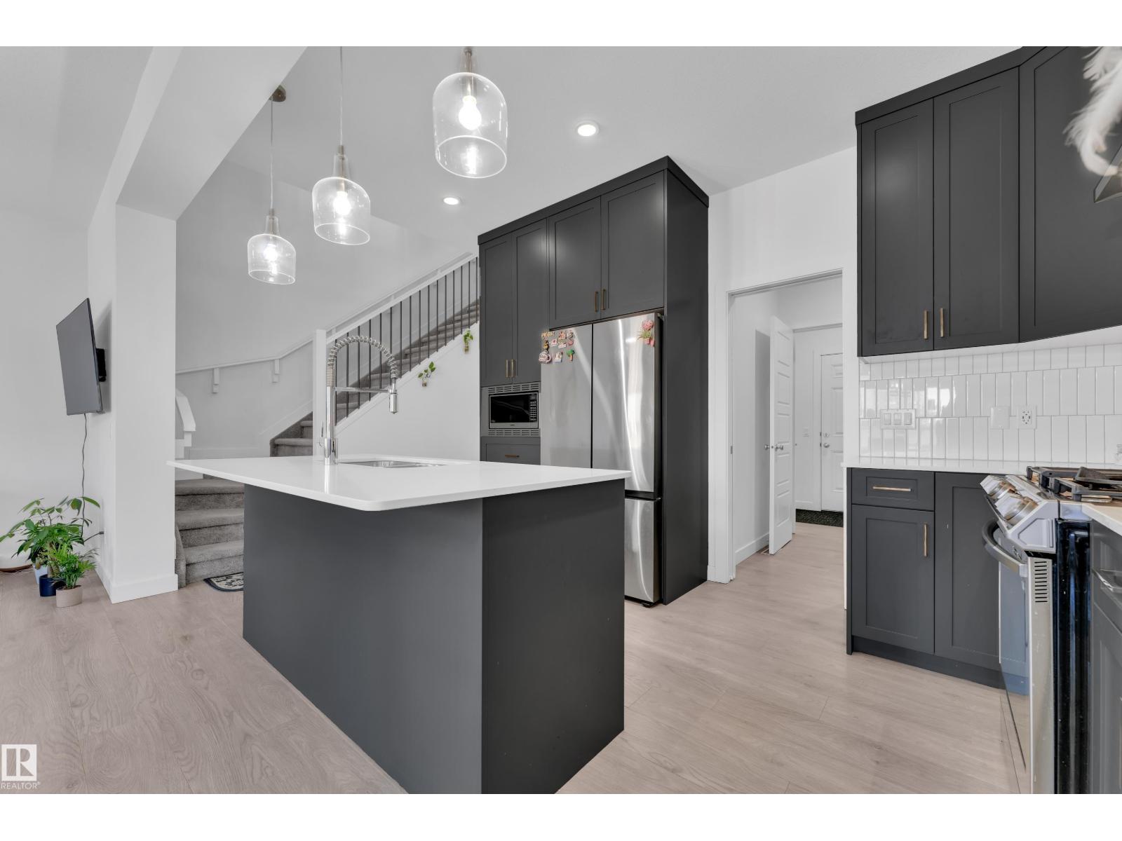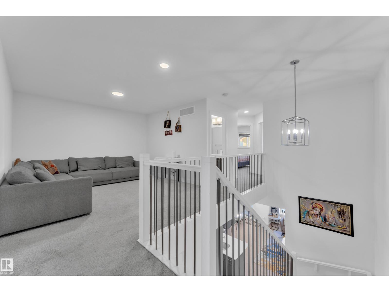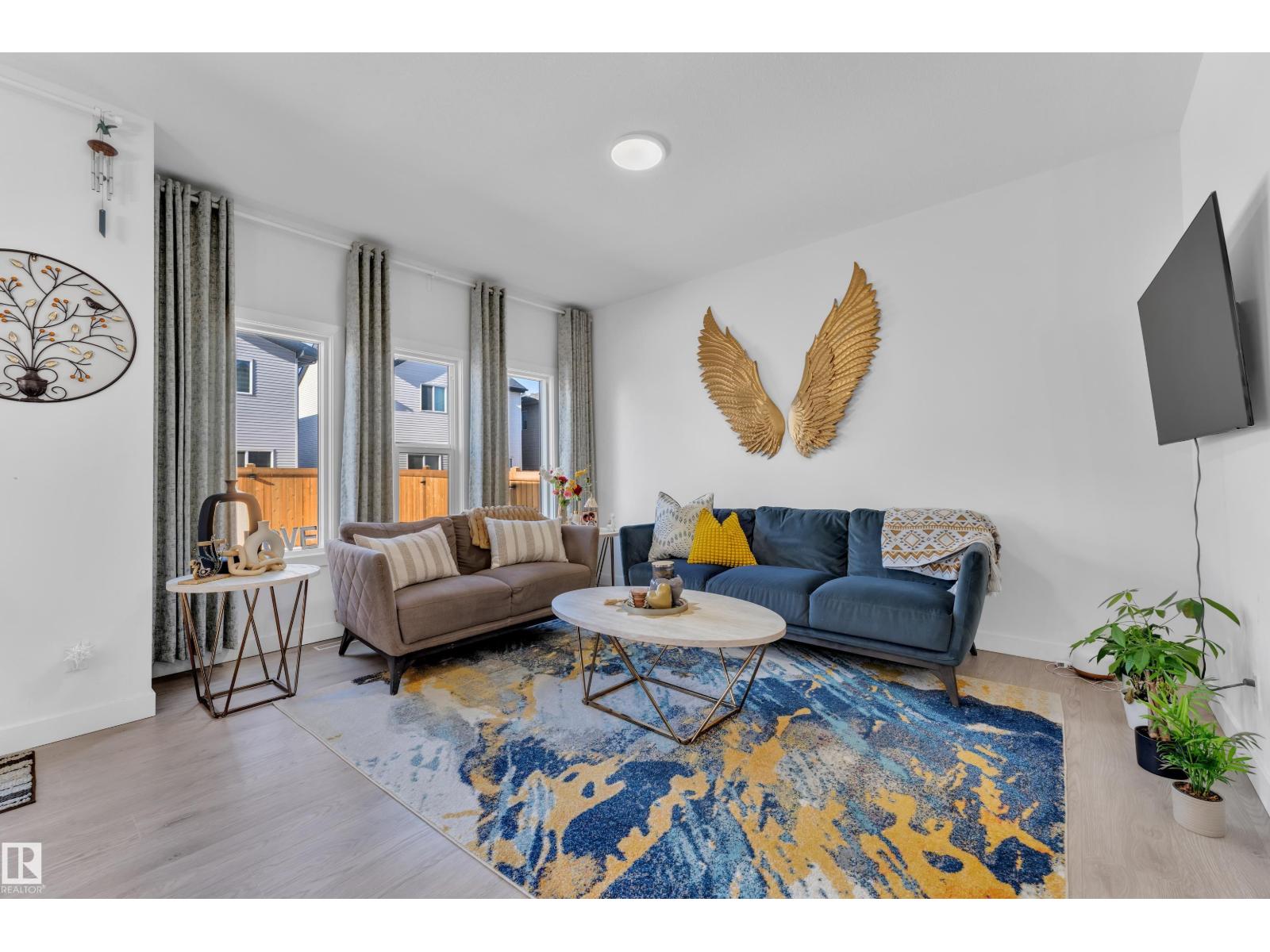 Experience modern comfort in this beautifully maintained 2022-built home located in the tranquil community of The Uplands in Southwest Edmonton. Offering 1,857 sq. ft. of thoughtfully designed living space, this home features 3 spacious bedrooms, 2.5 bathrooms, and convenient access to Anthony Henday Drive. The main floor showcases a well-appointed kitchen with modern finishes, seamlessly flowing into the bright living and dining areas—perfect for both everyday living and entertaining. Upstairs, the primary suite offers a private ensuite and walk-in closet, while two additional bedrooms, a full bathroom, a versatile bonus room, and a convenient upper-floor laundry area complete the level. A separate side entrance to the basement provides excellent potential for future development. Outside, professionally landscaped outdoor space enhances the home’s curb appeal and functionality. Ideally located close to parks, schools, and everyday amenities, this property offers the perfect blend of comfort and style (id:63190)