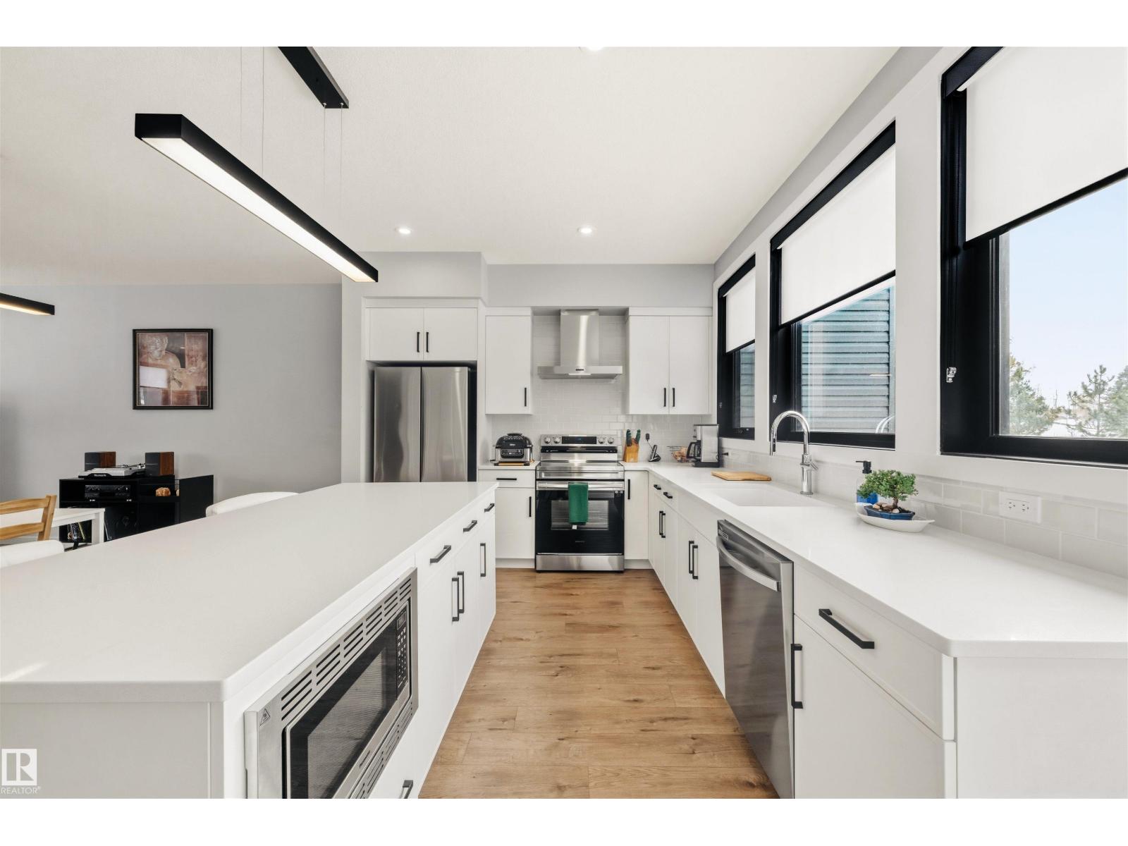 Welcome to Pivot, Avertons award winning townhouse complex. This modern 3-bedroom, 1,821 sq ft unit has it all: a spacious kitchen with a granite island, a dining room, a large living room, plenty of natural light from floor-to-ceiling windows, and vinyl flooring throughout the main floor. On the upper floor, you will find the primary suite with a 3-piece ensuite, second and third bedrooms, laundry, and stairs to the large rooftop patio, perfect for watching sunsets on warm summer nights and air conditioning to cool you off. Now, the big surprise: this unit has a 4-car garage with endless storage options, or even a workout area. (id:63190)