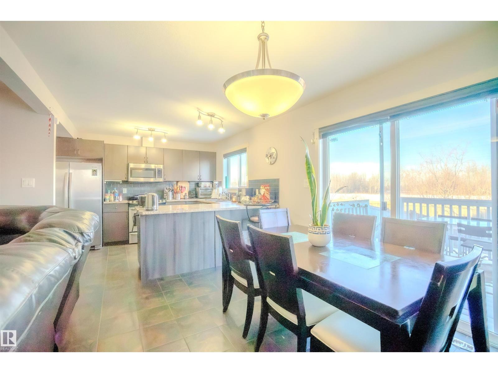 Welcome to this immaculate half duplex in the desirable community of Charlesworth! This bright and spacious home features an open-concept layout with a single attached garage and a welcoming front entry with convenient garage access and a 2-pc powder room. The kitchen offers ample cabinetry, a functional island with bar seating, and patio doors leading to the backyard — perfect for entertaining. The sun-filled living room provides beautiful views and added comfort with main floor laundry. Upstairs you’ll find 3 generous bedrooms, including a spacious primary suite with TWO walk-in closets and a private ensuite. The other two bedrooms share a full bathroom, ideal for family living. The partially finished basement is ready for your personal touch and future development. Step outside to enjoy a two-tiered deck, a lush backyard, and green space access behind — offering extra privacy with no direct rear neighbors. A perfect home for first-time buyers, families, or investors! (id:63190)