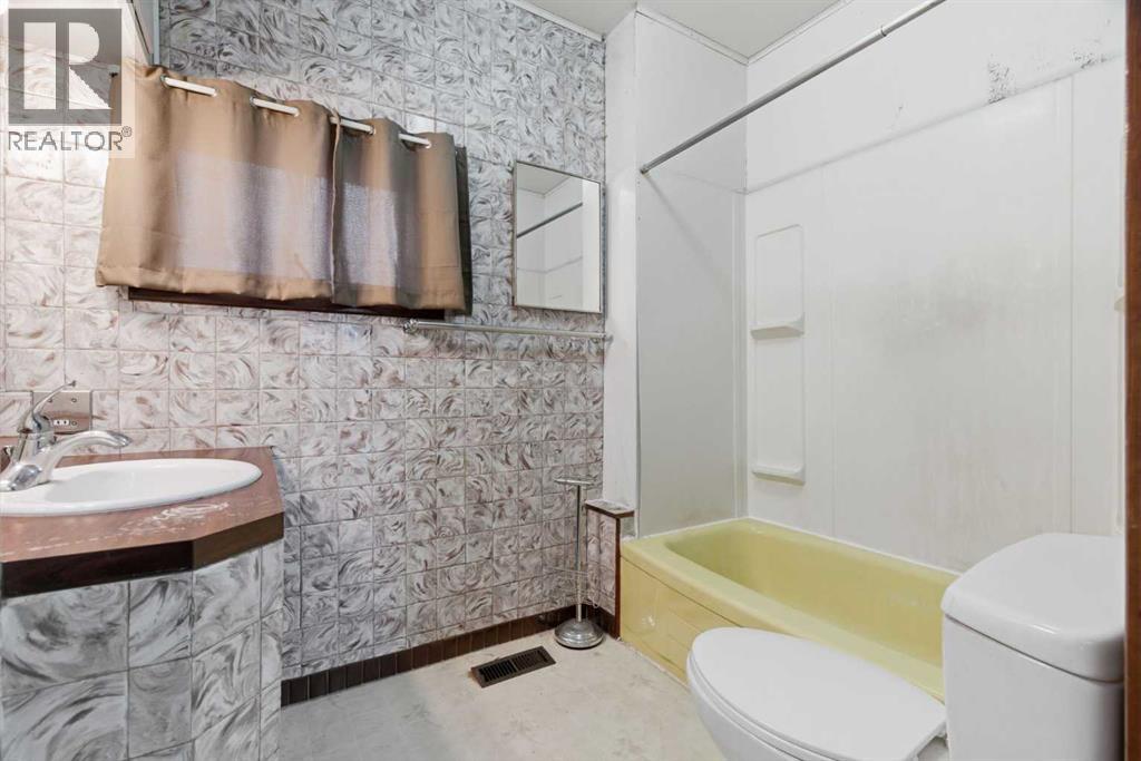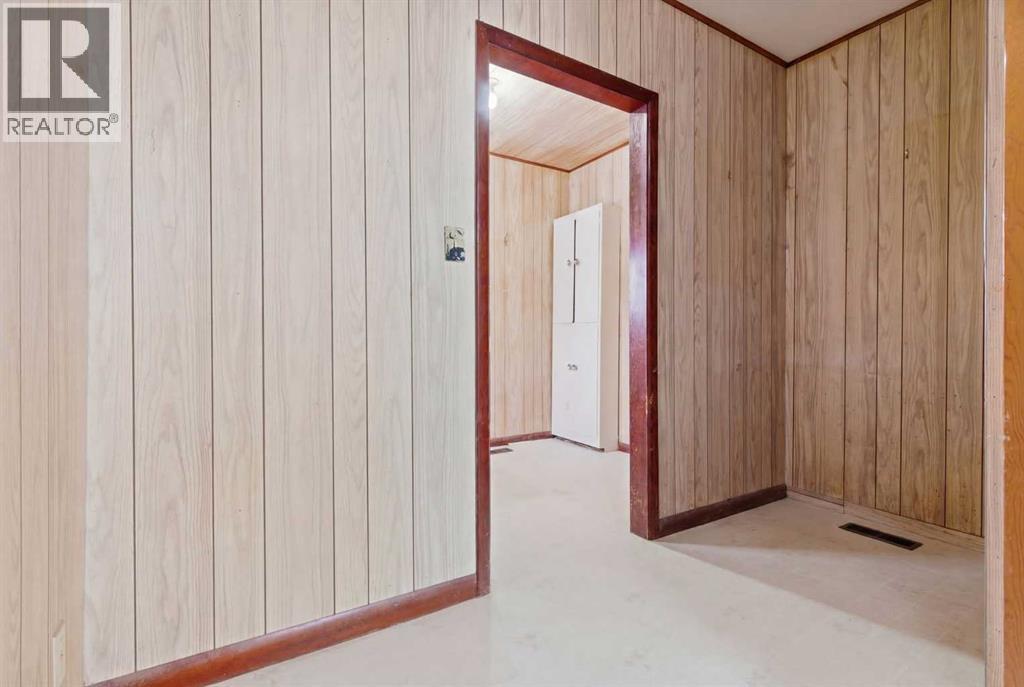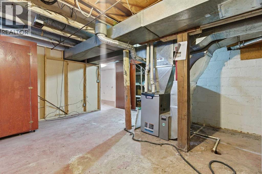 Bungalow home situated on a quiet tree lined street in the heart of Vulcan! Just steps away from restaurants, library, downtown shopping! Main floor offers a spacious living room + dining room, good sized kitchen, 2 large bedrooms, 4pc bath+ back entry mudroom. Lower level is laid out nicely for future development with + Washer/Dryer. Additional Features include: Oversized single garage & Newer HWT + Furnace, walking distance to shopping, restaurants, library, downtown shopping. Exceptional Value! (id:63190)