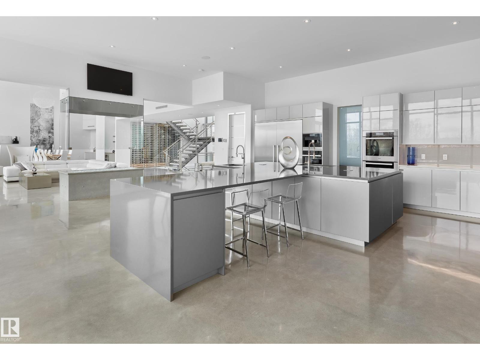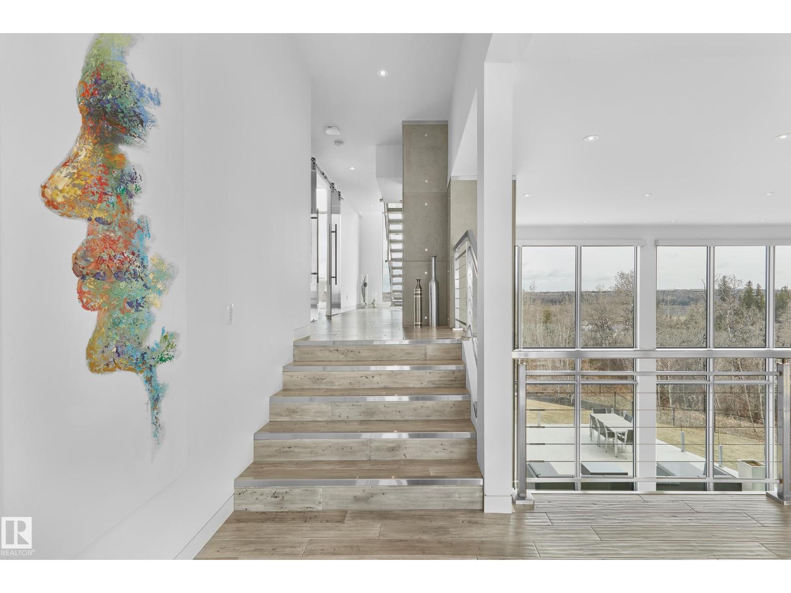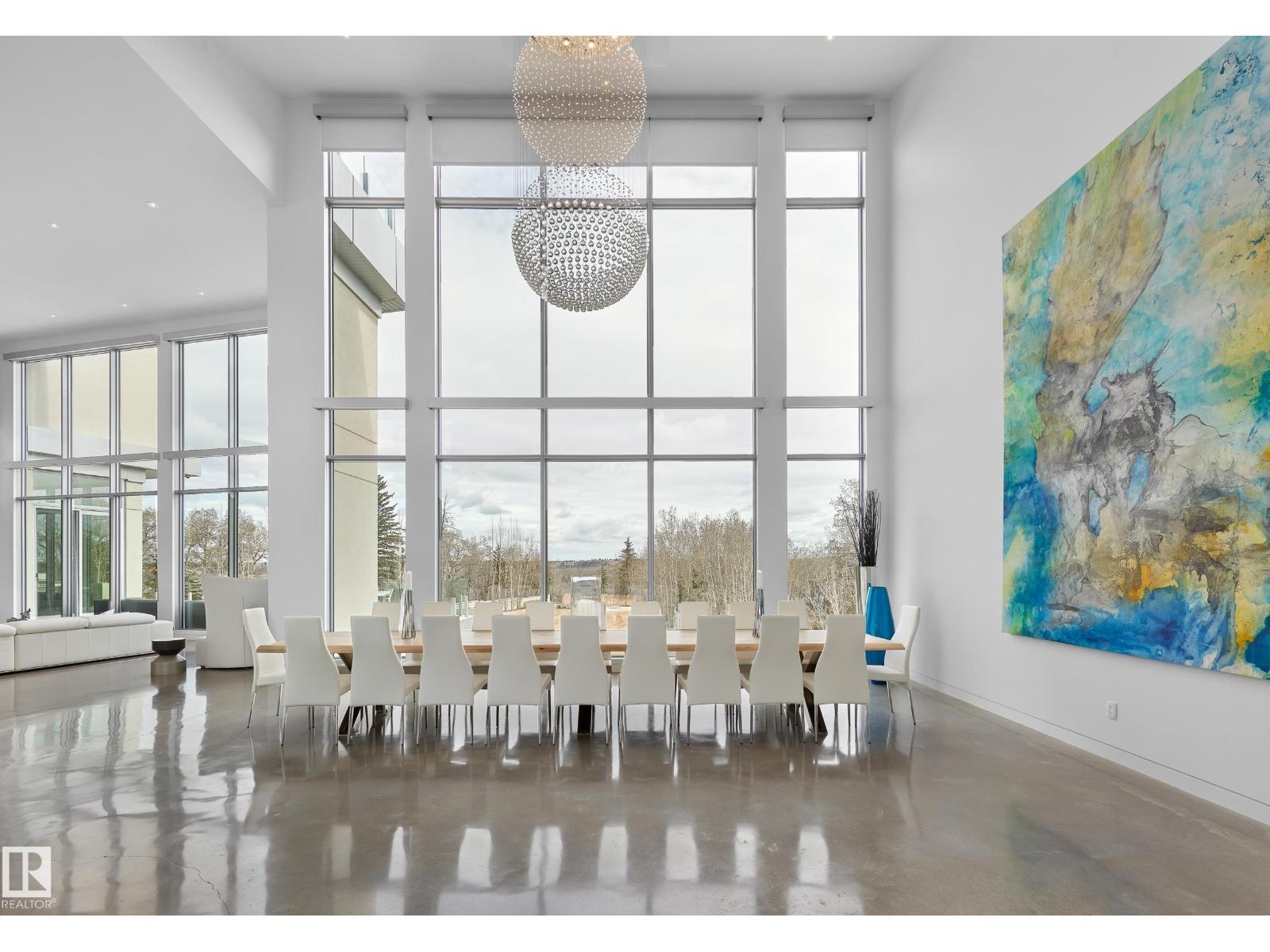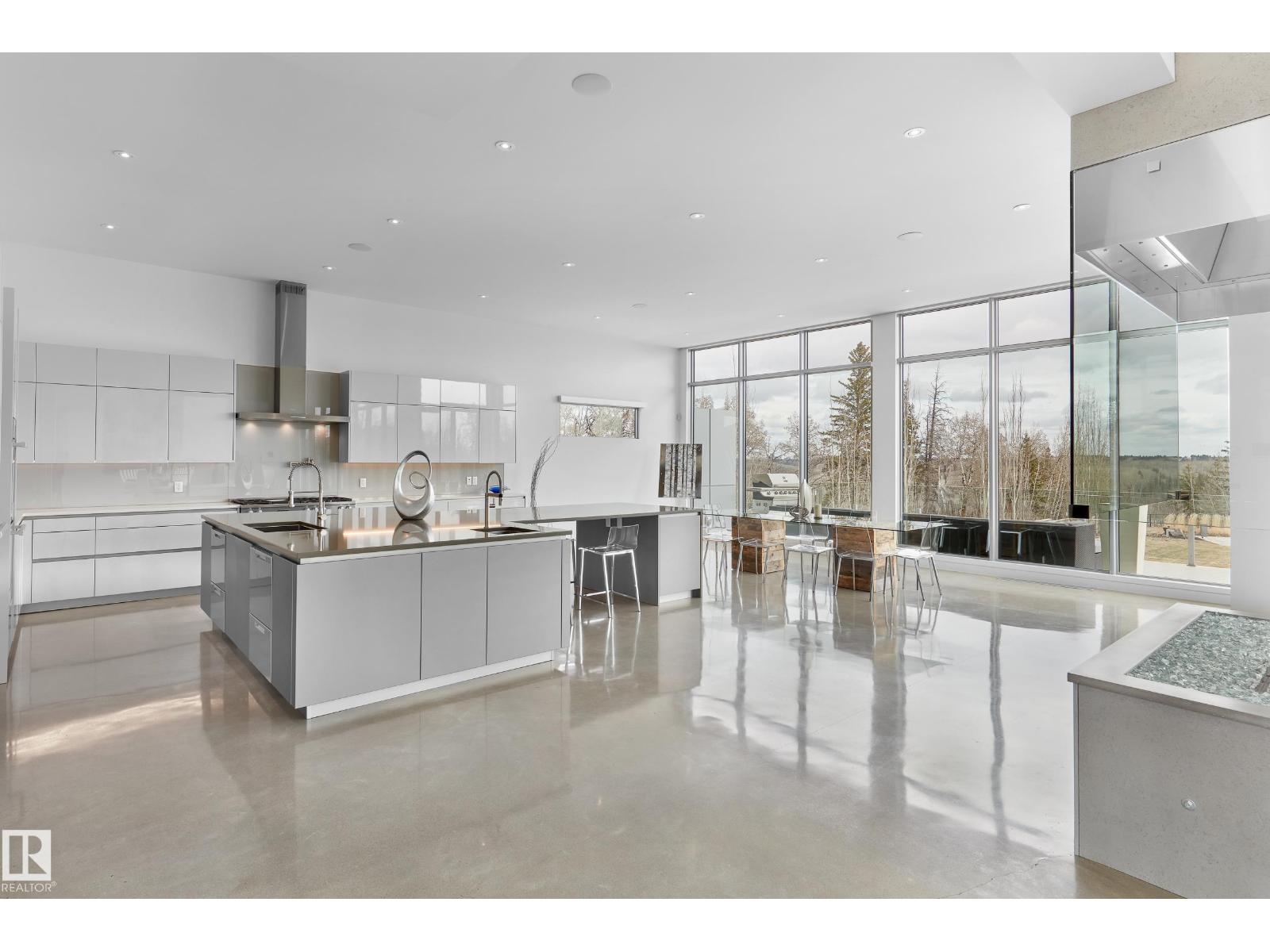 Nestled on a 60,041sqft lot (1.4acres) - a natural setting & attention to detail provide the perfect fusion between structural strength & architectural form in this Modern architecture home with 360-degree views of the river valley & downtown. Encompassing over 7818sqft plus a finished 3997sqft walkout basement (11,814sqft) - 5 beds, 6 baths & 9 car-garage. This home is constructed with superior commercial grade craftmanship & captured the graceful perceptions of the beauty of nature & contemporary elegance with this home's clean lines & organized living. The interiors are characterized by their understated beauty & fluid interpretation of space. The main floor has bountiful natural light streaming in from the numerous windows throughout with 20ft ceilings, modern elegance & style, gourmet kitchen, butler kitchen, multi-level wine room & views of the river valley from every level. From the outside meticulously landscaped 1.4 acres to the construction & interior - this home is a true entertainer's dream! (id:63190)