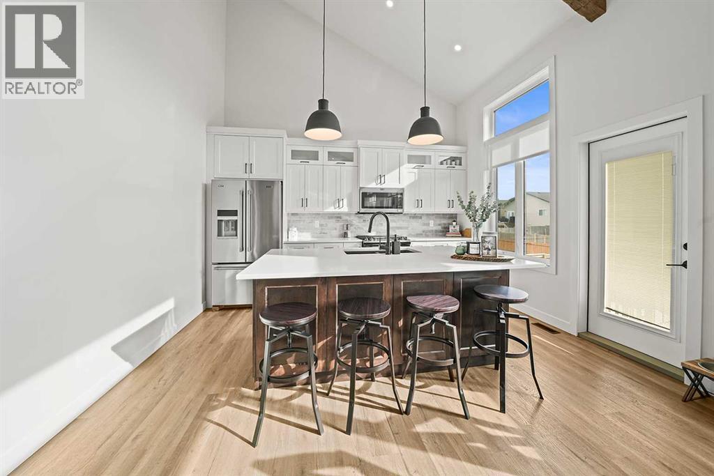 WOW WOW WOW! This STUNNING 2022, 1,883 sq ft two storey True-Line Kinsmen Dream Home floorplan located at 37 Arrowwood Close in Blackfalds will be sure to impress you. There is so much detail in this home you are bound to fall in love. Your new home is located in Aspen Lakes which you have access to the Trans Canada trail system right out your front door that you are able to enjoy year-round, just check out the drone photos! Stepping inside, you will be greeted by the warm colors of this home, large front entry and woodwork throughout this home. Everything about 37 Arrowwood close is impressive including the black railing, the soaring beamed ceiling, and large windows allow for a ton of sunshine with the south facing backyard. The kitchen is functional looking onto to living room and gas fireplace. All countertops in this home are quartz and the flooring on the main floor is all luxury vinyl plank, they really didn’t leave anything out on this property! The main floor laundry comes off of the heated garage and there are two bedrooms as well as a bathroom. The upper floor is consists of the primary bedroom and amazing ensuite with a dual vanity, soaker tub, floor to ceiling tiled shower & walk in closet. The office overlooks the main floor creating a sense of openness! Your new home is fully fenced, has A/C, HEATED GARAGE, COMPOSITE DECKING & great neighbors! (id:63190)