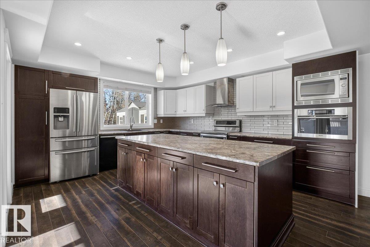 Exceptional 2 storey WALKOUT w/ LEGAL SUITE backing a mature RAVINE in prestigious Cameron Heights. This community is perfect if you want to experience a getaway within city limits. Enjoy the trails with family, take in views of the ravine, and take the kids to the local playground, rink & splash park. Offering 3,820 sq. ft. of developed living space (2,657 up + 1,163 down), this home captures natural light throughout the day, with stunning SW sunsets. The gourmet kitchen pairs beauty with functionality, with a walk-through-pantry from the mudroom. The oversized Primary Bedroom offers a walk-in closet and ensuite worthy of a magazine! Basement suite includes a large kitchen, 1 bed w/ ensuite, an additional bath and separate laundry. This home offers 4 beds, 2 offices, 4 full + 1/2 bath, & a bonus room. Upgrades: paint, lighting, custom closets, Hunter Douglas blinds, a new garage door & motor, and polyaspartic floor! Extras: 9' main floor and basement ceilings, AC, in-floor heating, hot tub and more! (id:63190)