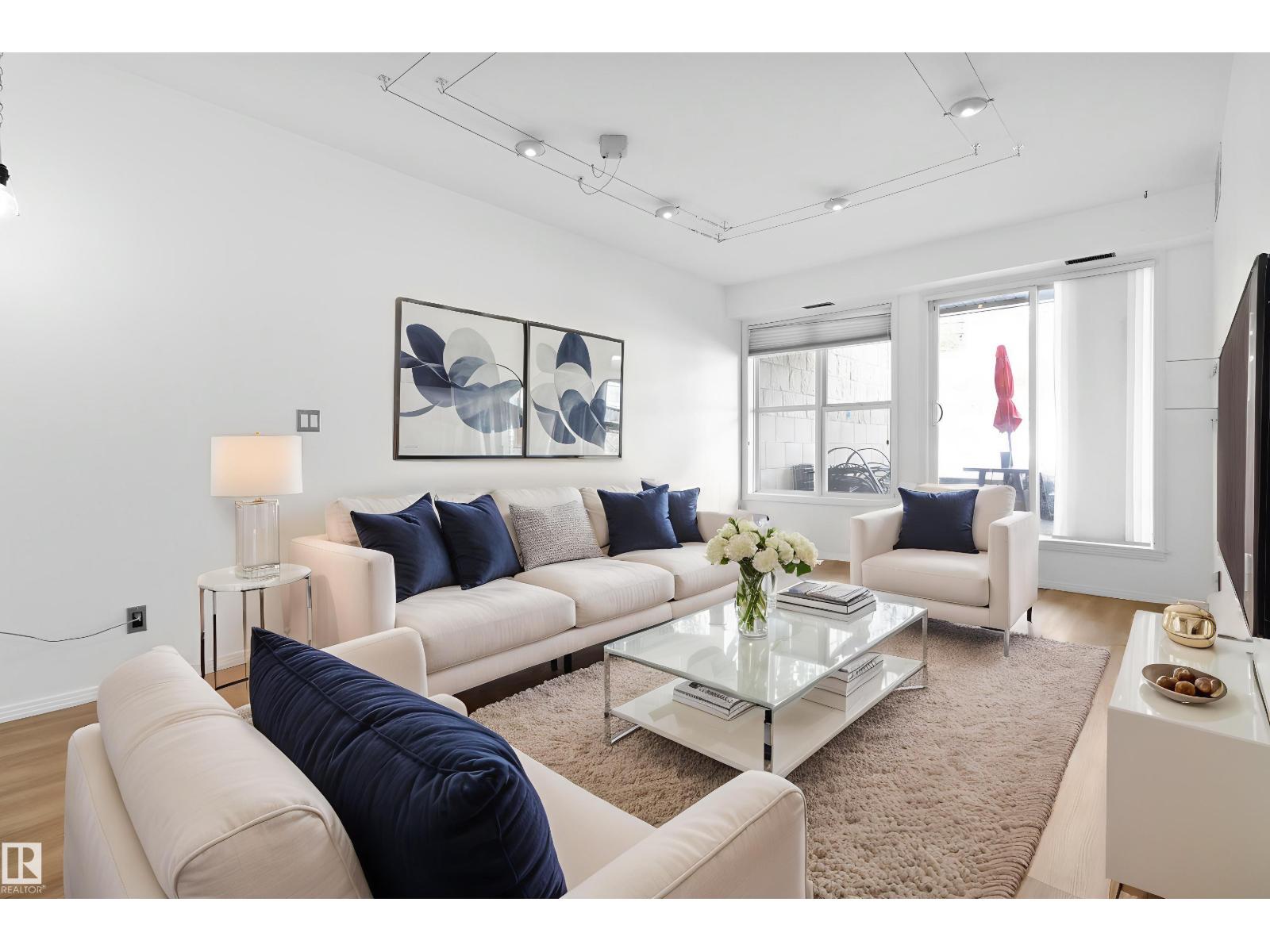 Experience the convenience of downtown living without the constant noise and congestion. This spacious 1,013 sq. ft. condo offers a bright open-concept design that makes the most of every square foot. Ideally located just minutes from the UofA, the downtown core, RE/MAX Field, and the extensive walking and biking trails throughout the River Valley. Inside, the home is move-in ready with durable vinyl plank flooring, high-end appliances, and the practicality of in-suite laundry and additional storage. The generous primary bedroom features a convenient “cheater” door providing direct access to the 4-piece bathroom. Step outside to the large concrete patio complete with a natural gas BBQ hookup, perfect for relaxing or entertaining. This well-cared-for property offers exceptional value with LOW monthly condo fees of $385.42. The unit also includes secure underground parking with a storage cage, plus a pet-friendly building. An outstanding opportunity in a sought-after location and should not be missed. (id:63190)