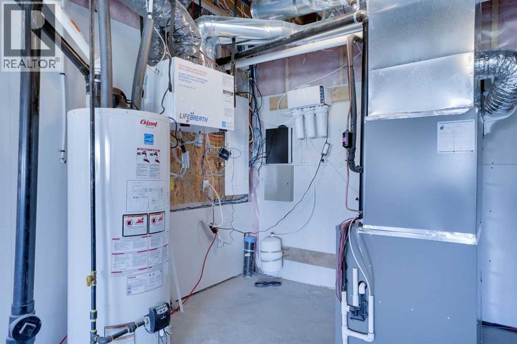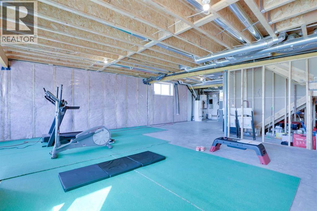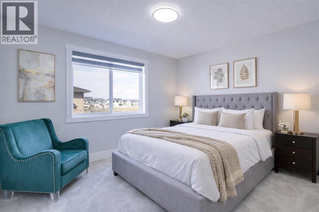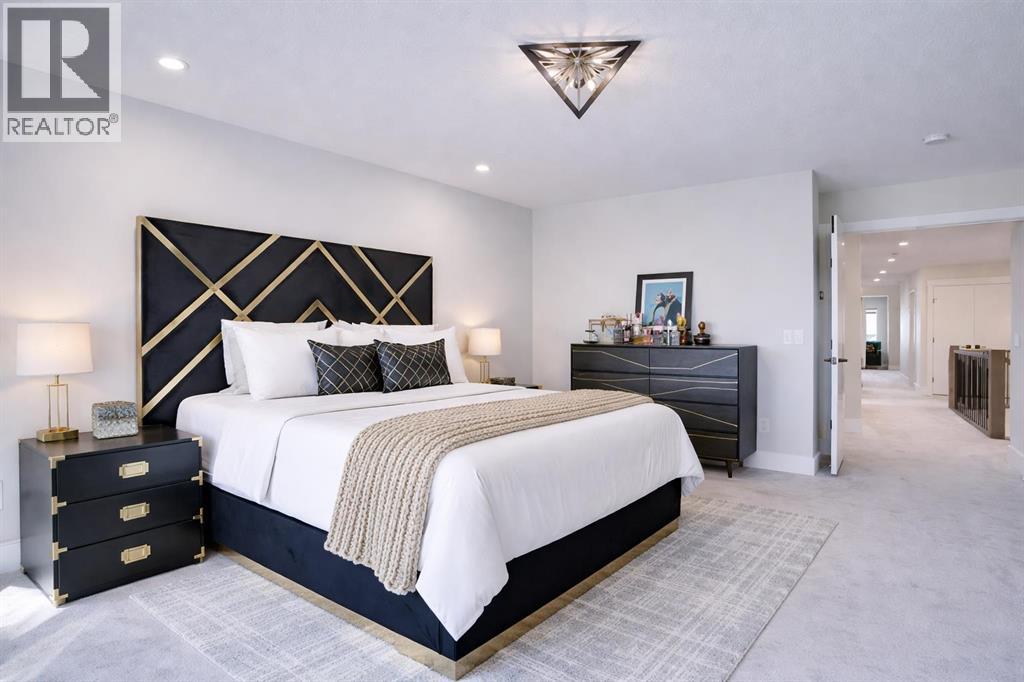 Welcome to this stunning luxury walk-out 2-storey home offering 2,749 SqFt of beautifully designed living space, combining modern elegance with everyday functionality. This home features premium finishes and thoughtful upgrades throughout.The open-concept main floor showcases 9’ ceilings, wide plank luxury vinyl flooring, custom lighting, and over 45 pot lights. The spacious living room is highlighted by a 100” electric fireplace with custom built-ins, creating a warm and stylish space for relaxing or entertaining.The gourmet kitchen is a true centerpiece, featuring quartz countertops, full quartz backsplash, oversized island, gas stove, oversized refrigerator, two-tone cabinetry, and custom wood detailing. A walk-through pantry connecting the kitchen and mudroom adds everyday convenience. The main floor also includes a bedroom and a full 4-piece bathroom, perfect for guests, extended family, or a home office.Upstairs offers three spacious bedrooms, upper-level laundry, and a spectacular bonus room with a custom vaulted ceiling featuring a striking black and gold design. The luxurious primary suite includes a spa-inspired 5-piece ensuite with dual vanities, freestanding tub with gold faucet, custom glass shower, and a large walk-in closet. The additional bedrooms also feature walk-in closets.This home is loaded with upgrades including maple railings with black spindles, 8’ interior and exterior doors on the main level, motorized blinds, floating vanities, black plumbing fixtures, California Closet built-ins, central vacuum, central A/C, Lux exterior doors and windows, and a zone heating system with Google thermostat.Enjoy outdoor living on the maintenance-free vinyl deck with glass railing and frosted privacy panels. The fully landscaped yard is enclosed with a brand-new Durabuilt maintenance-free fence, providing durability and privacy.The walk-out basement features 9’ ceilings, oversized windows, and rough-in plumbing for a future 4-piece bathroom, off ering excellent potential for future development.The double attached garage includes a heater and side-mount opener, perfect for winter convenience.Conveniently located minutes from East Hills Shopping Centre with Costco, Walmart, Dollarama, restaurants, major banks, and quick access to Stoney Trail.Luxury, location, and thoughtful upgrades—book your private showing today. (id:63190)