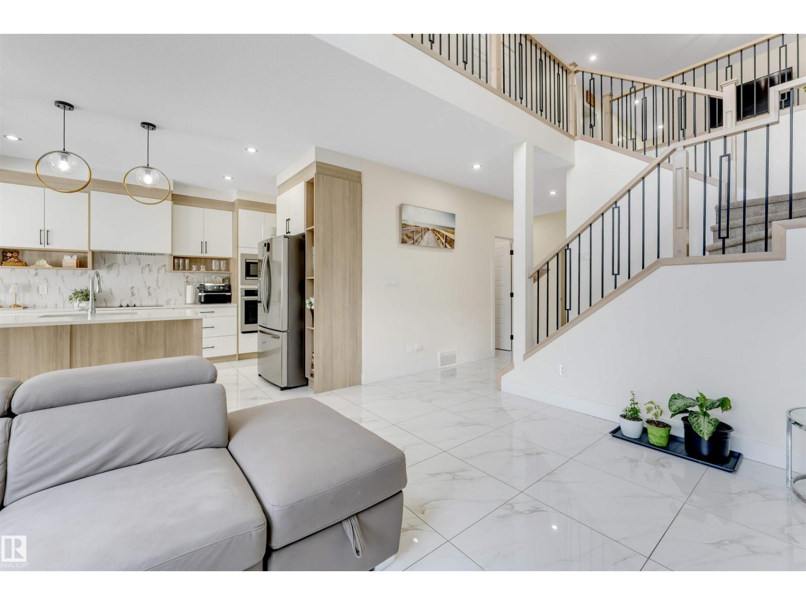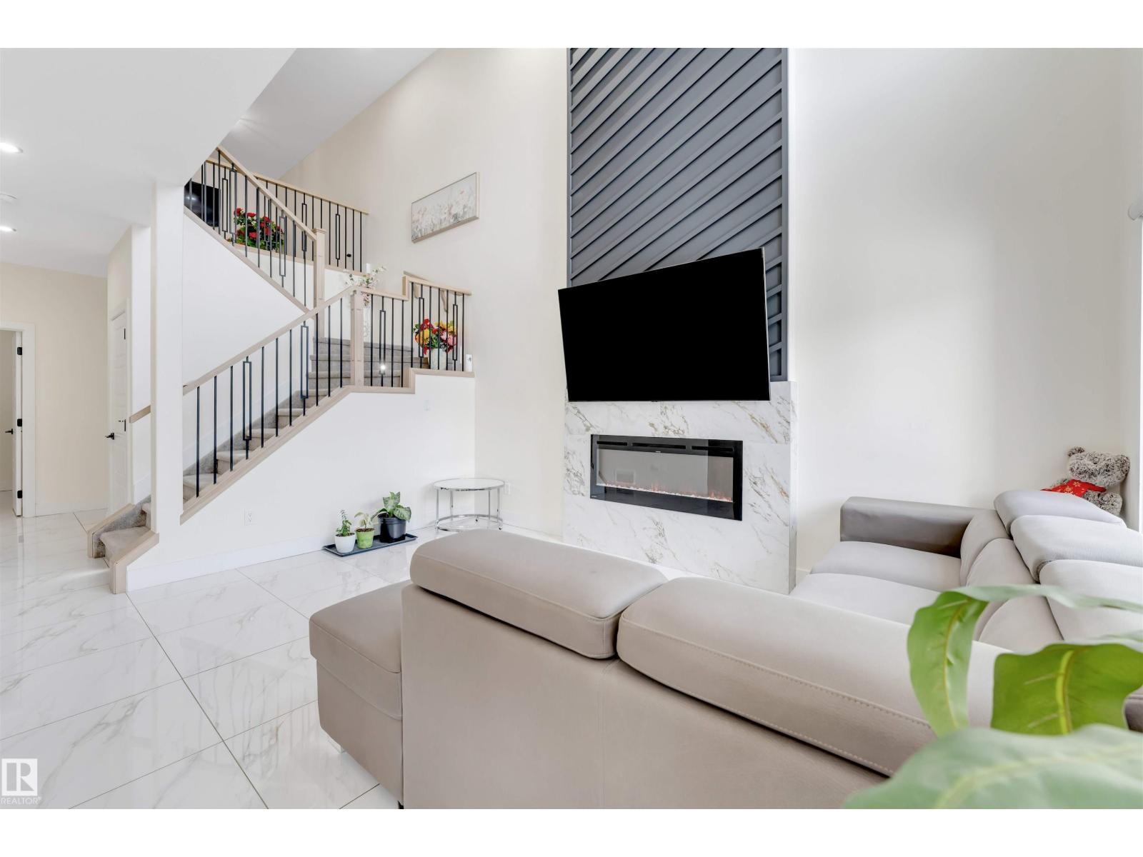 Luxury Living in Triomph Estates, Beaumont – 4 BEDS + DEN/OFFICE , SPICE KITCHEN & More! Welcome to this stunning 2,183 sq. ft. home in the sought-after Triomph Estates of Beaumont, located on a quiet closed street with a SEPARATE ENTRANCE to the basement and BACK ALLEY access. Step into a breathtaking open-to-below living area, featuring a striking accent wall with an electric fireplace, adding warmth and elegance. The modern gourmet EXTENDED kitchen boasts glass countertops, while the spice kitchen with a gas cooktop is perfect for culinary enthusiasts. The main floor includes a den and a full bathroom, ideal for guests or a home office. Upstairs, a huge bonus room complements 4 spacious bedrooms, including a master suite with an accent wall, 5-piece ensuite, and walk-in closet. Laundry is conveniently upstairs. With an unfinished basement, back alley access, and a peaceful location on a quiet closed street, this home offers endless possibilities. Experience luxury and functionality! (id:63190)