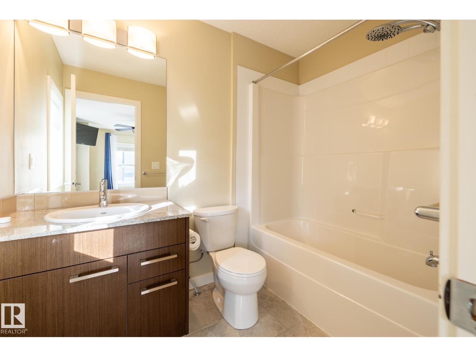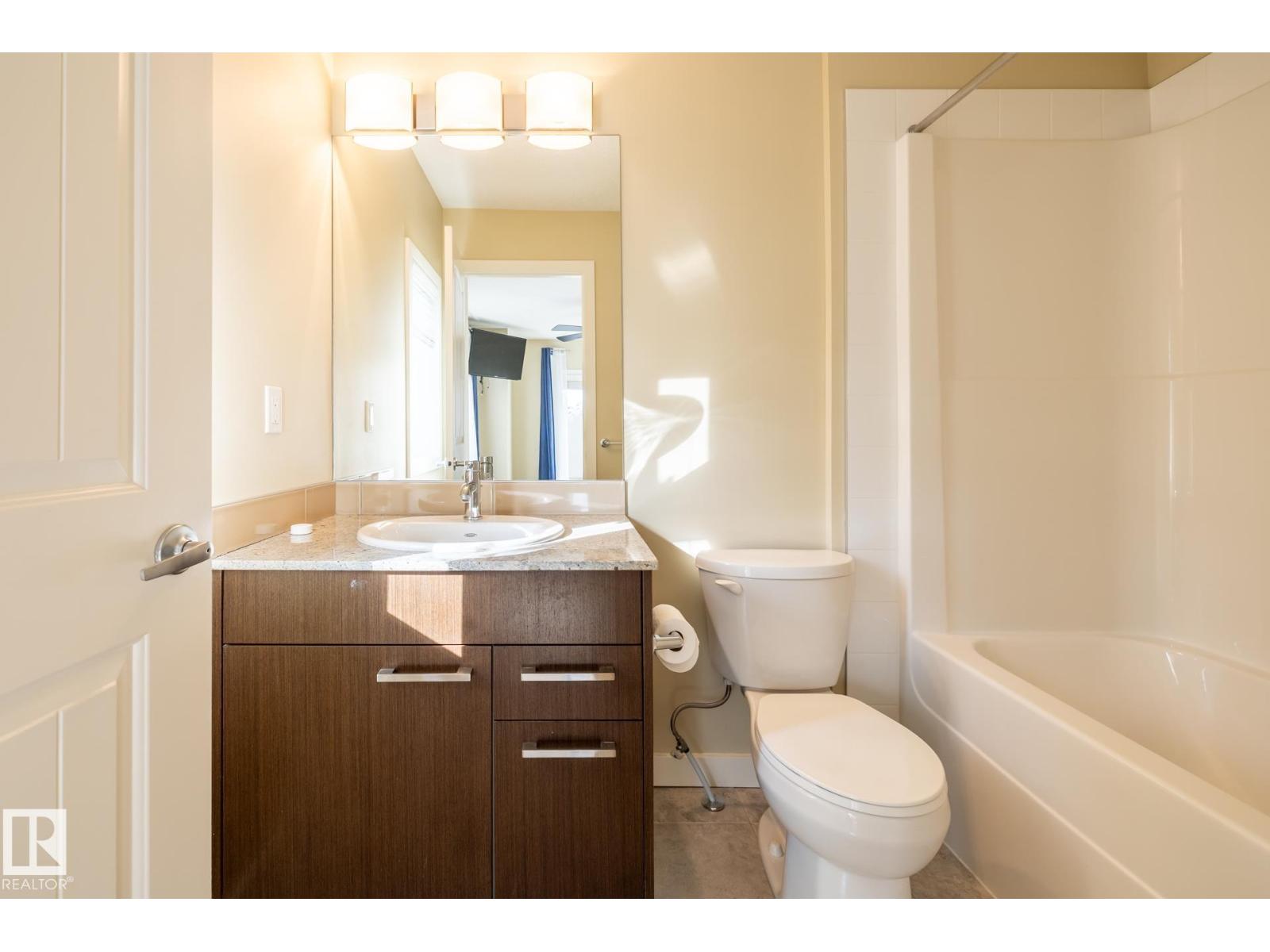 Welcome to this gorgeous 3-storey end-unit townhome, with granite countertops throughout and durable laminate and tile flooring move-in ready and designed to impress. Enter through the attached double garage to a versatile flex room with a large window, perfect for a home office, gym, or media space, with direct access to a scenic walking path. The second level features a bright open-concept layout with 9-ft ceilings, a spacious L-shaped kitchen with island and ample cabinetry, dining and living areas, a convenient powder room, and a balcony ideal for relaxing or entertaining. Upstairs offers a generous primary bedroom and a 4-piece ensuite, plus two additional bedrooms, a 4-piece main bath, and convenient top-floor laundry. Ideally located just off Ellerslie Road with quick access to Anthony Henday Drive and minutes from Meadows Recreation Centre. Close to shopping, dining, parks, and all amenities. Some Photos are virtually staged. (id:63190)