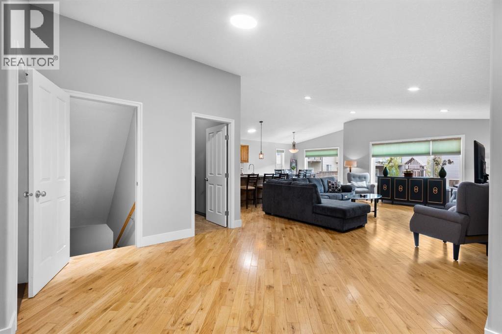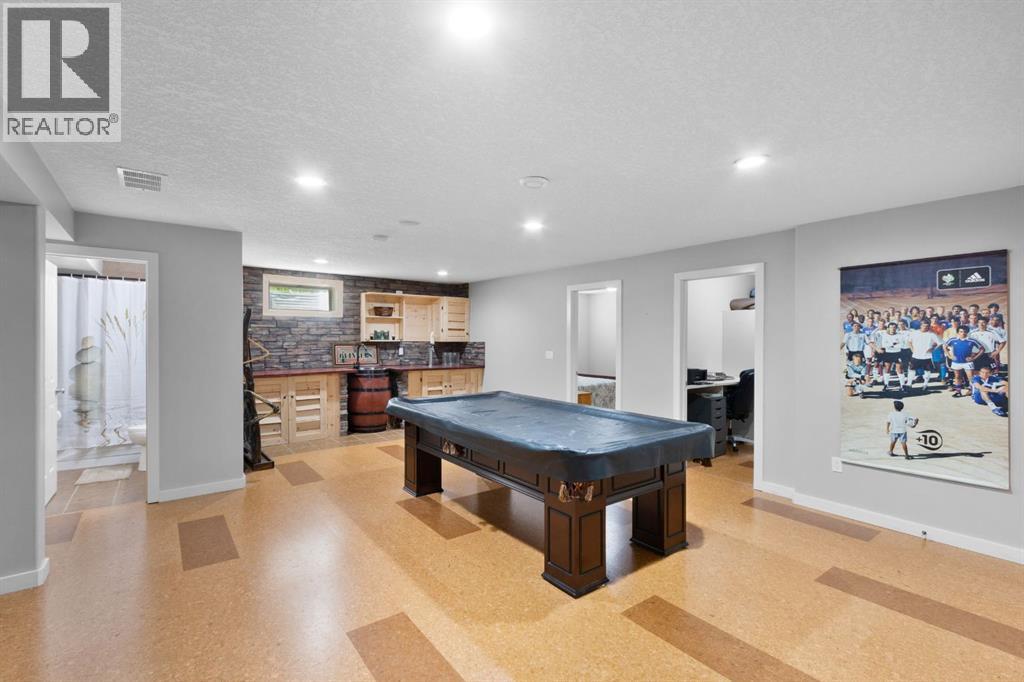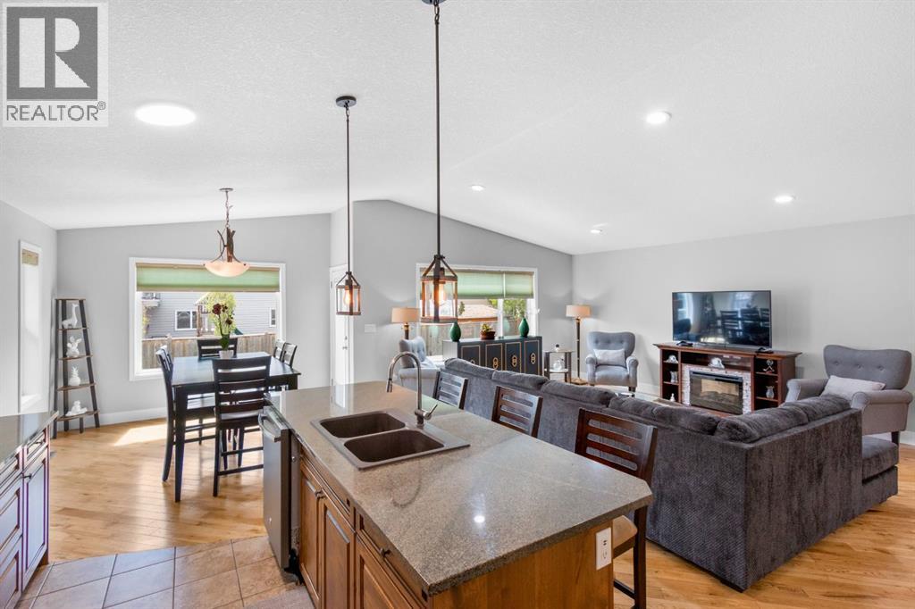 Welcome to 29 Sandpiper Drive — nestled on a quiet street in a family-friendly neighbourhood, this property is just steps from Didsbury High School, making it an ideal choice for growing families. Built in 2012, this beautifully maintained open-concept bungalow offers over 3200 square feet of thoughtfully designed, fully finished living space, along with a heated double attached garage. The fully fenced, south-facing backyard is perfect for soaking up the sun or entertaining on warm evenings, offering both privacy and functionality. Step inside and be greeted by expansive windows that flood the home with natural light, enhancing the stunning warm white oak hardwood flooring and creating a serene, inviting ambiance throughout the large open main living space. The kitchen serves as a beautiful focal point, featuring stainless steel appliances, granite countertops, a walk-in pantry, and rich, warm wood cabinetry that brings both character and timeless charm.Two generously sized bedrooms are thoughtfully tucked away from the main living area, offering both privacy and tranquility. The primary suite is a relaxing retreat, complete with a walk-in closet and a private 3-piece ensuite featuring a luxurious steam shower. The secondary bedroom is bright and spacious, with convenient access to the main floor 4-piece bathroom. Downstairs, the fully finished basement is an entertainer’s dream, complete with infloor heating & a live wood burning stove for year-round comfort. This incredible space features a wet bar, pool table, dart board — all centered around a massive flex area perfect for hosting friends and family. Movie lovers and gamers alike will appreciate the fully wired media room, designed for immersive entertainment. The basement also includes a home office, a generous third bedroom, and another full 4-piece bathroom, making it ideal for friends and family! This incredible property offers the perfect blend of comfort, style, and functionality — Don’t miss your chan ce to make it yours ! Contact your favourite local real estate professional today to schedule your private tour and experience everything this beautiful home has to offer. (id:63190)