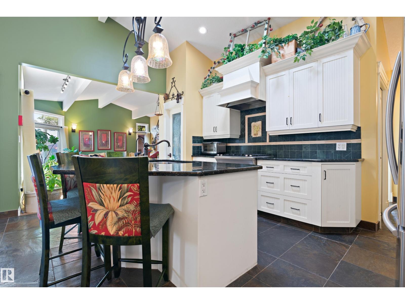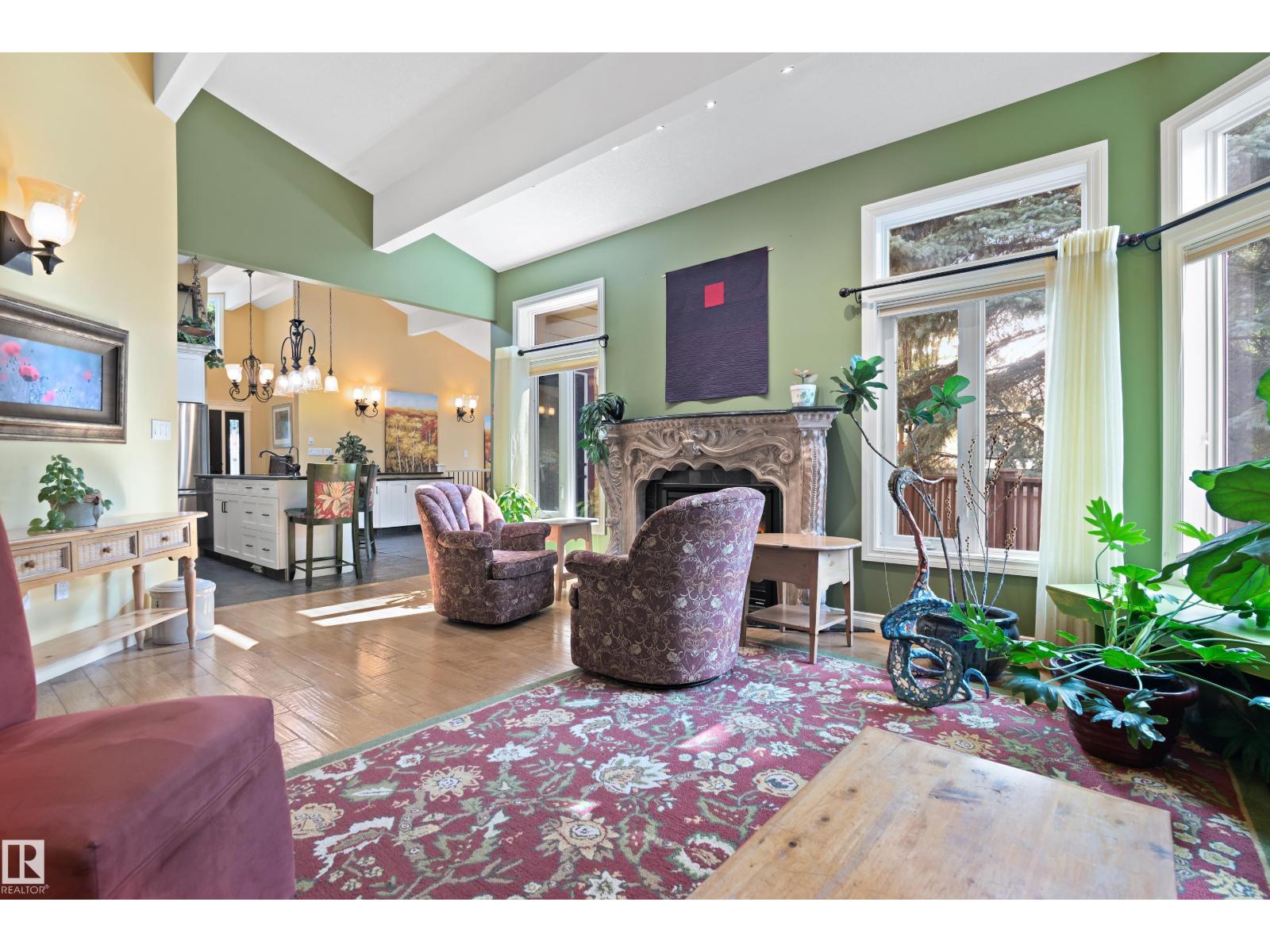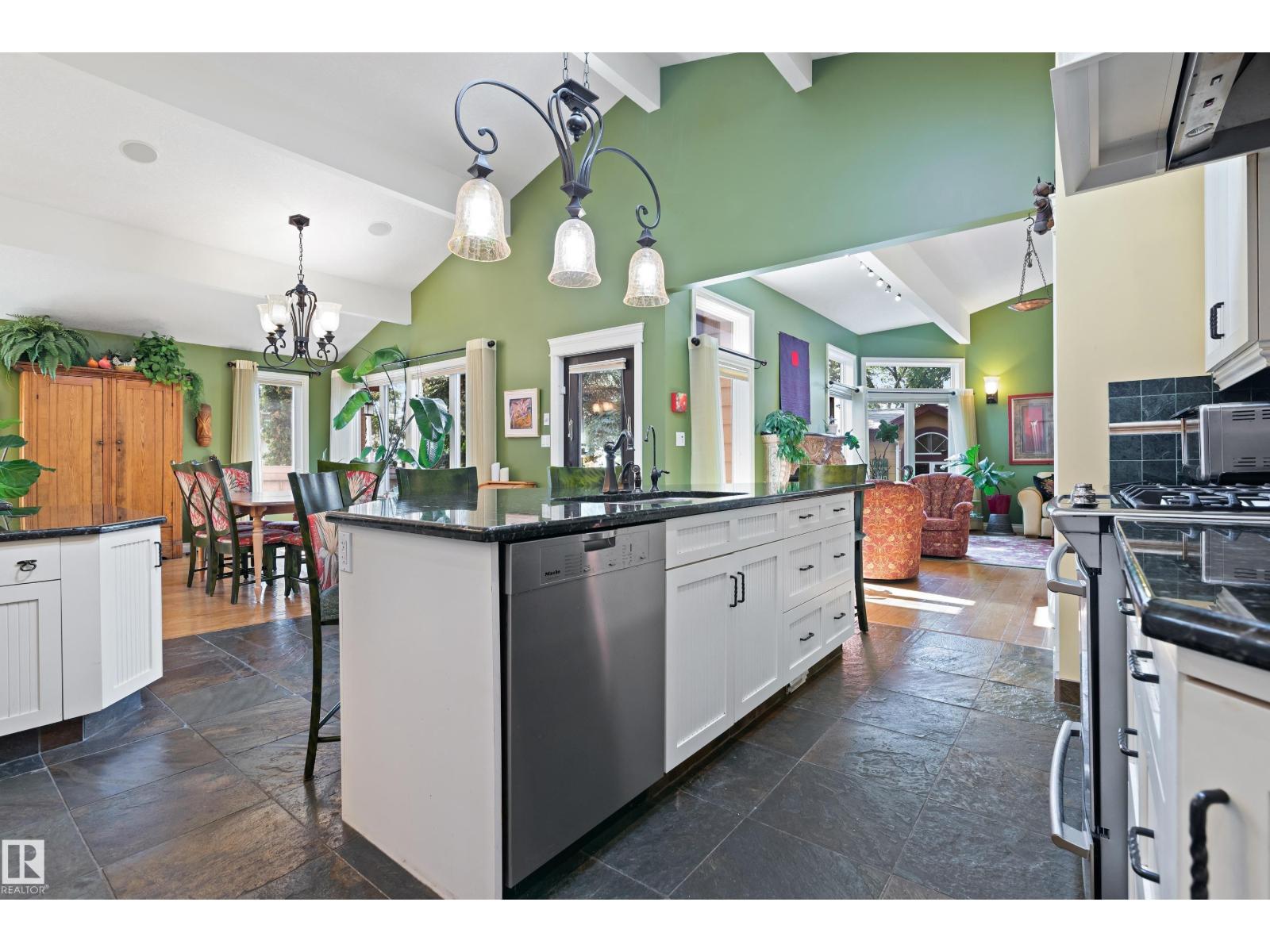 Outstanding! Majorly renovated bungalow in a very desirable location. Some of the notable features include the open beam vaulted ceilings throughout the main floor, the huge chef's kitchen with antique finish shaker maple cabinets, dark granite counters and walk in pantry, quality hand scraped engineered hardwood and slate tile flooring. The large living room with gas fireplace, 2 bedrooms, 2 full bathrooms, an amazing den with a library plus the laundry room complete the main level. The primary bdrm has a walk in closet and a spa like ensuite bathroom with walk in shower. The finished basement has spacious family room with wet bar, a 3rd bedroom, 3 pc bathroom and dry sauna. Double detached garage plus a separate heated workshop. The back yard is quite private, is fully landscaped with mature trees and perennials and there is a welcoming composite deck across the back of the home. Fantastic property, rare opportunity in Brookside! (id:63190)