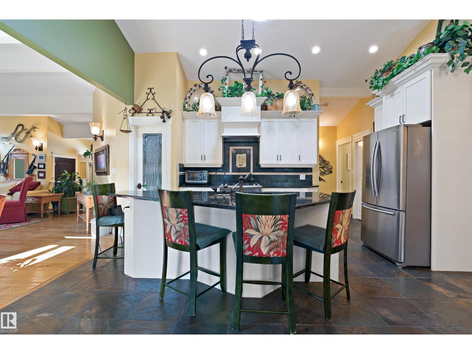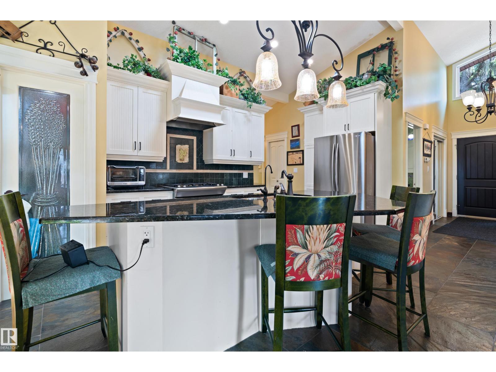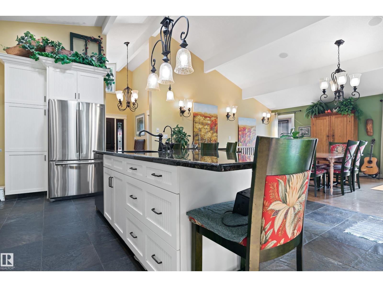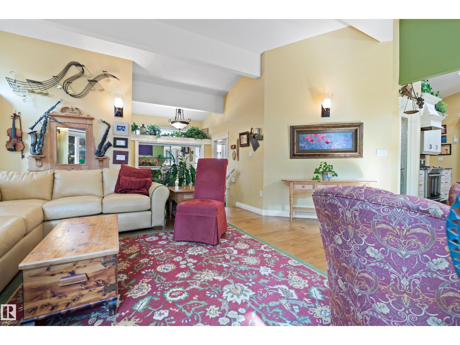Outstanding! Majorly renovated bungalow in a very desirable location. Some of the notable features include the open beam vaulted ceilings throughout the main floor, the huge chef's kitchen with antique finish shaker maple cabinets, dark granite counters and walk in pantry, quality hand scraped engineered hardwood and slate tile flooring. The large living room with gas fireplace, 2 bedrooms, 2 full bathrooms, an amazing den with a library plus the laundry room complete the main level. The primary bdrm has a walk in closet and a spa like ensuite bathroom with walk in shower. The finished basement has spacious family room with wet bar, a 3rd bedroom, 3 pc bathroom and dry sauna. Double detached garage plus a separate heated workshop. The back yard is quite private, is fully landscaped with mature trees and perennials and there is a welcoming composite deck across the back of the home. Fantastic property, rare opportunity in Brookside! (id:63190)