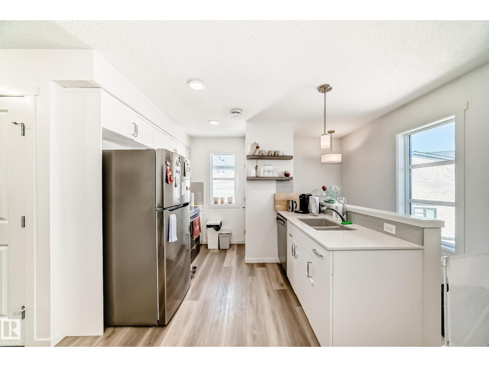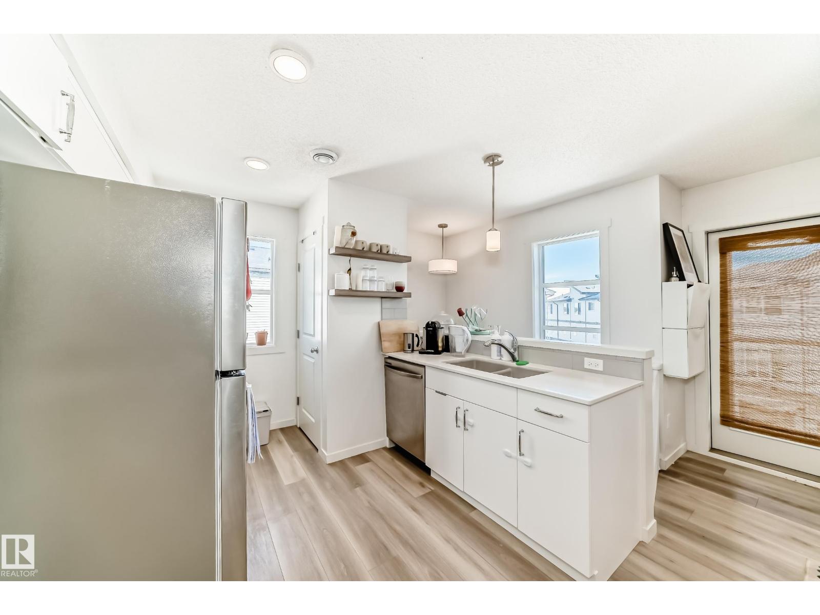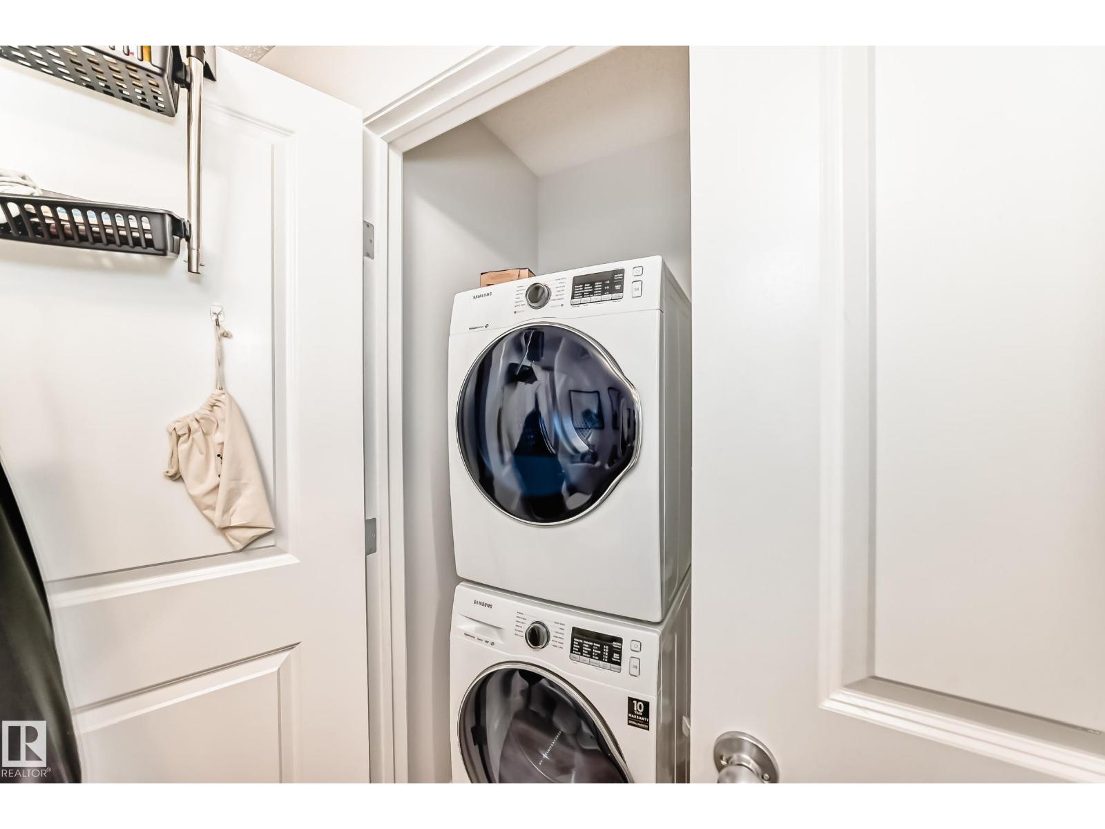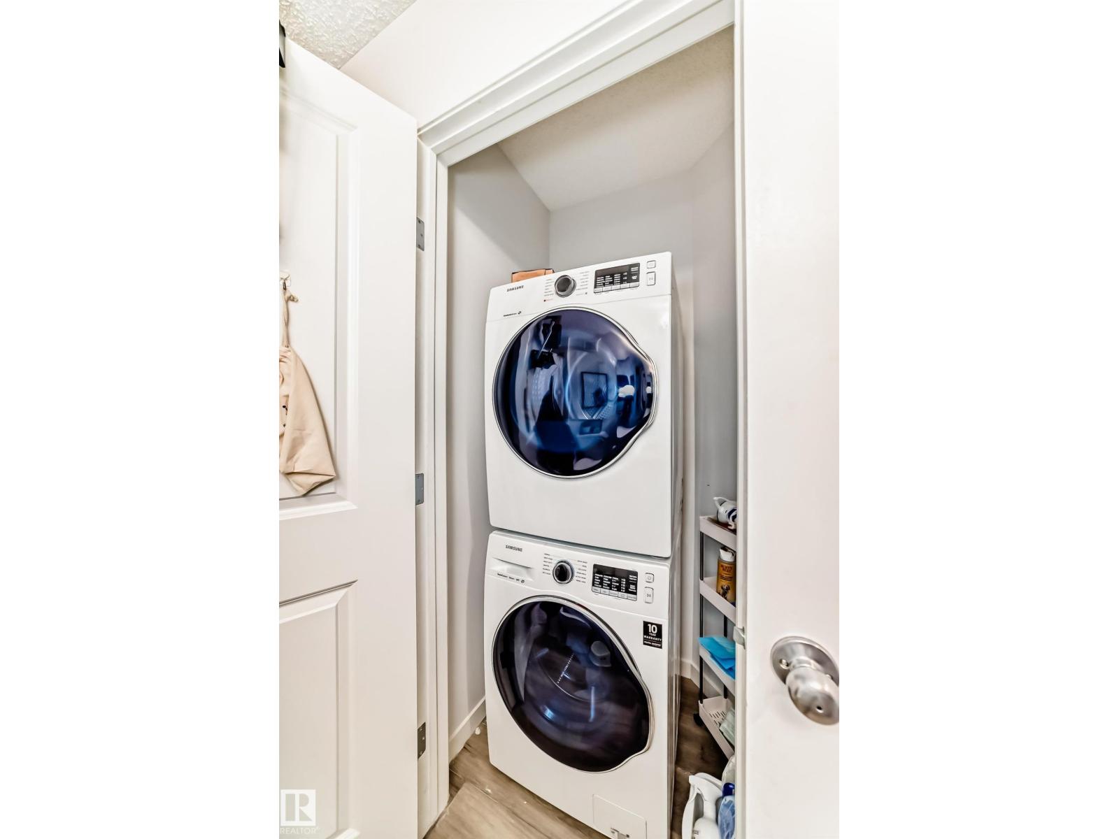 The Westley model by StreetSide Developments offers a modern and functional design with quality finishes throughout. The ground level features an oversized single attached garage. The main living area on the second level showcases an open-concept layout with a spacious kitchen complete with quartz countertops, full tile backsplash, and included appliances. The kitchen flows into a bright living room with large windows that provide plenty of natural light and access to the private balcony. The home includes a primary bedroom with a walk-in closet and a 4-piece bathroom, along with a second bedroom ideal for guests or a home office. An enclosed laundry area with stackable washer and dryer is also included. Flooring consists of vinyl plank and carpet. The complex is well landscaped and offers ample visitor parking on site. (id:63190)