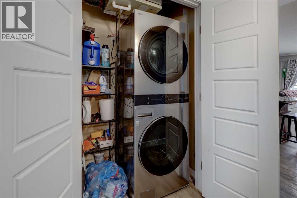 Welcome to this bright and spacious 2 bedroom, 2 bathroom townhouse condo with vaulted ceilings in the living room and kitchen. The kitchen features granite countertops, pantry, quiet-close cabinetry, and a full appliance package including a fridge and dishwasher replaced in 2025. The primary bedroom includes a 4-piece ensuite, while the second bedroom and full bath offer great flexibility. In-suite laundry with stacked washer and dryer (new in 2025). Enjoy a south-facing balcony off the living room. Two portable air conditioning units are included for added comfort. Comes with two outdoor parking stalls — one titled and one assigned. (id:63190)