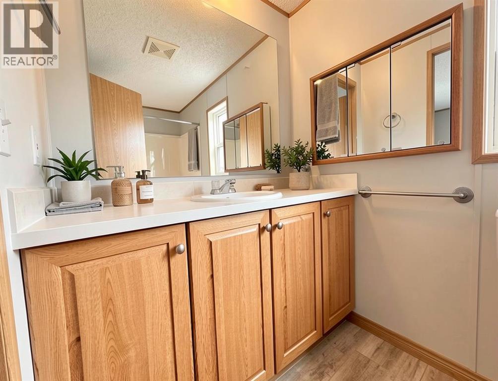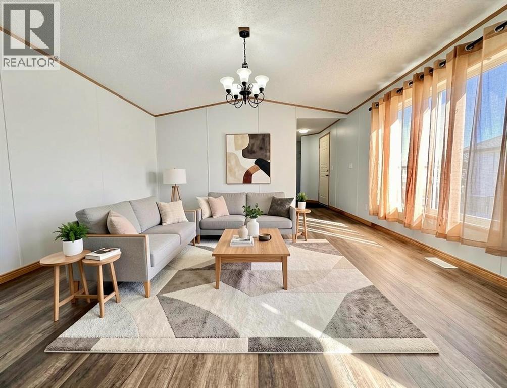 Fresh updates and move in ready convenience make this 2003 modular home in Duchess a great opportunity for buyers looking for affordable, low maintenance living.Step inside to a bright open concept layout where recent renovations have given the home a modern refresh. New vinyl plank flooring runs throughout the entire home, complemented by fresh paint, new baseboards, and several updated light fixtures that create a clean, contemporary feel.The functional floor plan includes 3 bedrooms and 2 full bathrooms, providing comfortable space for families, roommates, or those needing a home office. The primary bedroom features a walk-in closet and private 4pce ensuite, offering a quiet retreat at the end of the day. Both bathrooms will also have new windows installed prior to possession, adding extra value and peace of mind.The kitchen flows nicely into the living and dining areas and comes equipped with a walk-in pantry, refrigerator, stove and dishwasher. Steps away is the laundry area housing the front-load washer and dryer with room for your future deep freeze.Additional features include a hot water tank replaced in May 2018, new chimney installed, an off-street gravel parking pad, and a storage shed for tools and seasonal items.Situated on rented land with lot fees of $350 per month, this property offers an affordable option in a friendly community setting.Ready for quick possession, this updated home is the one you’ve been waiting for. (id:63190)