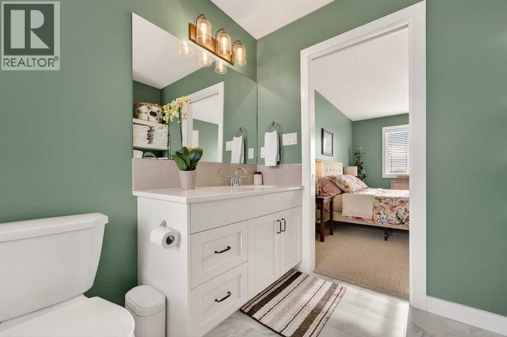 his former showhome is in immaculate condition and still looks and feels like a brand-new home. Located on a desirable corner lot with alley access and no neighbours behind, this property offers extra privacy along with additional parking options that are hard to come by.The main level features a functional open-concept layout that feels bright, spacious, and welcoming from the moment you walk in. The all-white kitchen is both stylish and practical, complete with quartz countertops, stainless steel appliances, plenty of cabinetry, and a central island with extra seating. Just off the kitchen is the dining area, which flows seamlessly toward the sliding glass doors leading out to the deck and the fully landscaped backyard—an ideal space to relax while enjoying the added privacy of having no rear neighbours.Upstairs you’ll find three spacious bedrooms, including the primary retreat featuring a walk-in closet and a well-appointed ensuite with a walk-in shower and a full-size soaker tub, a feature that’s rarely found in homes of this size. The second level also includes another full bathroom, offering a practical layout for families or guests.The basement remains undeveloped, providing a blank canvas for future plans and an opportunity to add additional living space and build equity over time. As a former showhome, the garage received some thoughtful upgrades as well, being fully drywalled and painted, and even equipped with baseboard electric heating.A well-maintained home in a great location with thoughtful upgrades throughout, this property offers the comfort of a move-in ready home that still feels fresh and new. (id:63190)