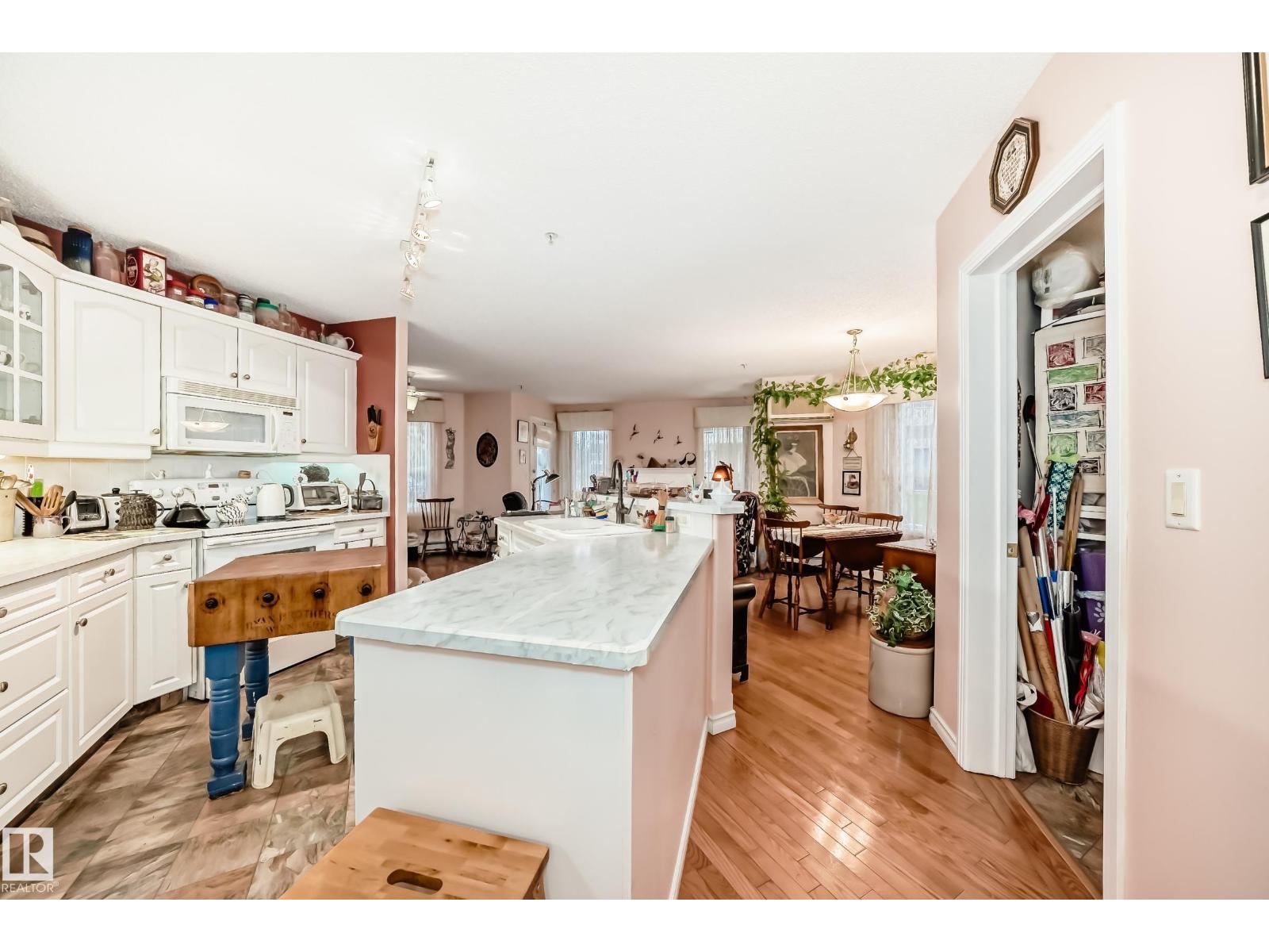 This unit truly has it all! 2 bedroom, 2 bathroom, 2 titled parking stalls, central A/C & fireplace. End unit on the main floor w/ LARGE WINDOWS that invite you into your open concept living room, kitchen & dining room. There is a KING SIZED PRIMARY BEDROOM w/ 4 PIECE ENSUITE, a 2nd bedroom, & additional 3 pc bath w/ corner shower. For hot summer days, enjoy the CENTRAL A/C or your GROUND FLOOR PRIVATE PATIO overlooking tranquil GREEN SPACE! For colder days enjoy the GAS FIREPLACE & the TITLED HEATED UNDERGROUND PARKING w/ STORAGE LOCKER beside the stall PLUS there is a second SURFACE STALL RIGHT OUTSIDE THE UNIT! This adult only building is PET FRIENDLY w/ board approval, has ample visitor parking & amenities include EXERCISE ROOM, CAR WASH & SOCIAL ROOM. Condo fee includes heat, water & more. Walkable location w/ Grocery, Pharmacy, Shopping, Bus, Future LRT, Terra Losa Lake, Senior Center, Churches & West Edmonton Mall nearby. A wonderful opportunity to enjoy worry-free living! (id:63190)