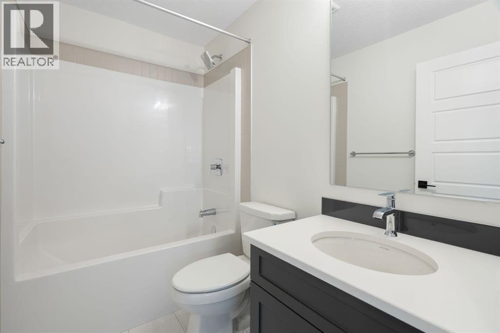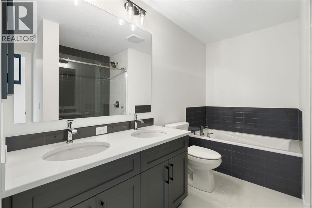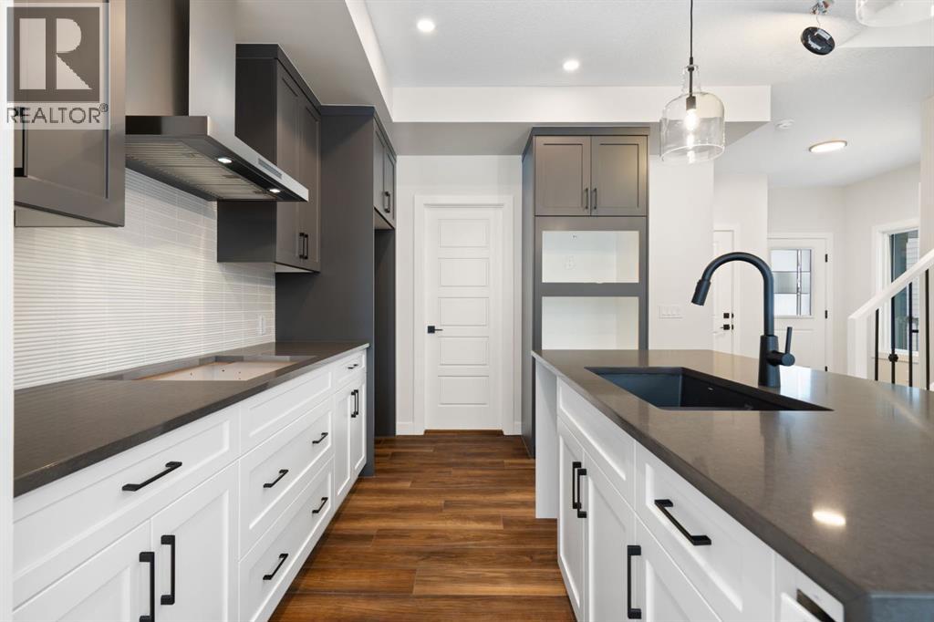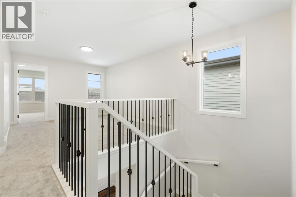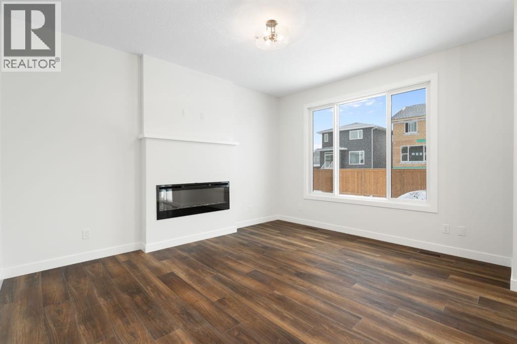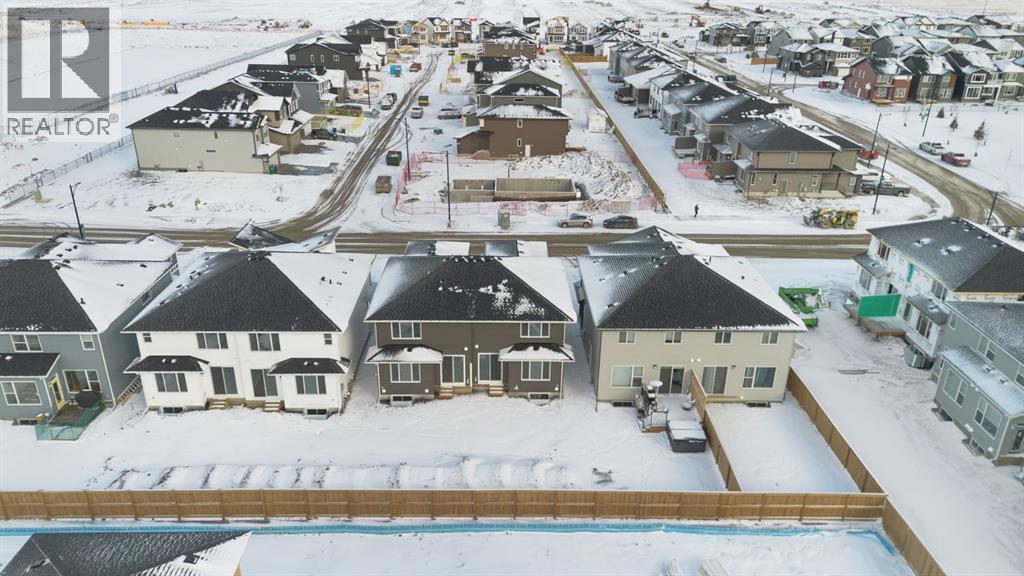 Welcome to the Valmore 4 by Sterling Homes, a long-standing Alberta builder with over 70 years of experience known for quality craftsmanship and thoughtful design. Located in the growing community of Southbow Landing, this move-in ready home sits just steps from parks and green space, with convenient access to schools, shopping, restaurants, the Bow River pathways, and Highway 1 for Calgary commuters.Inside, the main floor is bright and welcoming with large windows and a great room anchored by an electric fireplace. The executive kitchen is designed for both everyday living and entertaining, featuring a waterfall island, walk-in pantry, pendant lighting, and a full stainless steel appliance package including a gas cooktop. The double attached garage is also easily accessible off the entry way.Upstairs, the layout is both practical and spacious. A central bonus room provides that extra living area often missing in duplex homes. The primary suite features a 5-piece ensuite with a soaker tub, walk-in shower, and tile flooring. Two additional well-sized bedrooms, 4-piece bathroom, and convenient upper-floor laundry complete the level.The backyard offers plenty of space for a future deck, trampoline, garden, or room to simply enjoy the outdoors.Built Green certified, the home includes triple-pane windows, a high-efficiency furnace, solar chase for future solar installation, and an electric vehicle charger rough-in. Smart home features include a programmable thermostat, Ring doorbell camera, smart front door lock, motion-activated switches, and an Amazon Alexa touchscreen hub.A well-designed, energy-efficient home in one of Cochrane’s newest communities, now ready for its first owners. (id:63190)