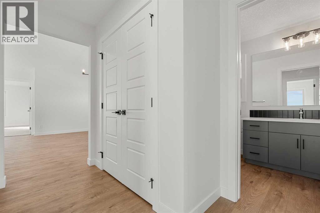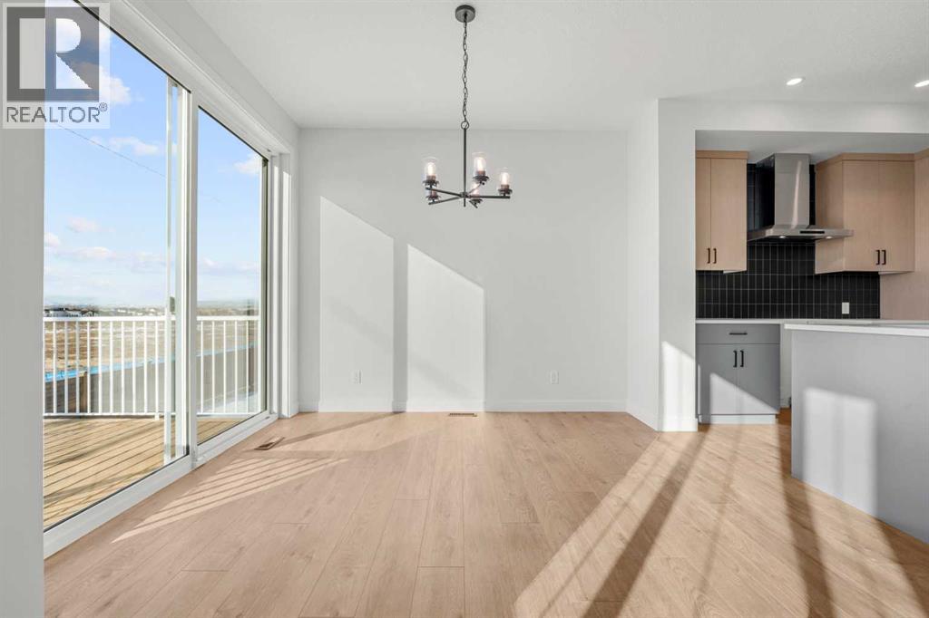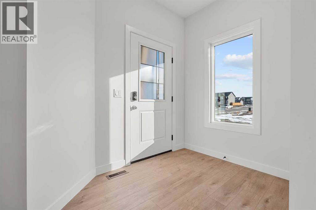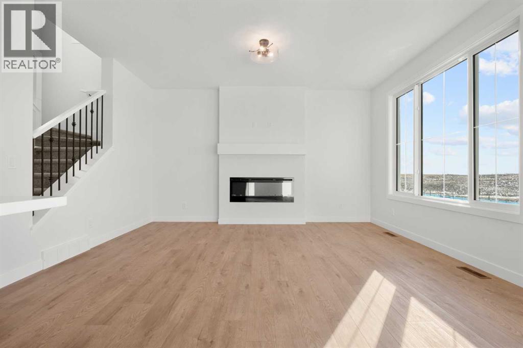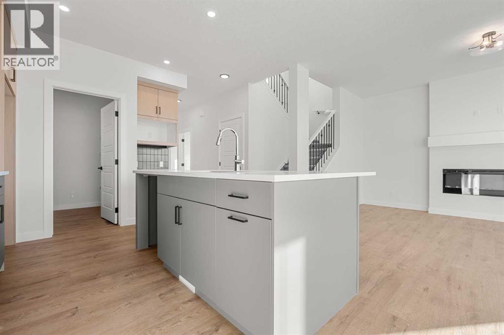 Welcome to 512 Lawthorn Way SE in Airdrie , a beautifully crafted home that offers nearly 2,400 sq. ft. of refined living space, featuring 4 spacious bedrooms and 3 bathrooms in a thoughtfully designed two-storey layout.Perfectly positioned backing onto 40th Avenue with stunning mountain views, this home combines elevated design with everyday functionality. The main floor showcases a modern kitchen complemented by a fully equipped spice kitchen, ideal for entertaining and preparing elaborate meals while keeping the main space pristine. A convenient side entrance provides direct access to the undeveloped basement, offering excellent potential for future development or multi-generational living.Upstairs, the home continues to impress with a bright and expansive bonus room featuring vaulted ceilings, creating an open and airy retreat. The luxurious primary suite includes a spa-inspired 5-piece ensuite with a soaker tub with tiled skirt, separate shower, and private water closet for added comfort and privacy. Luxury vinyl plank flooring in the bonus room and upper hallways adds both durability and modern style.Additional highlights include a beautiful electric fireplace with a paint-grade mantel and numerous upgrades throughout.Ideally located with quick access to Deerfoot Trail, this home places you just minutes from CrossIron Mills Mall, Calgary International Airport, schools, parks, and a wide variety of amenities.A perfect blend of style, space, and convenience, this highly upgraded Home is an exceptional opportunity in one of Airdrie’s growing communities. (id:63190)