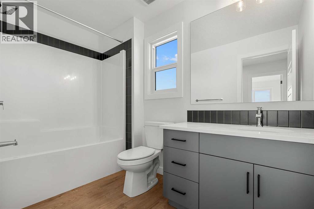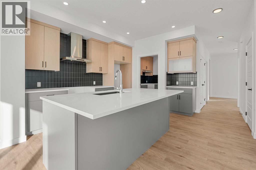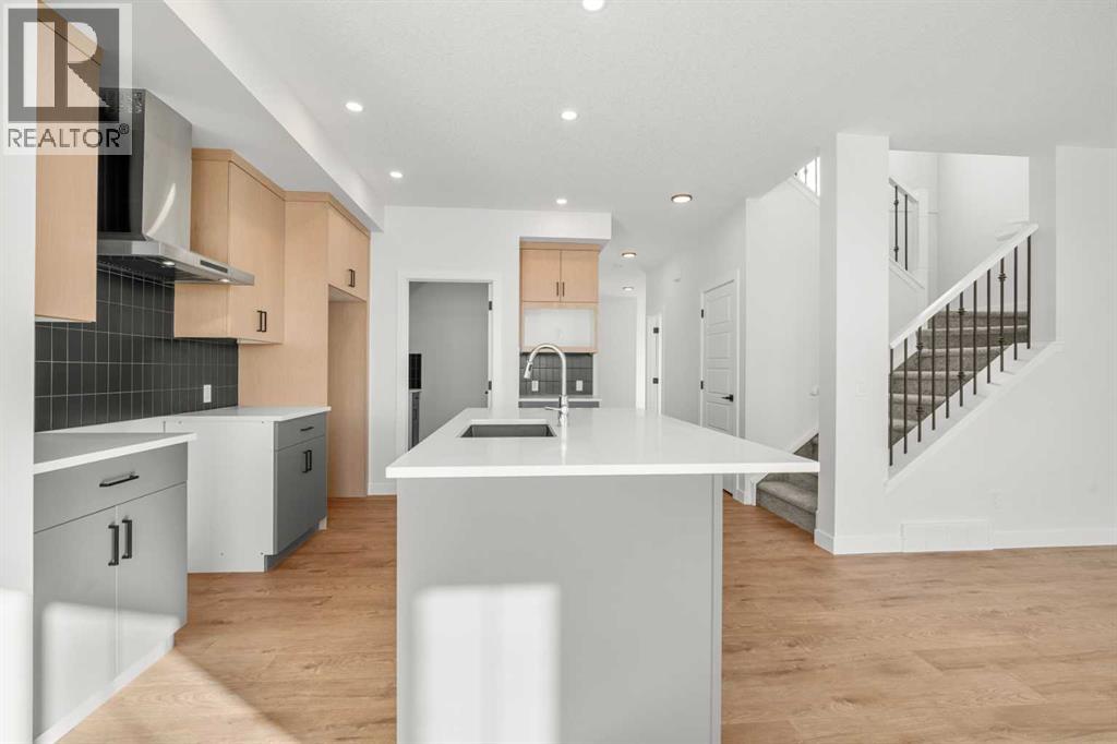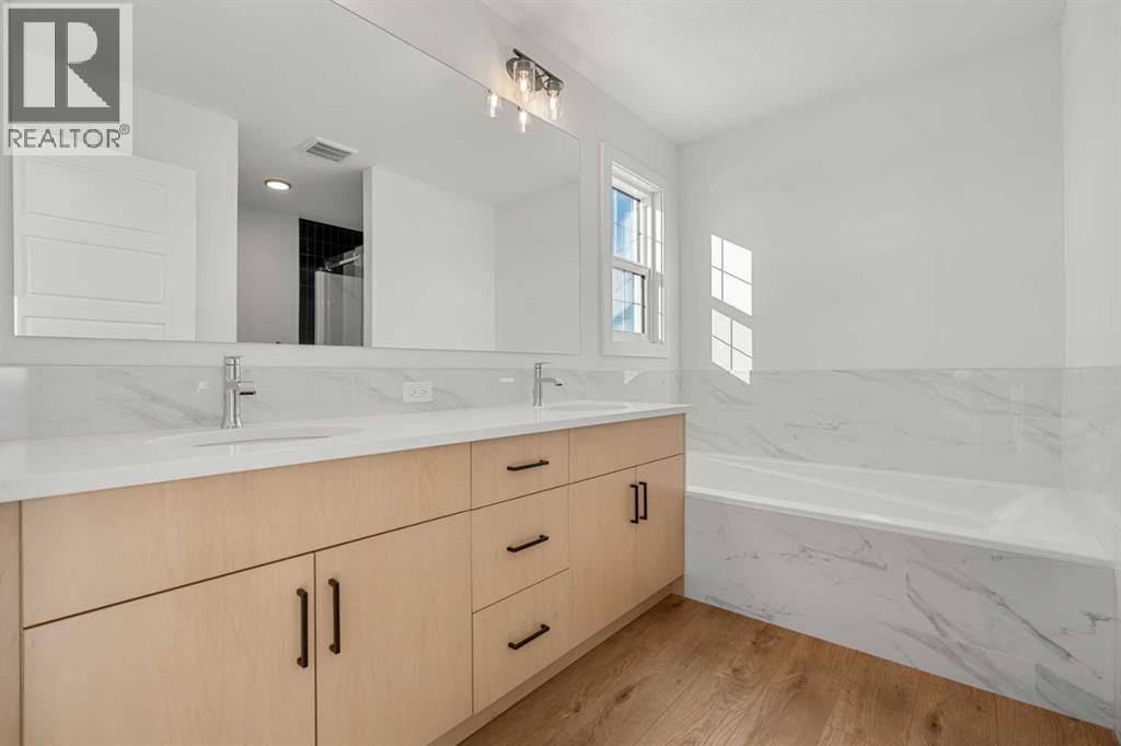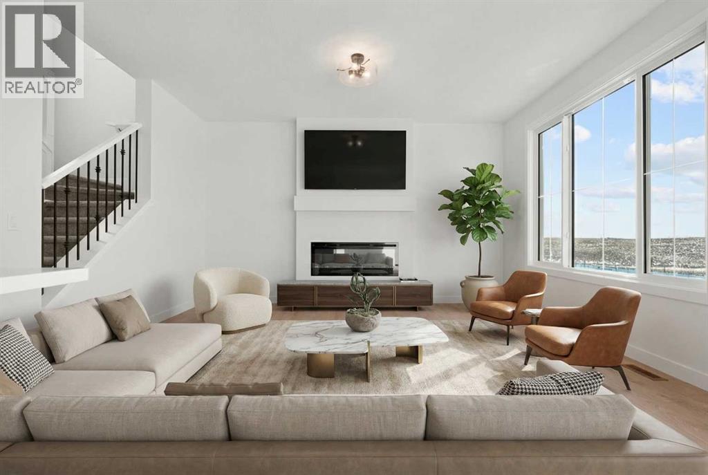 Welcome to 512 Lawthorn Way SE in Airdrie , a beautifully crafted home that offers nearly 2,400 sq. ft. of refined living space, featuring 4 spacious bedrooms and 3 bathrooms in a thoughtfully designed two-storey layout.Perfectly positioned backing onto 40th Avenue with stunning mountain views, this home combines elevated design with everyday functionality. The main floor showcases a modern kitchen complemented by a fully equipped spice kitchen, ideal for entertaining and preparing elaborate meals while keeping the main space pristine. A convenient side entrance provides direct access to the undeveloped basement, offering excellent potential for future development or multi-generational living.Upstairs, the home continues to impress with a bright and expansive bonus room featuring vaulted ceilings, creating an open and airy retreat. The luxurious primary suite includes a spa-inspired 5-piece ensuite with a soaker tub with tiled skirt, separate shower, and private water closet for added comfort and privacy. Luxury vinyl plank flooring in the bonus room and upper hallways adds both durability and modern style.Additional highlights include a beautiful electric fireplace with a paint-grade mantel and numerous upgrades throughout.Ideally located with quick access to Deerfoot Trail, this home places you just minutes from CrossIron Mills Mall, Calgary International Airport, schools, parks, and a wide variety of amenities.A perfect blend of style, space, and convenience, this highly upgraded Home is an exceptional opportunity in one of Airdrie’s growing communities. (id:63190)