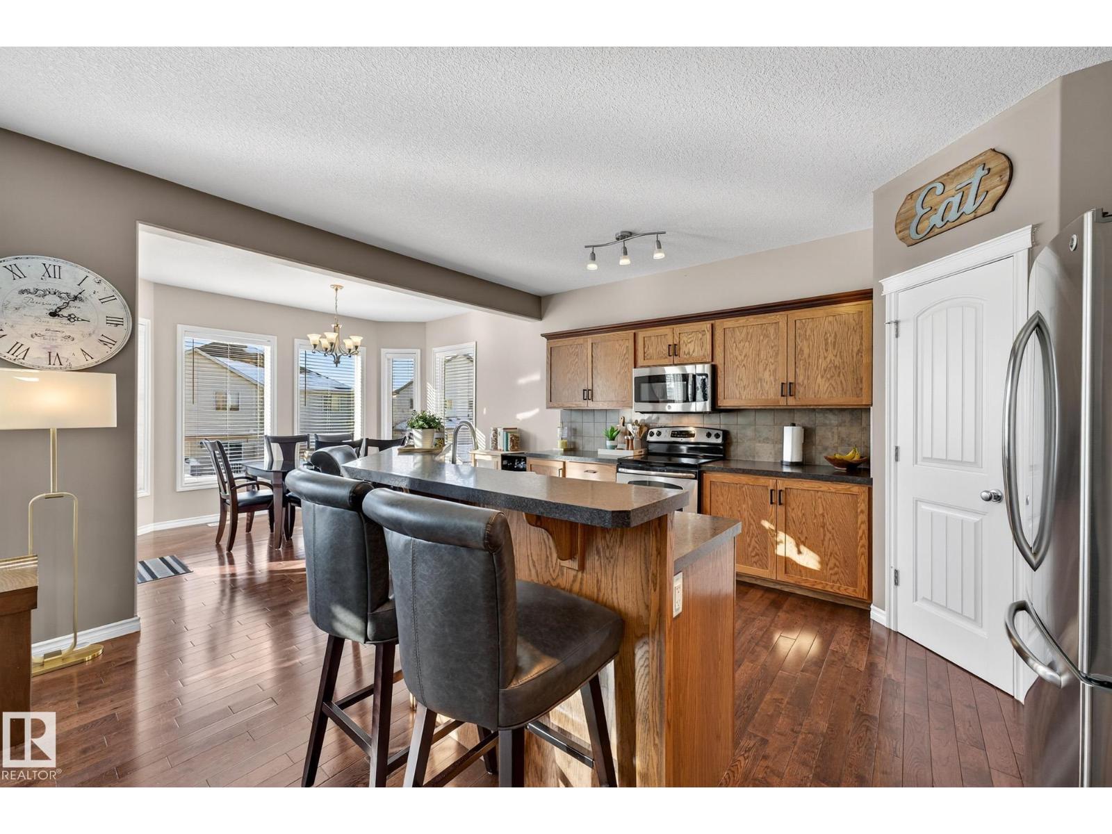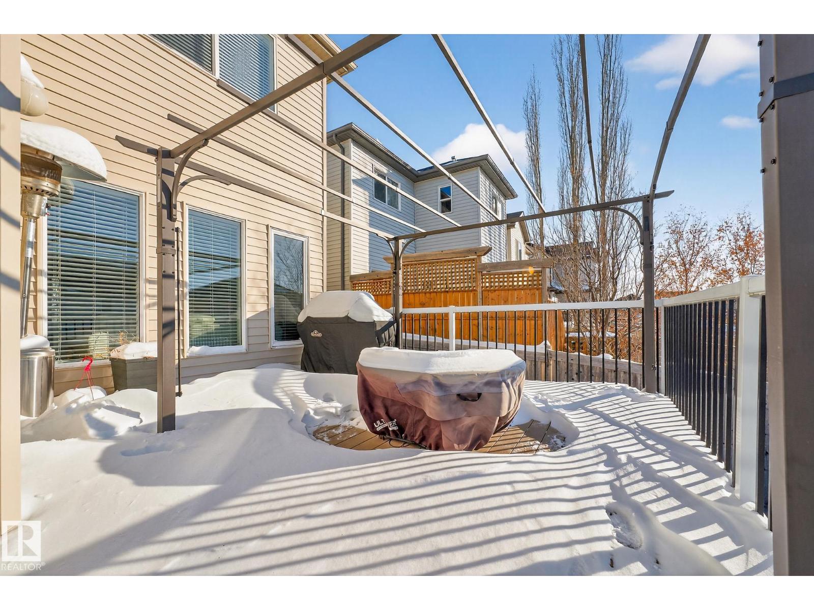 Welcome to this beautifully maintained 2,233 sq ft two-storey home with a double attached garage, located in the highly sought-after community of Walker. The main floor features rich hardwood flooring, 9' Ceiling and large west-facing windows that fill the home with natural light. The elegant family room is highlighted by a cozy gas fireplace, creating the perfect space to relax. Off the main entrance, you’ll find a versatile den or formal dining room. The spacious kitchen offers warm wood cabinetry, a large island, stainless steel appliances, and a convenient walkthrough pantry. Central air conditioning and a 2-piece powder room complete the main level. Upstairs, enjoy a generous bonus room with vaulted ceilings, three well-sized bedrooms, 4 piece bathroom and a stunning second 5-piece primary ensuite designed for comfort and functionality.The expansive west-facing backyard is perfect for entertaining, featuring a composite deck and gazebo ideal for enjoying long summer evenings. (id:63190)