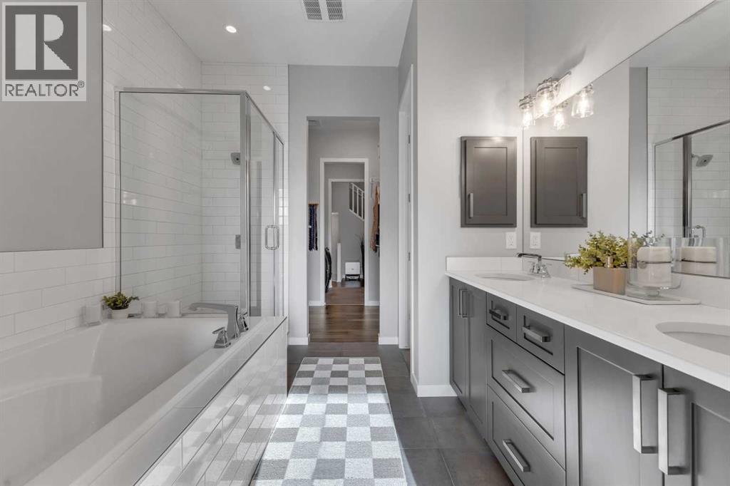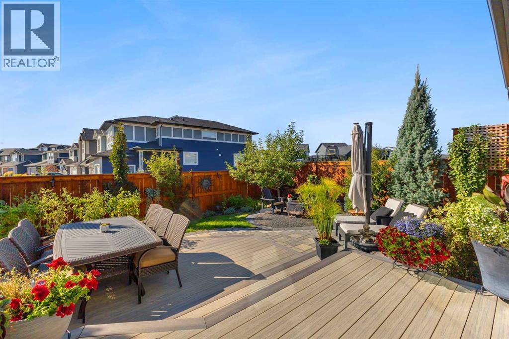 Welcome to this stunning luxury bungalow with an upper loft nestled in the heart of the highly sought-after Riverstone community in Cranston. Surrounded by nature and located along the edge of the Bow River, Riverstone offers breathtaking scenery, tranquil walking paths, and an unmatched sense of peaceful living. Perfectly positioned on a corner lot backing directly onto a pathway, this exceptional home offers the rare combination of refined indoor living and serene outdoor surroundings. With over 2,900 sq ft of developed living space this thoughtfully designed home offers a total of five bedrooms, making it ideal for both growing families and those looking to downsize. Step inside to an inviting open-concept layout highlighted by wide-plank flooring, soaring 10-foot ceilings, and elegant 8-foot doors throughout the main level. Natural light floods every corner through the array of additional east facing windows. The expanded gourmet kitchen features a sprawling island, beautiful quartz counters, upgraded stainless steel appliances, a beverage fridge, large pantry, and custom ceiling height cabinets - perfectly designed for those who like to cook and entertain. The dining area easily accommodates larger dinner gatherings and flows seamlessly into the spacious great room with views of the perfectly manicured back yard. The primary suite is a true sanctuary, complete with a luxurious ensuite that features dual vanities, a fully tiled walk-in shower, a soaker tub, and a walk-through closet connecting to your main floor laundry room. This home also features a rare and highly sought-after upper bedroom/loft with a walk-in closet, offering exceptional flexibility for use, including as an office space. A stylish 2-piece powder room and large mudroom complete the main level. The fully finished lower level expands the home’s living space with a large open recreation and family area, perfect for movie nights or entertaining. In-floor heating throughout ensures year-round comf ort, while three additional bedrooms and a full four-piece bathroom offer flexible options for guests, teens, or extended family. The backyard is a professional masterpiece featuring a large tiered deck, a patio, shed, and a cozy firepit area. An abundance of trees, shrubs, and vibrant perennials are perfectly arranged to create both beauty and a serene, private space for relaxation. This home truly reflects pride of ownership; every feature is thoughtfully designed and maintained to the highest standards. Additional upgrades including central A/C, exterior security cameras, extended garage, 36" bathroom vanities, and high-end lighting, enhance this home's beauty. (id:63190)