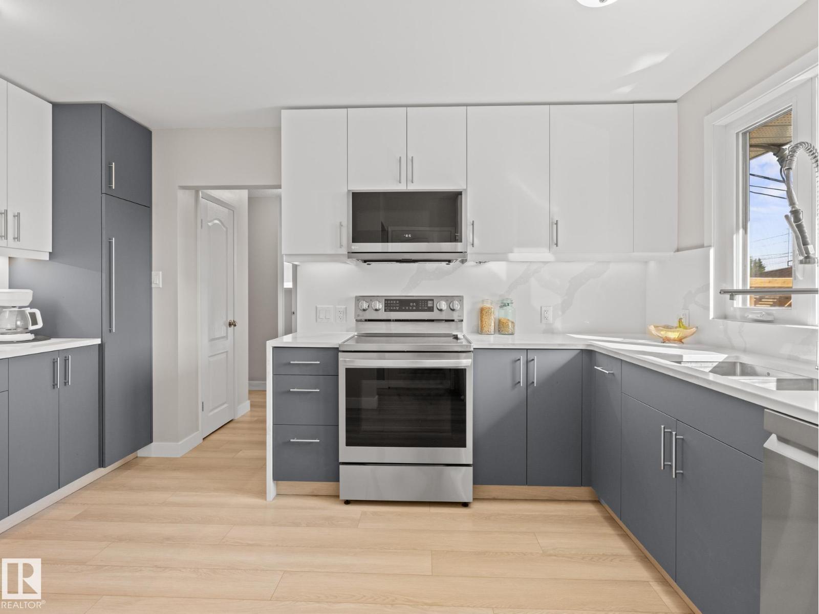 Welcome to this beautiful Air-Conditioned bungalow in the desirable community of West Meadowlark Park, perfectly situated on a large lot. This well-kept home with NEW FURNACE, ROOF AND HWT offers 4 bedrooms with plenty of space for the whole family. The main floor features a bright and spacious living room filled with natural light, a stunning NEW kitchen with new appliances, warm and inviting cabinetry, and a separate dining area. Three comfortable bedrooms and a full bathroom complete the main level. Throughout the home you’ll find new carpet and luxury vinyl plank. The fully finished basement offers additional living space with a large recreation room, a fourth bedroom, and a convenient half bathroom. Outside, enjoy the fully landscaped backyard featuring a beautiful pond with fish, a stunning deck perfect for entertaining, and a HEATED 22x24 detached double garage with 220V! A wonderful home in a family-friendly neighborhood close to schools, parks, West Edmonton Mall, and transit. (id:63190)