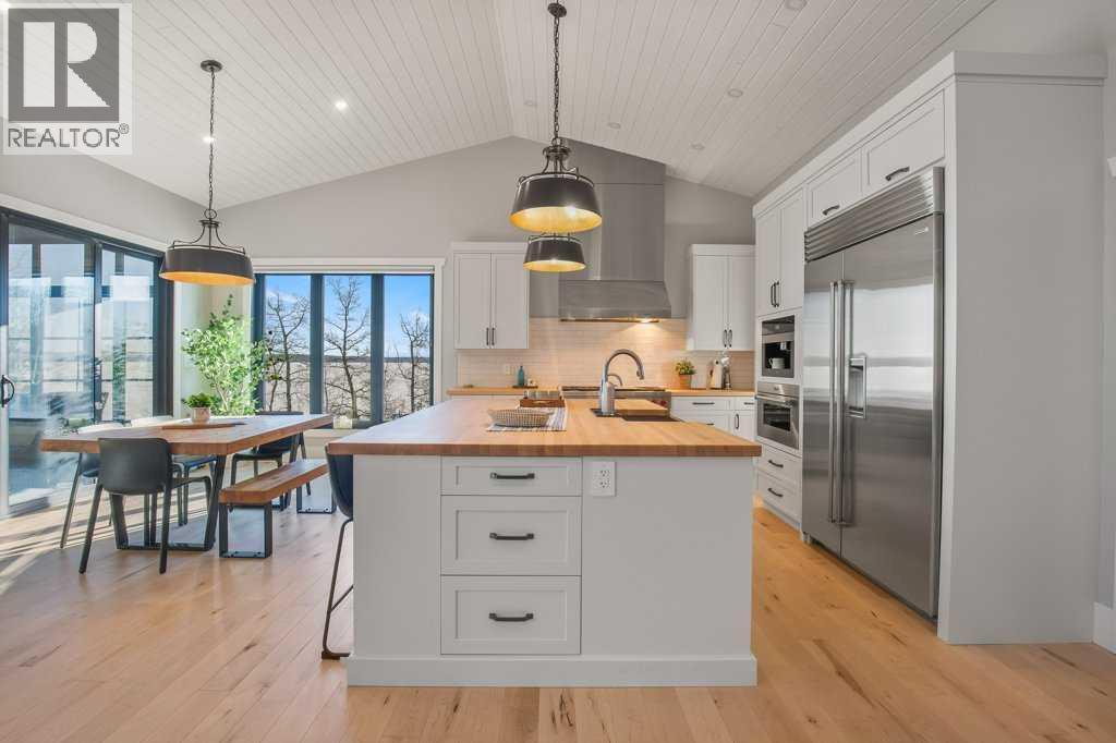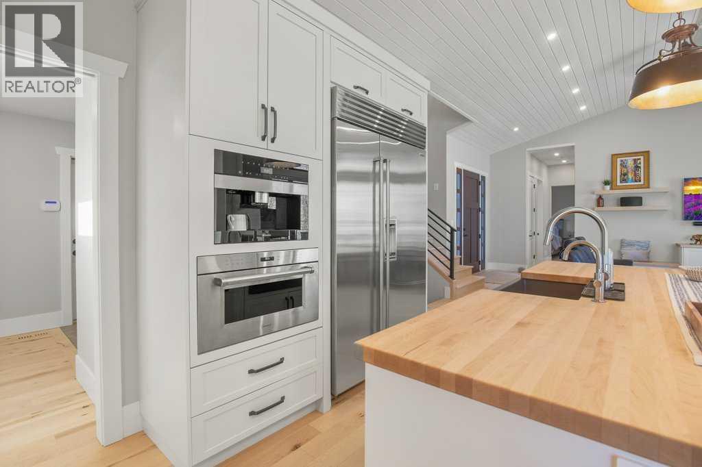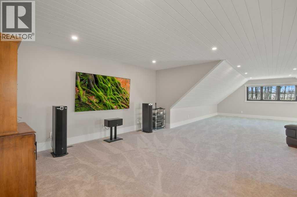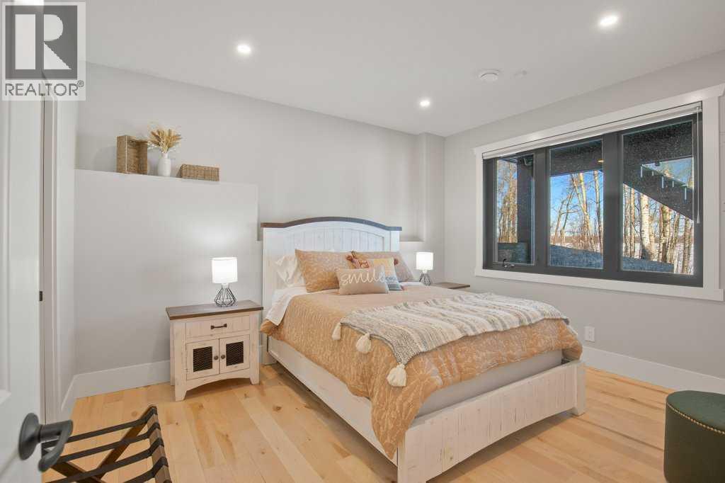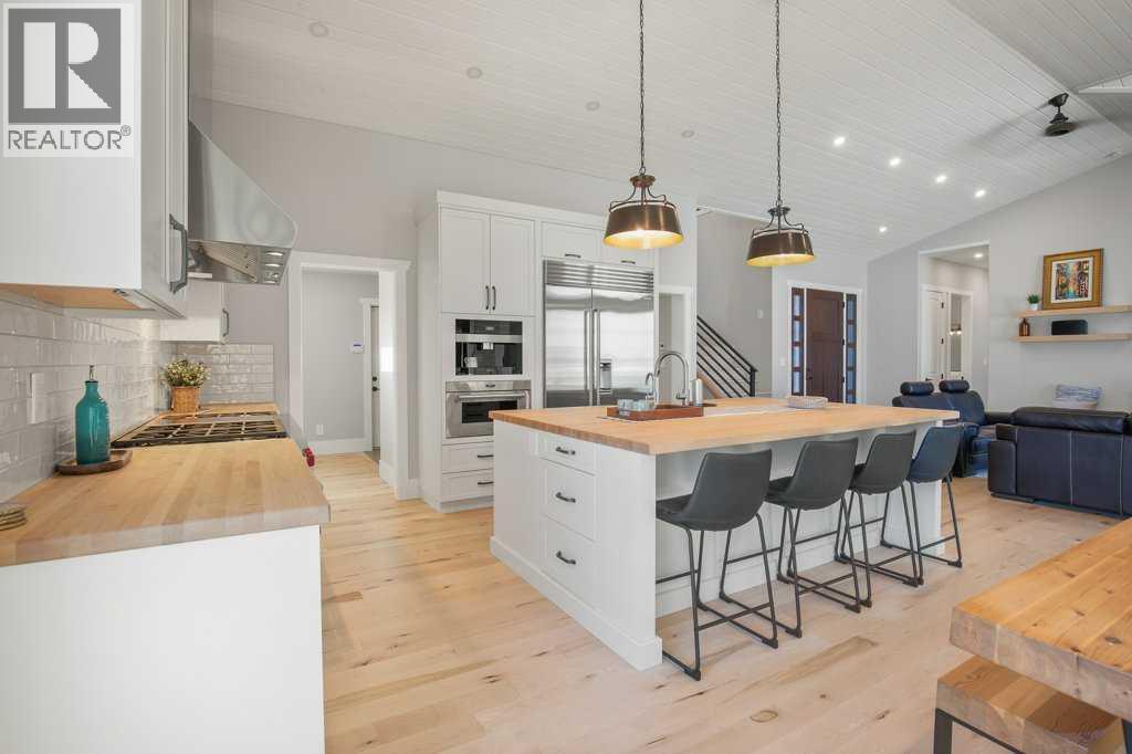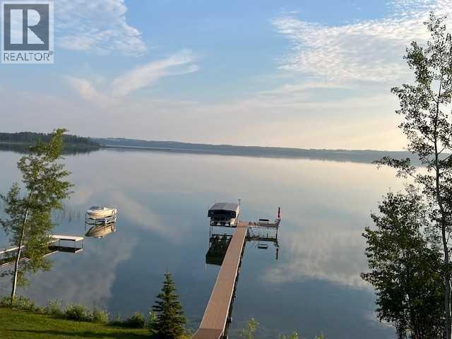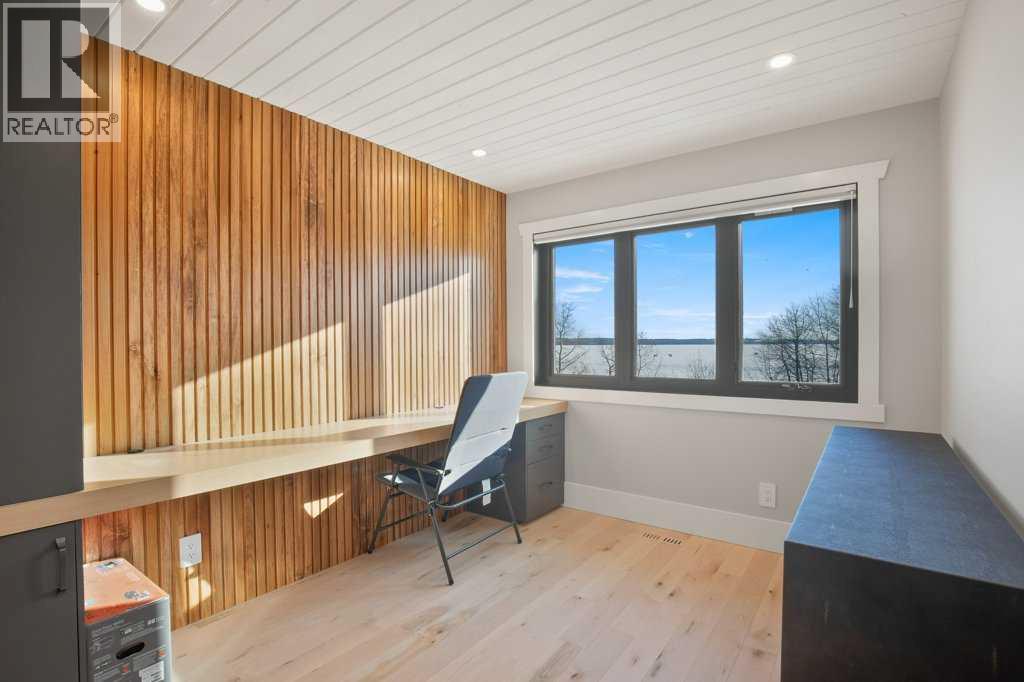 Experience luxury lakefront living in this exceptional property on the shores of Sylvan Lake. Situated on a quiet, no-exit close, this private and beautifully landscaped property offers 78 feet of pristine lakefront with level, easy access to the water, making it ideal for enjoying everything lake life has to offer.The home welcomes you through a stunning exposed aggregate entry that sets the tone for the craftsmanship found throughout. Inside, the main living area is open, bright, and spacious, highlighted by vaulted shiplap ceilings that create a warm lake-house feel. A striking three-sided fireplace anchors the living room, while massive windows frame spectacular lake views.The main floor features maple hardwood flooring and upgraded 8-foot doors, leading into a chef’s kitchen designed for both entertaining and everyday living. High-end Wolf appliances, a built-in Miele coffee machine, and upgraded treated wood countertops elevate the space with style and function. Just off the living area is a heated sunroom with TV, the perfect spot to relax and take in the views year-round.A practical and well-designed garage entry includes laundry, a sink, and a butler’s pantry—ideal for coming in from the lake or the garage. The spacious primary bedroom offers incredible views along with his-and-hers walk-in closets and a beautiful ensuite featuring in-floor heat, dual sinks, and an oversized shower. A second bedroom and a full 4-piece bathroom complete the main level.Step outside onto the oversized deck with seamless glass railing, providing uninterrupted lake views and stairs leading to the lower level.Above the triple garage is a huge bonus room complete with surround sound—perfect for movie nights, a games area, kids’ play space, or hosting extra guests. This level also includes a half bath and dedicated office space.The fully finished walkout basement is designed for lake life. It opens to a large covered exposed-aggregate patio, complete with an outdoor shower fo r rinsing off after a swim or hot tub. There are two additional bedrooms, both with walk-in closets, a 3-piece bathroom, cozy gas fireplace, and an inviting wet bar with full fridge.A standout feature is the lake-toy storage room, fully finished with epoxy flooring and accessible through a large garage door, making it easy to store and clean gear.Car enthusiasts and hobbyists will appreciate the triple heated garage, equipped with in-floor heat, drains, epoxy flooring, and even a dog wash station.Additional features include Gemstone exterior lighting, central air conditioning, and central vacuum. This luxury lakefront home is turn key and ready to go. Just bring your boat and start living the lake life! (id:63190)