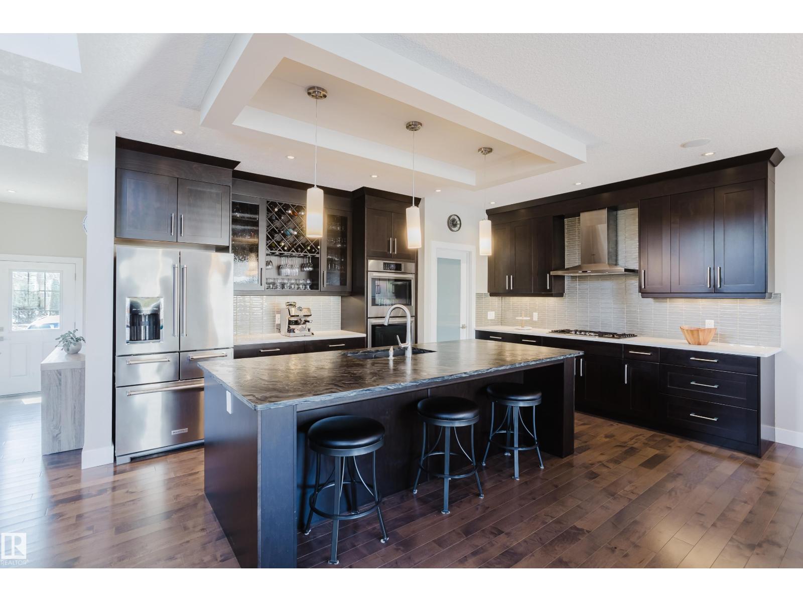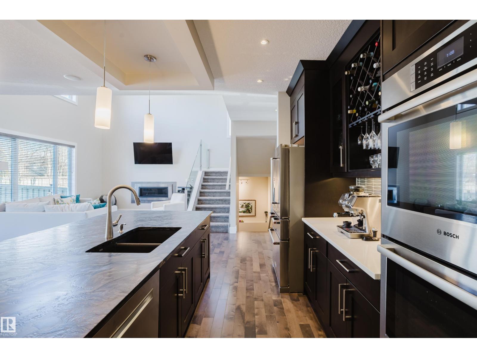 Located in the prestigious community of Copperwood in The Hamptons, this exceptional two-storey home offers west exposure, peaceful tree views, and immediate access to nearby parks and pathways. With 4,069 sq.ft. of professionally designed living space. Features 4 bedrooms, 2 dens, and 5 bathrooms, a dramatic vaulted great room, functional walk-through pantry, mudroom, upper-floor laundry and bonus room. The fully developed basement provides additional recreation and entertaining space, complete with bathroom, ample storage and rough in for wet-bar so you can put your finishing touches on it. Outside, enjoy your private backyard. Convenience of an attached triple garage with floor drain and an impressive 60+ ft. driveway, ideal for guest parking or accommodating larger recreational vehicles. (id:63190)