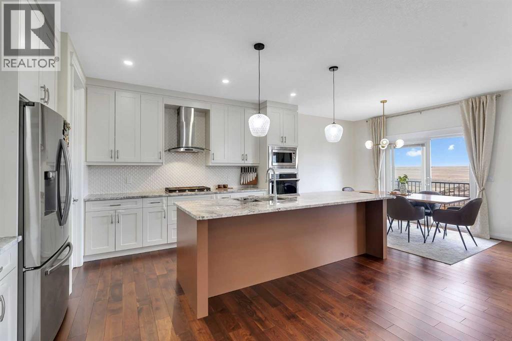 4-Bedroom Family Home with Walkout Basement for Sale in Strathmore, AB – 838 Edgefield StreetDiscover this beautifully upgraded 4-bedroom, 3-bathroom home in Edgefield, Strathmore, Alberta — offering over 2,400 sq ft of modern living space with a rare unfinished walkout basement ready for your vision. Perfect for Calgary commuters, this home sits just minutes from Highway 1 with an easy 40-minute drive to the city.Located within walking distance to George Freeman School and close to Walmart, Sobeys, RONA, and everyday services, this property combines small-town living with big-city convenience — making it one of the most family-friendly homes for sale in Strathmore today.Main floor highlights: Step into a bright, open-concept layout featuring soaring 8-foot doors, rounded wall corners, energy-efficient triple-pane windows, and engineered hardwood flooring. The dedicated main floor office/den is ideal for remote work or study.Gourmet kitchen: The chef's kitchen is designed to impress, with granite countertops, a gas stove, upgraded range hood, modern refrigerator, and abundant cabinetry. Custom moldings, upgraded baseboards, and designer lighting complete the main living and dining areas.Upper floor: The spacious primary suite retreat is joined by three additional bedrooms, a versatile bonus room, two full bathrooms with granite countertops, and a convenient upper-floor laundry room with sink.Additional features include: Custom stair railing · upgraded front entrance door · wider double attached garage with extra storage workspace · unfinished walkout basement with development potential.Whether you're searching for Strathmore real estate, a move-up family home near Calgary, or a property with walkout basement potential in Alberta — 838 Edgefield Street checks every box. Book your private showing today. (id:63190)