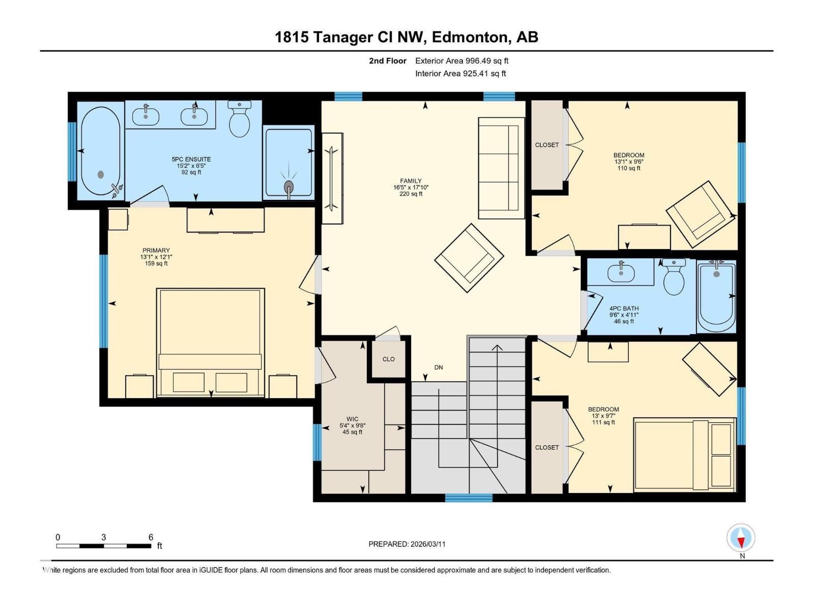 | Family room | Upper Level | 5.01m x 5.43m | — |