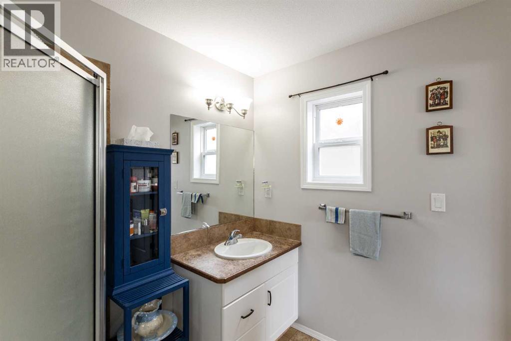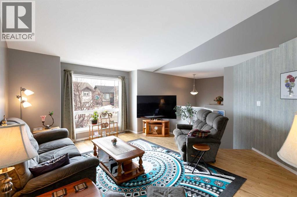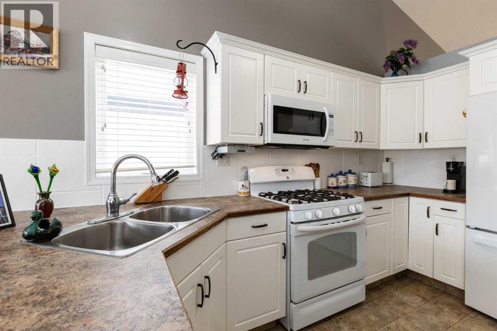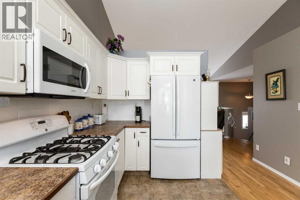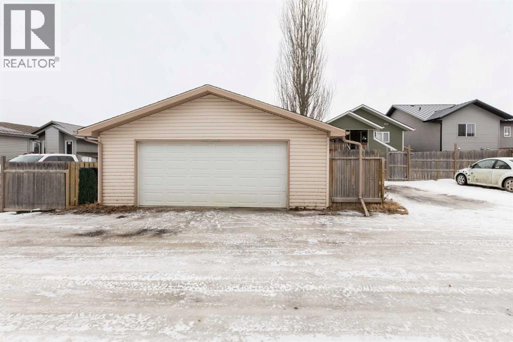 Welcome to this beautifully maintained bi-level in the growing community of Penhold, offering a functional layout, thoughtful updates, and excellent value. From the moment you arrive, the covered front porch sets the tone—perfect for morning coffee or unwinding at the end of the day.Step inside to a bright and inviting main floor featuring vaulted ceilings that enhance the sense of space and natural light. The kitchen is both practical and welcoming, complete with a pantry and adjoining dining area, making everyday living and entertaining effortless.The primary bedroom is privately located at the back of the home and features a spacious ensuite, creating a comfortable retreat. A second bedroom and full bathroom complete the main level.The recently developed basement adds impressive additional living space, highlighted by large windows and a generous recreation area. You’ll also find a third bedroom, full bathroom, and a versatile office that could easily function as a fourth bedroom, gym, or hobby space.Outside, enjoy a fully fenced yard with plenty of room for kids and pets, along with a rear deck ideal for relaxing or hosting. The double detached garage provides ample parking and storage.Situated in a quiet location within walking distance to local amenities, this home offers the perfect blend of small-town charm and everyday convenience. (id:63190)