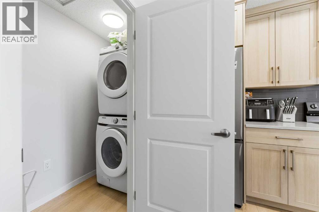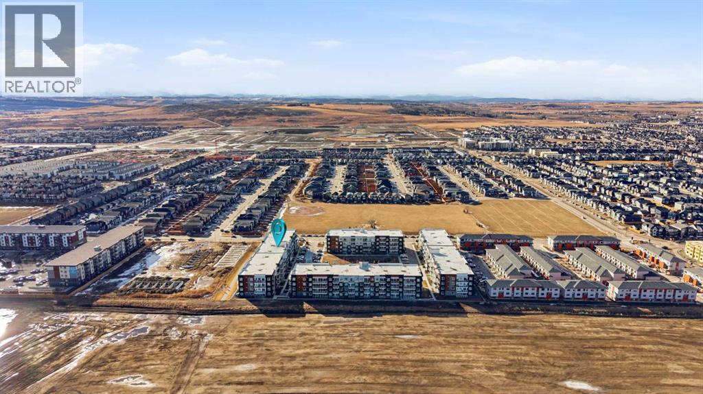 Welcome to modern living in the growing community of Belmont! This beautifully designed 2-bedroom, 2-bathroom condo, Cedarglen built in 2024, offers a bright, functional layout with 9’ ceilings and a clean Scandinavian-inspired palette in a stylish low-rise building.Step inside to discover durable LVP flooring throughout and a thoughtfully designed kitchen featuring quartz countertops, sleek cabinetry, a stainless steel undermount sink with pull-down faucet, stainless steel appliances, and a spacious island with breakfast bar seating that’s perfect for casual dining, meal prep, or entertaining. The kitchen opens to an inviting dining and living area, where large Low-E triple-glazed windows bring in plenty of natural light while enhancing energy efficiency. Sliding doors lead from the living room to your private balcony with clear glass railings, an unrestricted view and a BBQ gas line—an ideal spot to relax and enjoy fresh air year-round.The well-planned layout offers two spacious bedrooms and two full bathrooms. The primary bedroom features its own 4-piece ensuite, while the second bedroom sits conveniently next to another 4-piece bathroom complete with a soaker bathtub. An in-suite laundry room adds everyday convenience.Additional highlights include titled underground parking, assigned storage, sound-reducing membrane beneath LVP and LVT surfaces, a fresh air system for enhanced comfort, and elevator access. This pet-friendly and rental-friendly building offers flexibility for homeowners and investors alike.Located in the vibrant and rapidly developing Belmont community, this home is close to parks, amenities, and everyday conveniences, with exciting upcoming developments including a public library, YMCA, shopping plaza, and the proposed 210 Avenue SW LRT station on the Red Line—approximately a 5-minute drive away (buyer to verify all future development plans). These planned amenities are expected to further enhance the long-term property value and help build equity.Whether you're a first-time buyer, downsizer, or investor, this move-in ready condo is a fantastic opportunity in a growing area. Book your private showing today and experience everything Belmont living has to offer! (id:63190)