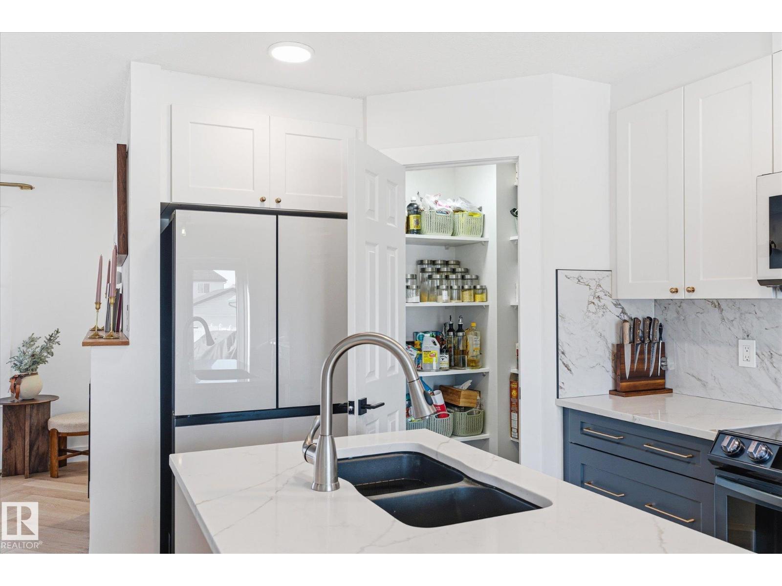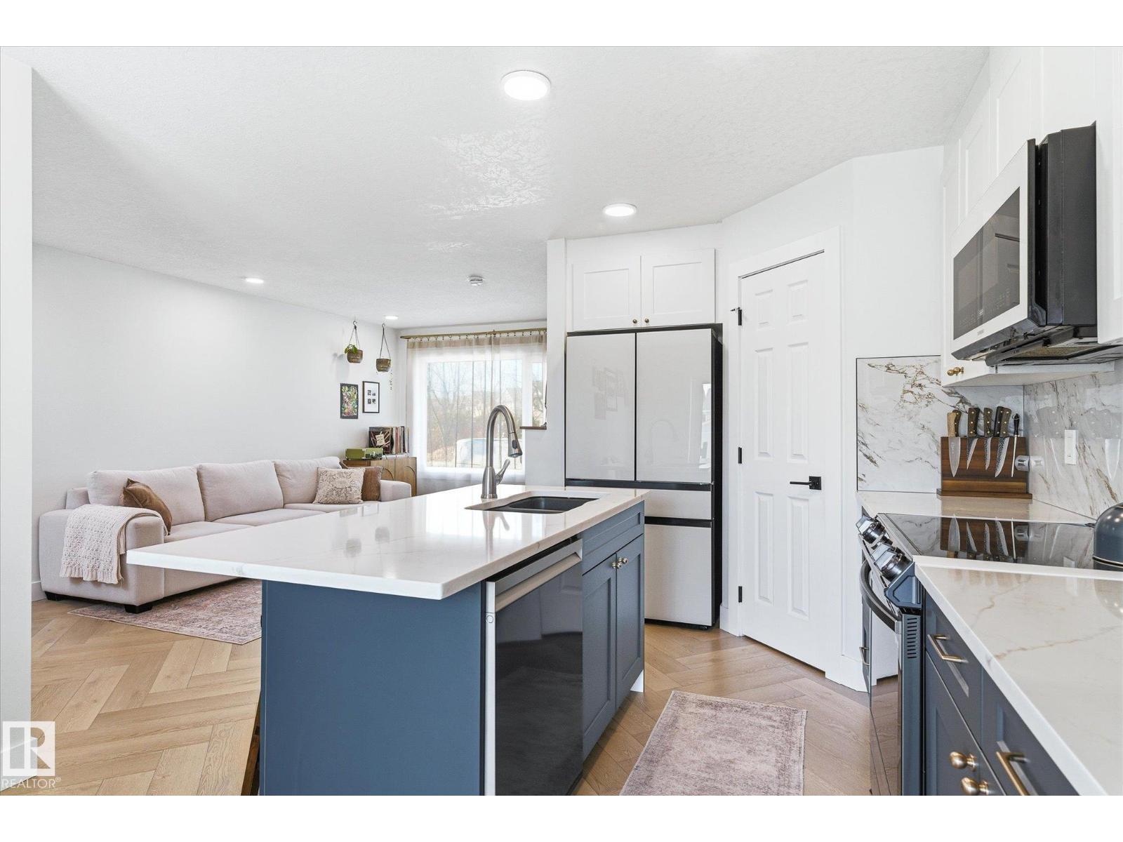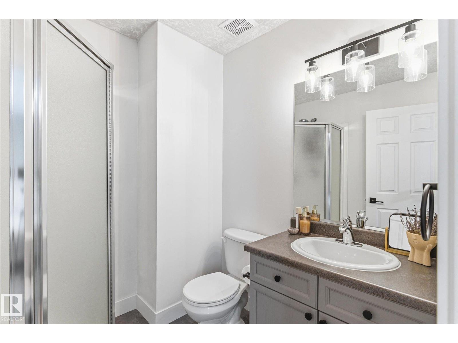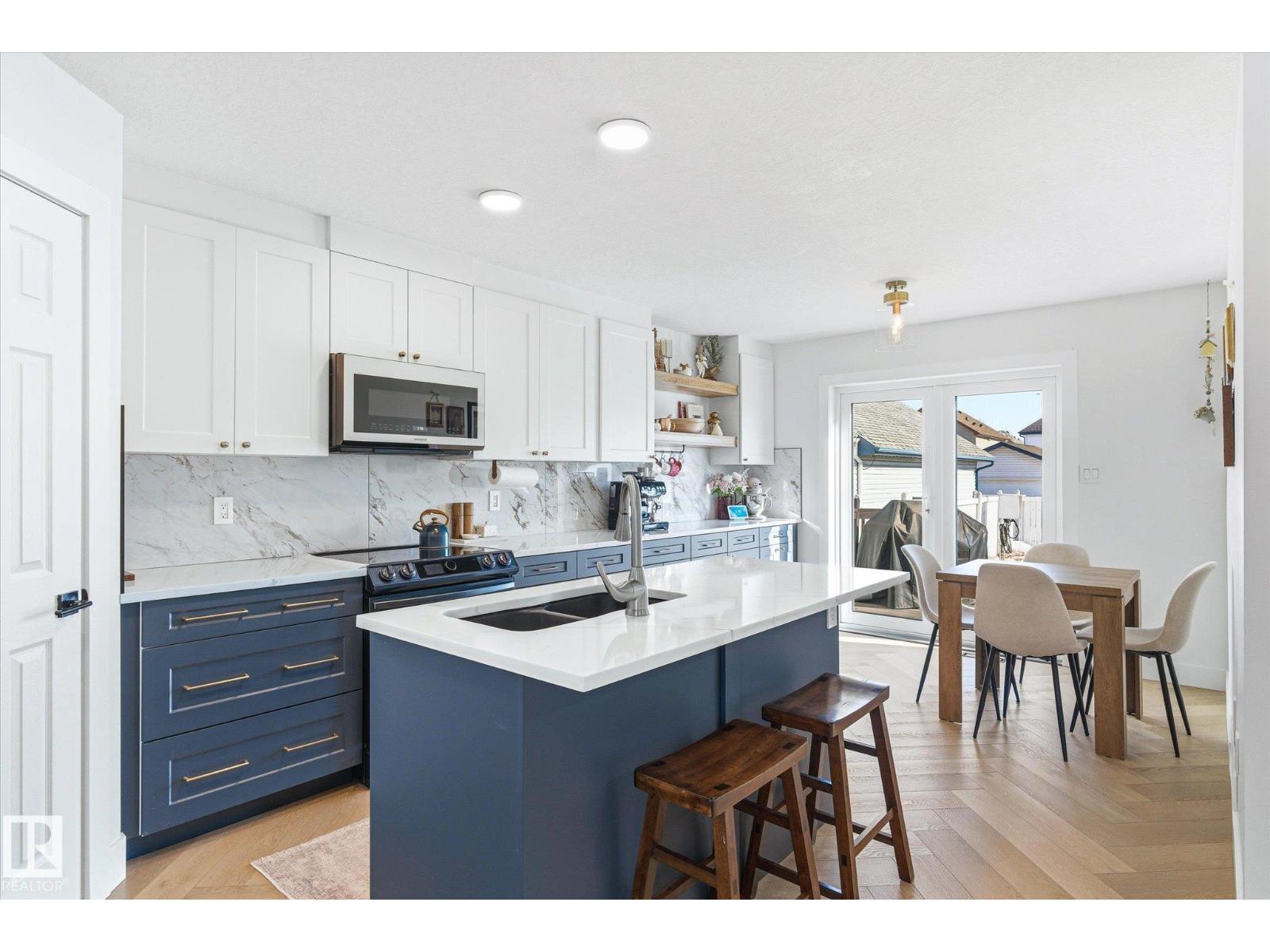 Welcome to this well-maintained 2-storey home on a quiet street in South Terwillegar. Offering 3 bedrooms, 3.5 bathrooms, and over 1,150 sq. ft., this bright and inviting home is sure to impress. The main floor features a spacious living room and updated kitchen with new cabinets, quartz countertops, upgraded island, and new appliances. Upstairs you’ll find 2 generous bedrooms, including a large primary suite with walk-in closet and 3-piece ensuite. The fully finished basement adds valuable living space with a 3rd bedroom, family room, 3-piece bathroom, and plenty of storage. Recent upgrades include 3-pane European windows throughout, patio door, new shingles, custom vinyl flooring, upgraded ceiling texture, light fixtures, hardware, and more. Enjoy the fenced yard, back lane access, parking pad/RV parking, and convenient location close to schools, parks, transit, Terwillegar Rec Centre, and Windermere amenities. (id:63190)