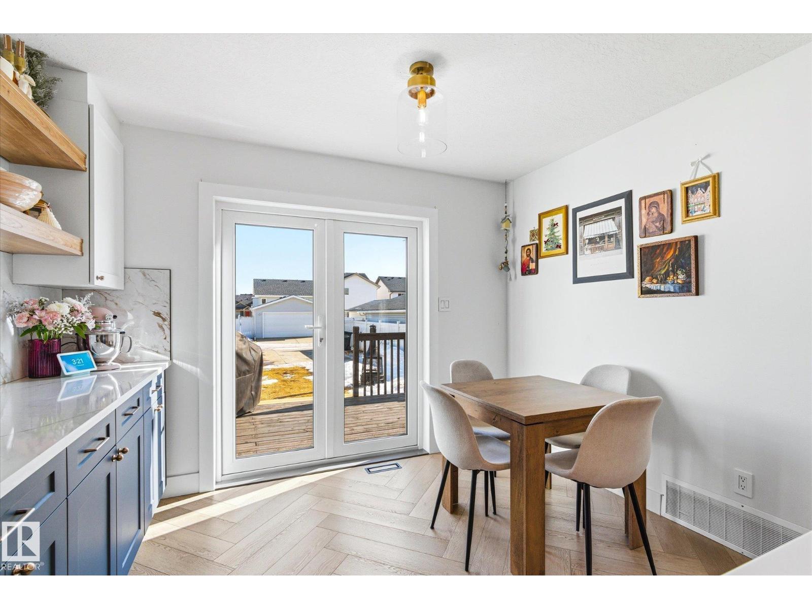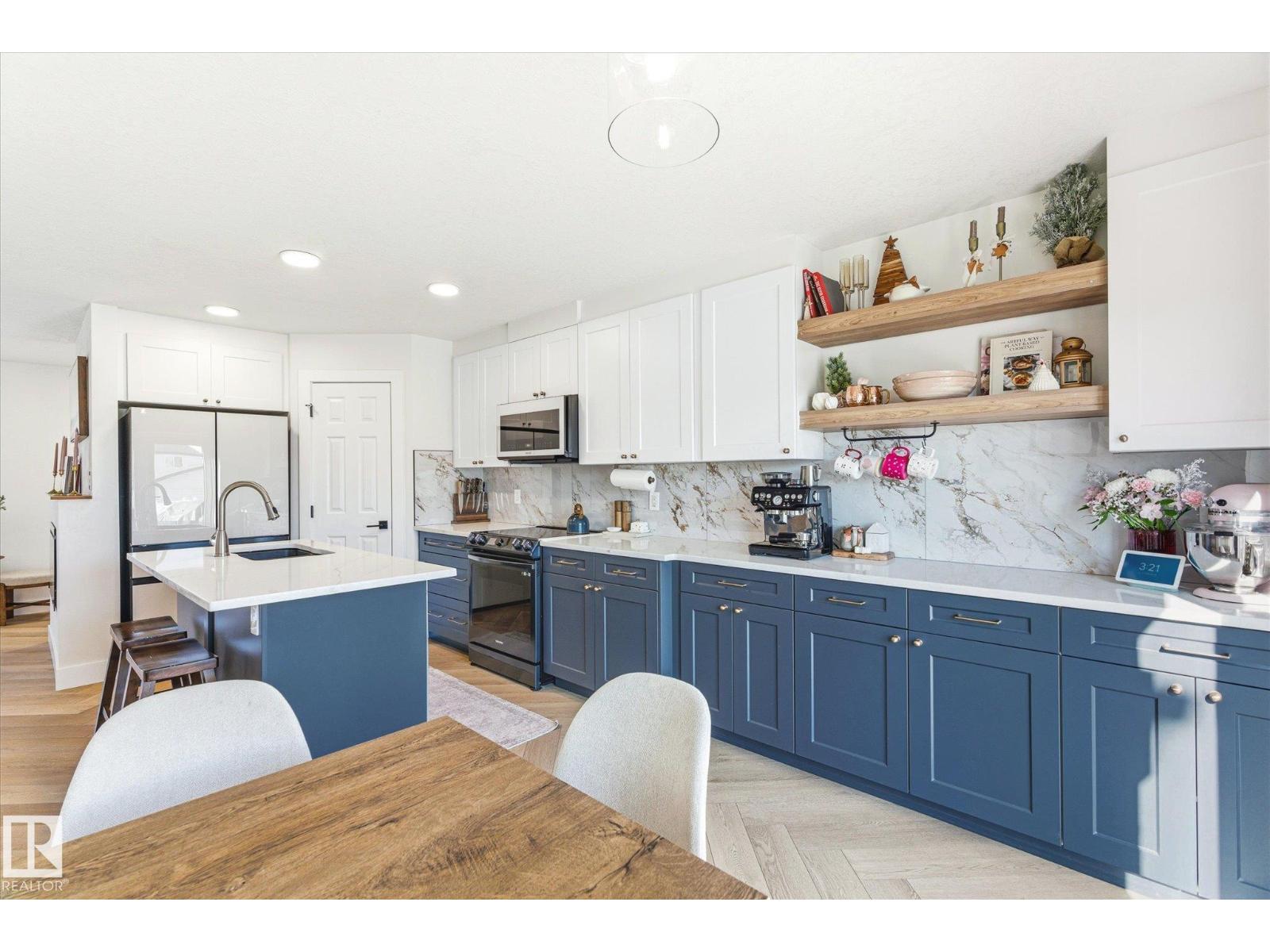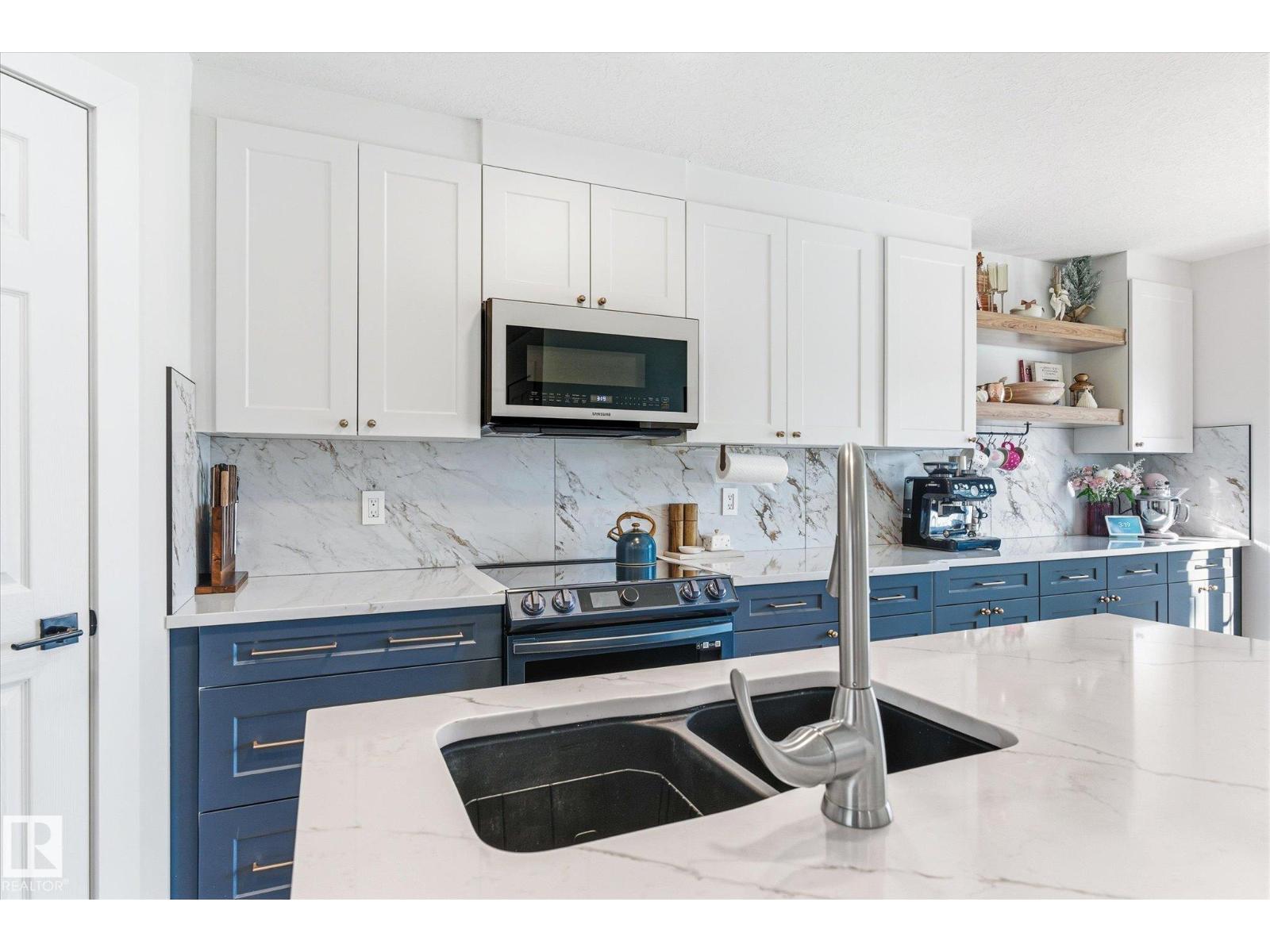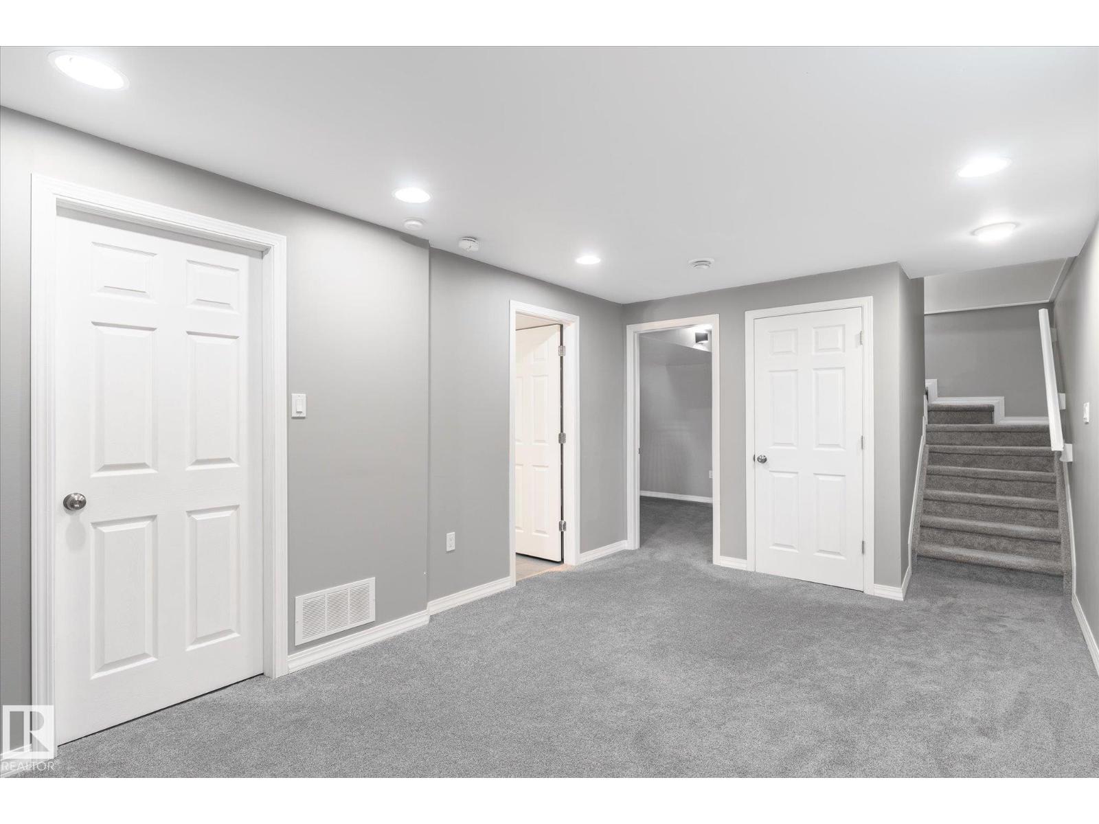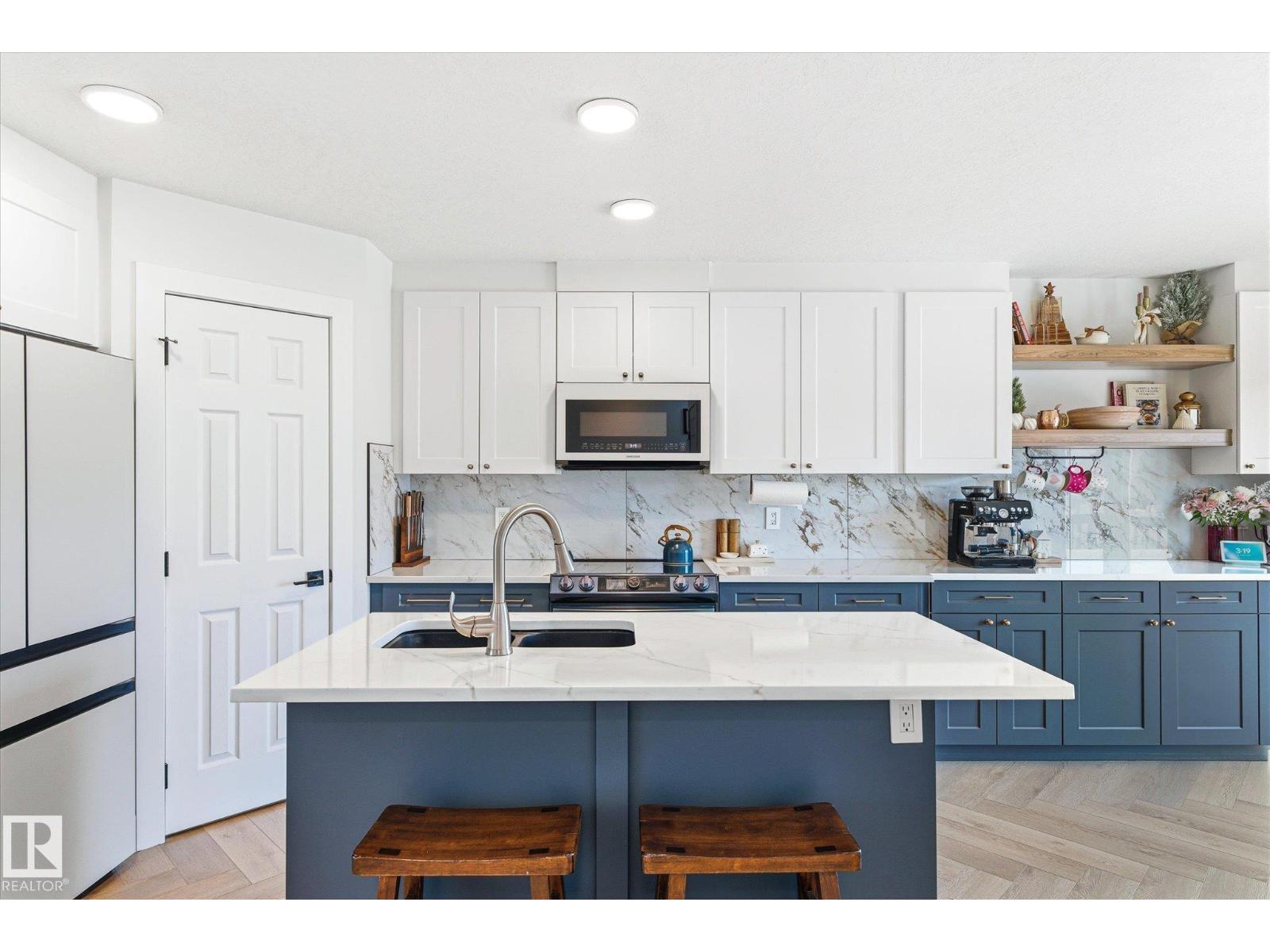 Welcome to this well-maintained 2-storey home on a quiet street in South Terwillegar. Offering 3 bedrooms, 3.5 bathrooms, and over 1,150 sq. ft., this bright and inviting home is sure to impress. The main floor features a spacious living room and updated kitchen with new cabinets, quartz countertops, upgraded island, and new appliances. Upstairs you’ll find 2 generous bedrooms, including a large primary suite with walk-in closet and 3-piece ensuite. The fully finished basement adds valuable living space with a 3rd bedroom, family room, 3-piece bathroom, and plenty of storage. Recent upgrades include 3-pane European windows throughout, patio door, new shingles, custom vinyl flooring, upgraded ceiling texture, light fixtures, hardware, and more. Enjoy the fenced yard, back lane access, parking pad/RV parking, and convenient location close to schools, parks, transit, Terwillegar Rec Centre, and Windermere amenities. (id:63190)