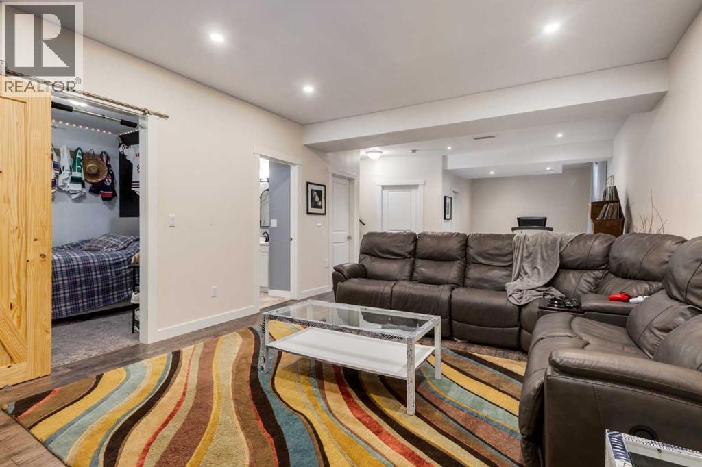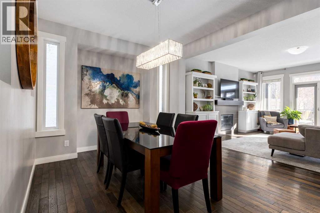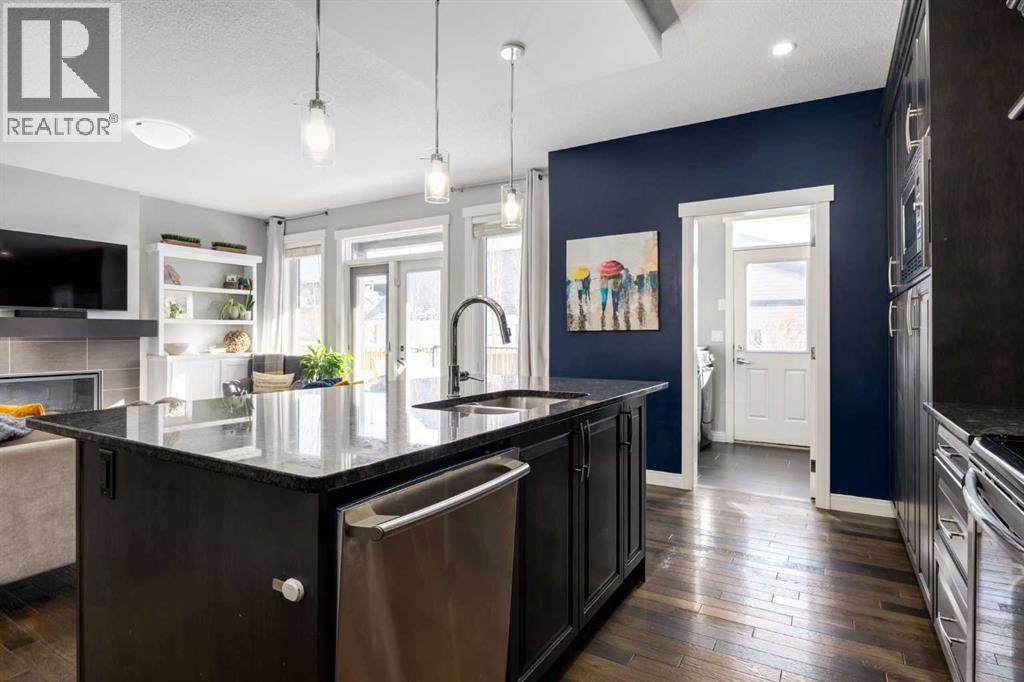 Impeccably finished from top to bottom, with thoughtful upgrades, elegant spaces, a private backyard retreat, AND an OVERSIZED 24x22 Detached Double Garage! From the moment you step inside off the covered front porch , a welcoming tile Foyer leads you into a bright main floor where rich hardwood floors and elegant design details create a warm, inviting atmosphere. Just off the front entrance is a private Home Office with French doors and bright windows —perfect for working from home or a quiet study space. The Dining area is extremely spacious and features a striking chandelier, flowing seamlessly into the Living Room and Kitchen. Natural light floods the Living Room, with a cozy gas fireplace with a mantle, framed by two bookcase cabinets. French doors open to the partially covered back deck, creating a natural connection between indoor and outdoor living.The Kitchen is perfectly designed for both everyday life and entertaining, showcasing granite countertops, full-height cabinetry, SS appliances and a large island designed for gathering. A convenient tiled Laundry & Mudroom just off the kitchen offers a folding counter, additional cabinetry, and built-in bench with hooks, keeping coats and bags neatly organized. Completing this open-concept main level is a 2-pc Bathroom with pedestal sink & an opening window. Ushered upstairs by the wide carpeted, modern staircase you’ll find a spacious Bonus Room filled with sunshine, The Primary retreat boasts vaulted ceiling, a cozy window seat, and a walk-in closet. The 5-pc Ensuite is a true spa-inspired space featuring in-floor heating, a stand-alone soaker tub beneath the big window, separate walk-in corner shower, dual sinks with granite counters, and tons of cupboard / additional drawer storage. Central A/C and UV window protection has been added to enhance comfort and efficiency in this home. Also upstairs are 2 more spacious Bedrooms, an organized Linen Closet, and a beautifully finished 4-pc Bathroom with granite coun ters and tile flooring. The FULLY FINISHED BASEMENT expands your living space with impressive 9ft ceilings, a massive Family Room/ Recreation area, extra space for your Home Gym, a FOURTH BEDROOM, a stunning 3-pc Bathroom with an O/S walk-in shower and great vanity storage, AND loads of extra storage options. Outside, the beautifully landscaped backyard feels like a private oasis with mature trees & gardens, a partially covered deck for relaxing or entertaining, and a stamped concrete patio and pathway to the Garage. Last but certainly not least - the oversized 22'x24' Double Detached Garage with PAVED LANE ACCESS! Located in one of Airdrie’s most sought-after communities, this home is just steps from parks, pathways, schools, and the many amenities of Coopers Promenade. Don’t miss the chance to call this luxurious property HOME, book a private showing TODAY. (id:63190)