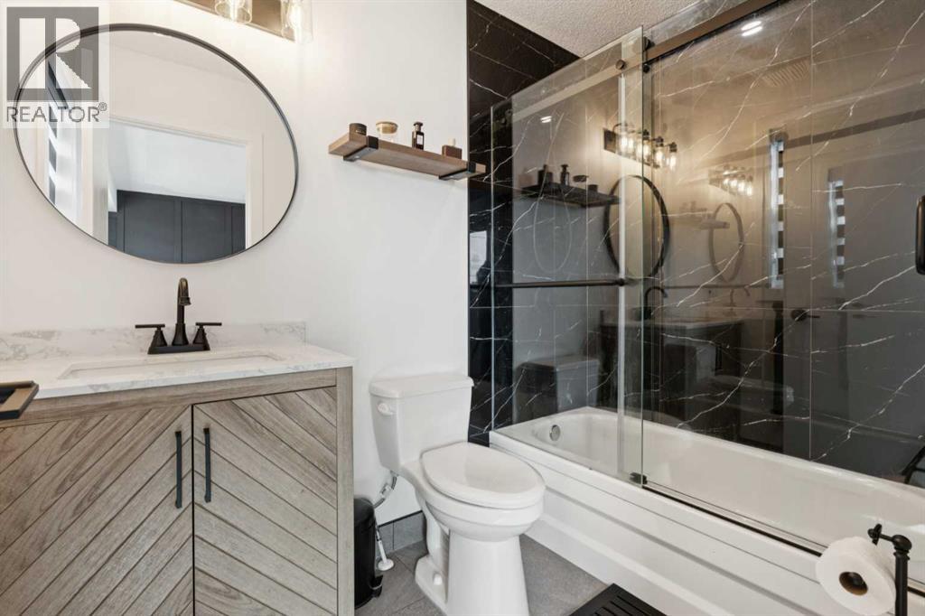 Beautifully Renovated Walk-Out Bungalow with Double Attached Garage in Martindale! Welcome to 194 Martinglen Way NE, a move-in ready home offering modern upgrades, a functional layout, and over 2,200 sq ft of total developed living space in the highly convenient community of Martindale, Calgary.The main living area features a higher vaulted ceiling, creating a bright and open atmosphere filled with natural light. The main floor includes 3 bedrooms and 2 full bathrooms, including a private ensuite in the primary bedroom.The home has been extensively renovated, highlighted by a stunning modern kitchen with new cabinetry, new appliances, new countertops, and a large island with waterfall countertops—perfect for everyday living and entertaining. The main floor also features new 8mm luxury vinyl plank flooring, renovated bathrooms, new baseboards and casings, and a newer fireplace that creates a warm and inviting living space.The fully developed walk-out basement adds tremendous flexibility and includes an additional bedroom, a den, and a kitchenette, making it ideal for extended family, guests, or potential rental use.This property also offers important mechanical and exterior upgrades, including Poly-B water line replacement, newer furnace, newer hot water tank, central air conditioning, newer roof, newer rear windows, freshly painted exterior stucco, newer garage door + smart garage door opener and new gutters, providing peace of mind for future homeowners.Located on a quiet street in Martindale NE Calgary, the home is close to schools, parks, shopping, public transit, and major roadways, making it an excellent opportunity for families, first-time buyers, or investors looking for a renovated bungalow with income potential.If you are searching for a renovated bungalow with a walk-out basement and separate entrance in Calgary, this home is a must-see. (id:63190)