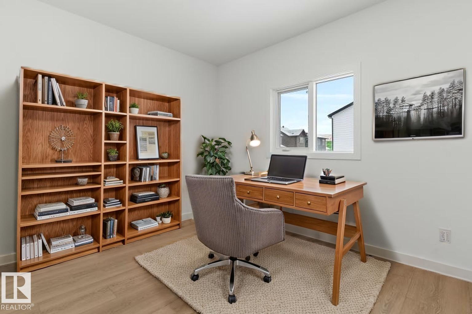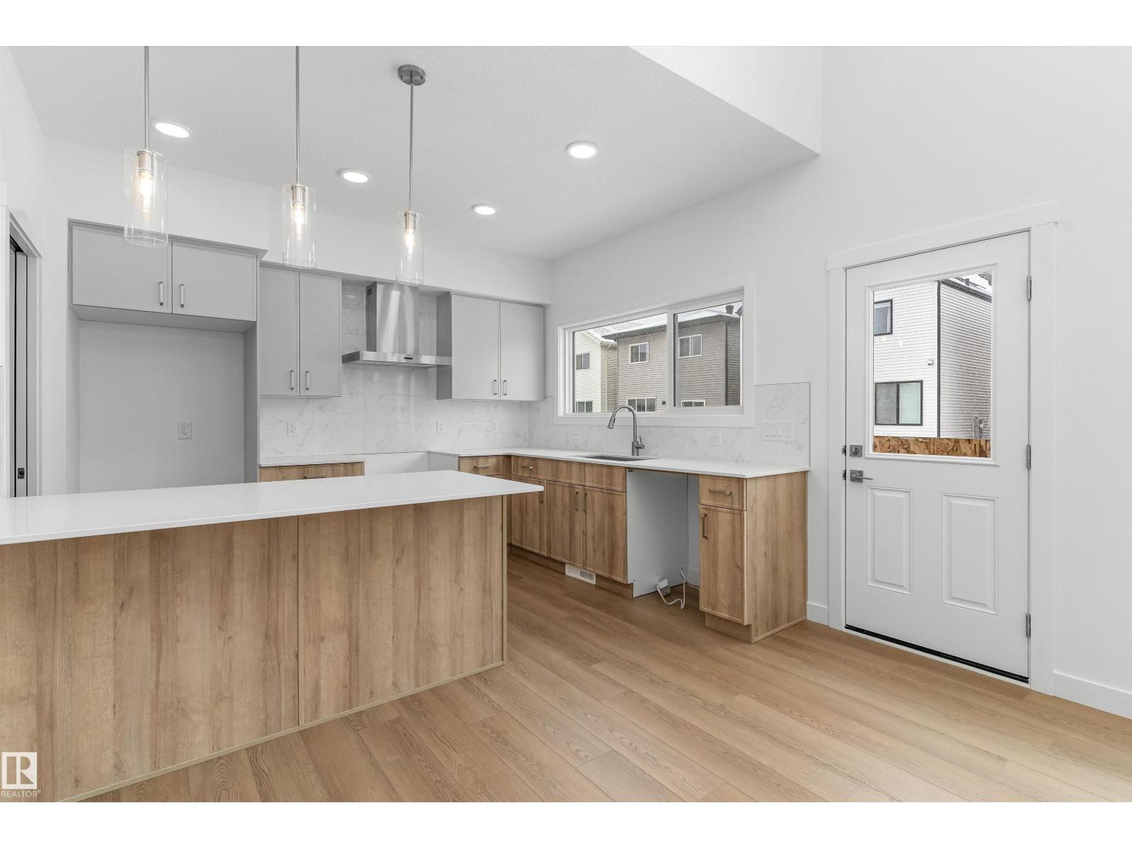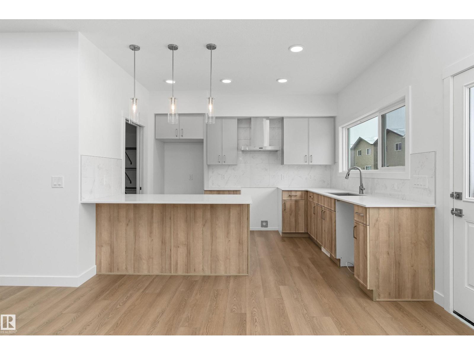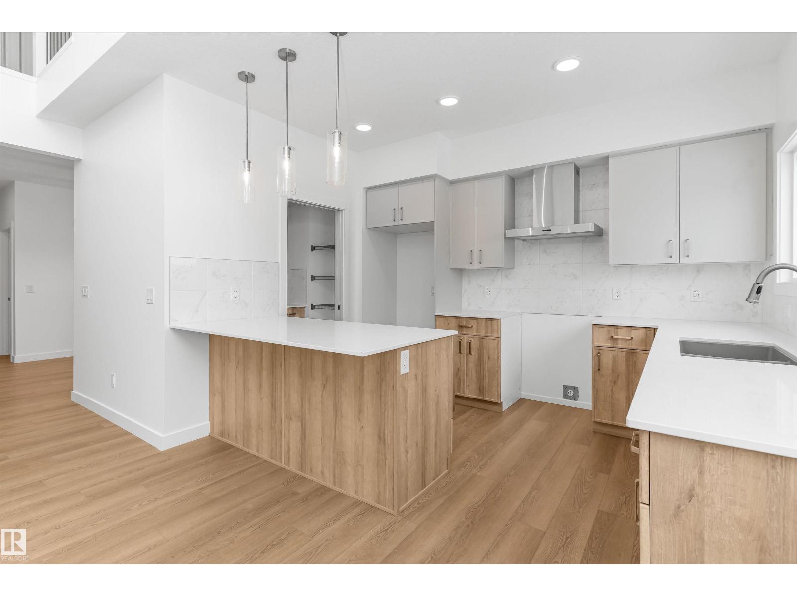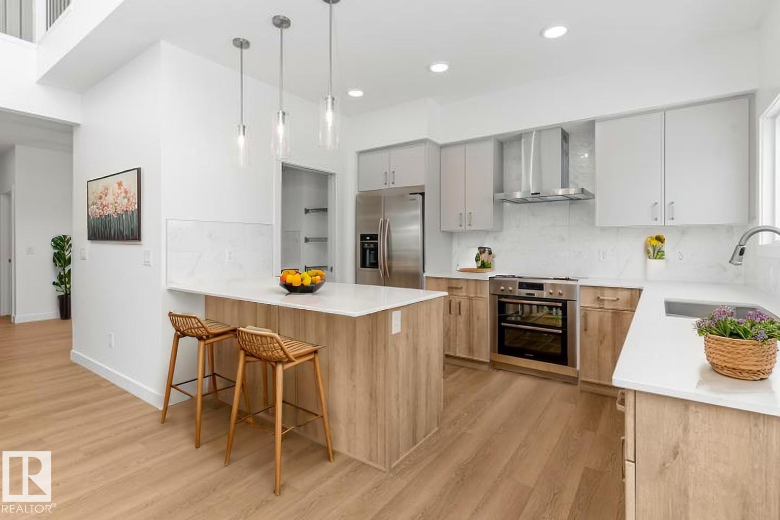 Built by Sterling Homes, this front-attached home in Rivers Edge offers exceptional space, flexibility, and upscale finishes—ideal for large or multi-generational families. Triple pane windows and 9’ ceilings create a bright, open main floor with a front bedroom and full 3-piece bath. The kitchen is paired with a fully equipped spice kitchen and features quartz countertops, a large island, chimney hood fan, built-in microwave, and 48” pantry. The great room showcases a stunning 17-ft open-to-below ceiling, electric fireplace, and oversized backyard-facing windows. Upstairs offers two primary suites with private ensuites, plus a bonus room, upper-floor laundry, full bath with double sinks, and another bedroom. Finished with luxury vinyl plank flooring, upgraded railings, side entrance, garage floor drain, and basement rough-ins for future development. (id:63190)