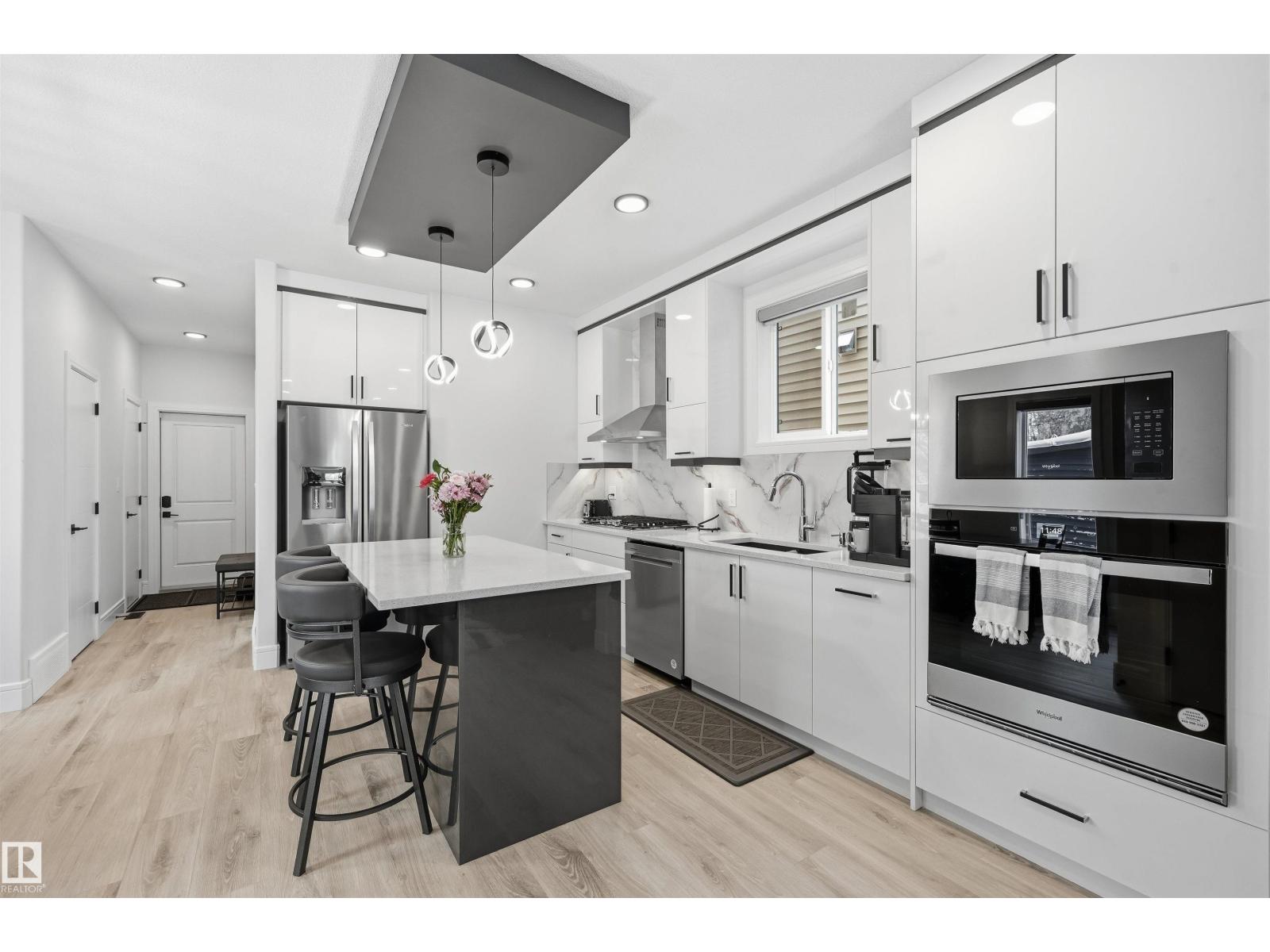 Better than NEW- turn key w/a LEGAL SUITE to help w/the mortgage or perfect for a relative or a live in nanny. Quiet street steps to the park in a mature well located neighborhood. Barely lived in, modern open concept plan emphasizes comfort & lifestyle. 2300 sf ttl living space. Sleek Chef’s Kitchen opens to the living & dining area. S/S appliances incl a gas range, wall oven & counter depth cabinetry. Quality epitomized, NOT your usual average built 2 sty w/attention to detail & craftsmanship w/the best materials elevating this homes uniqueness. High ceilings incl 9’ upstairs & AC. Lots of natural light & contemporary color tones. Upstairs are 3 bedrooms, 2 baths incl a spa like ensuite. Lower level one bedroom suite is light & bright w/a gorgeous kitchen. Quality finished landscaping incl front artificial turf, poured sidewalks & a 23x21 garage. Newer fence. Conveniently located to the Misericordia Hospital, West Edmonton Mall, Downtown & the U of A. Lots of services, restaurants & shopping close by (id:63190)