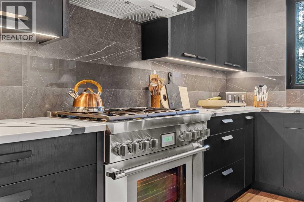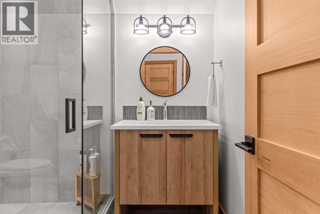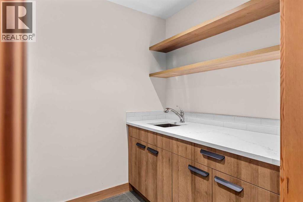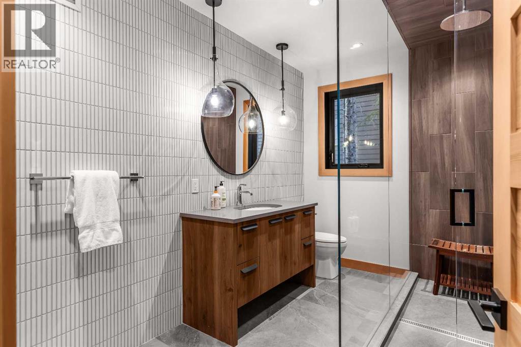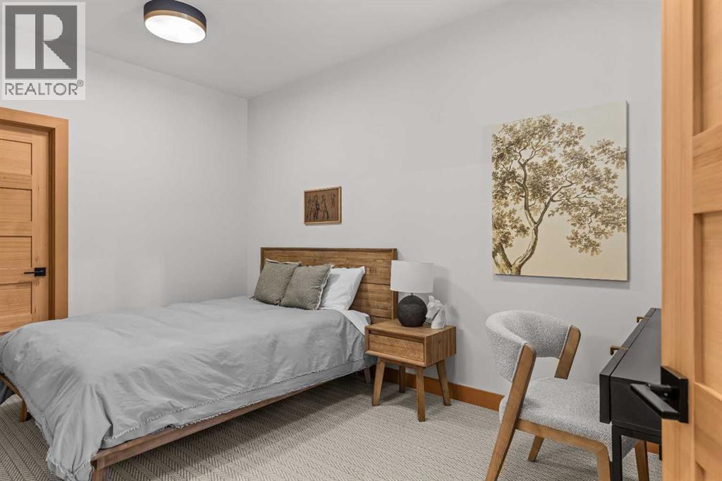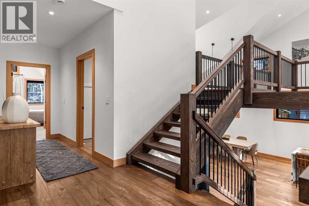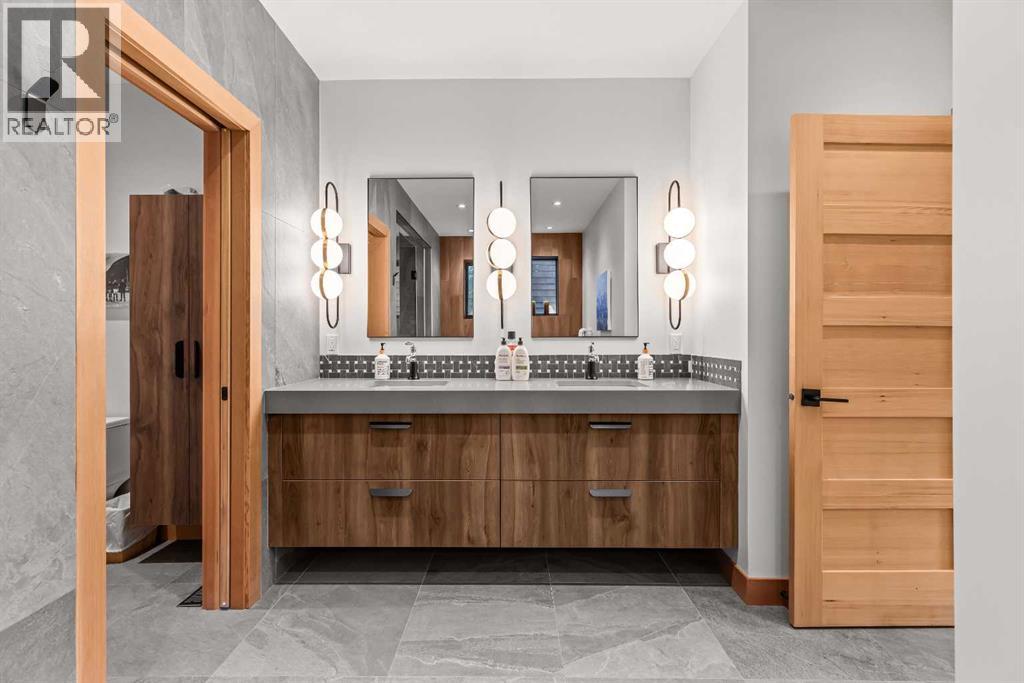 Constructed by Kidner Construction, this exceptional Silvertip near new residence blends refined mountain architecture with modern comfort, backing directly onto the 8th hole of the Silvertip Golf Course. Designed for both entertaining and large gatherings, the home features 5 bedrooms sleeping up to 14 guests, 4 bedrooms with private ensuites and a large bunk room with 2 sets of bunks. At the heart of the home, a dramatic timber-frame loft crowns the living space, creating a striking architectural focal point that complements the surrounding mountain setting.Expansive living areas open seamlessly to the outdoors, where a large main deck, two additional decks, and an expansive patio overlook the golf course and surrounding alpine landscape. Inside, the home is finished with triple-pane windows, Control4 whole-home automation, and carefully designed spaces that balance luxury, comfort, and performance.Additional lifestyle spaces include a family room, dedicated gym, and a fully outfitted garage with epoxy floors, providing both functionality and high-end finishing throughout. Offering just under 4,900 SF the home is thoughtfully distributed across multiple levels to provide excellent separation for family and guests. Located in the prestigious Silvertip community, this Kidner-built home combines exceptional craftsmanship with one of Canmore’s most sought-after golf course settings. Surrounded by world-class golf, mountain scenery, and the natural beauty that defines Silvertip, this property offers elevated mountain living in one of the Bow Valley’s most exclusive neighbourhoods. (id:63190)