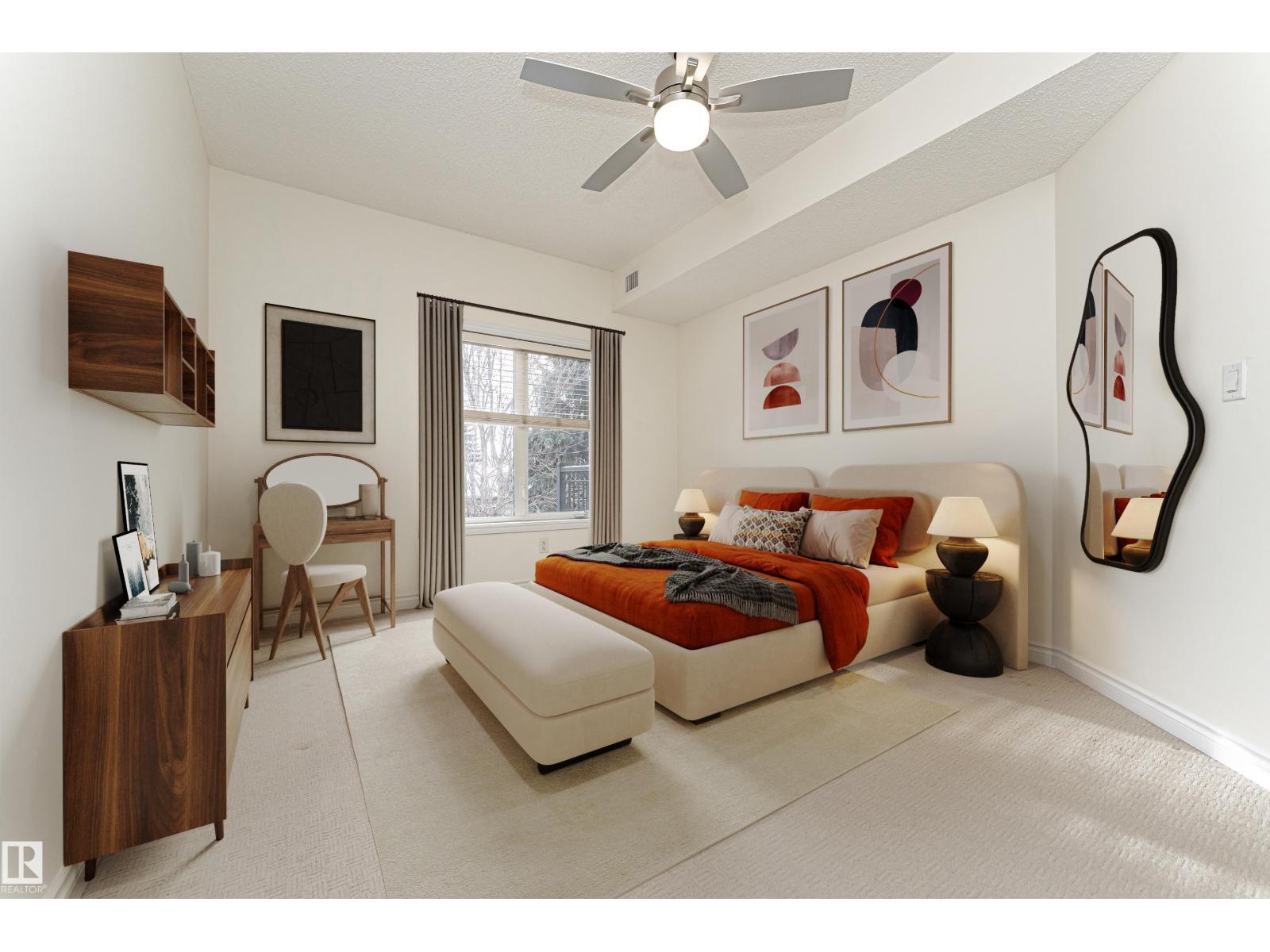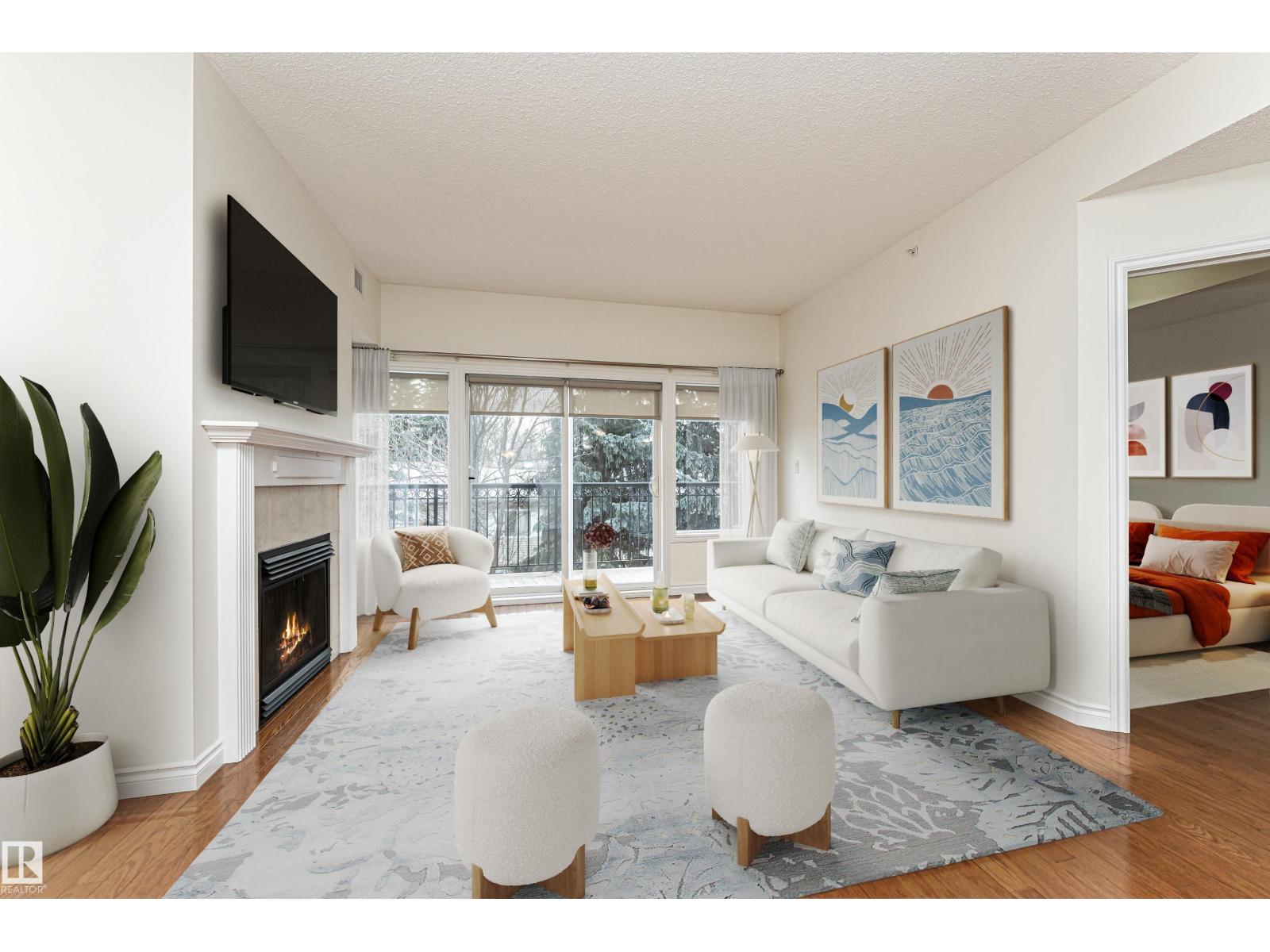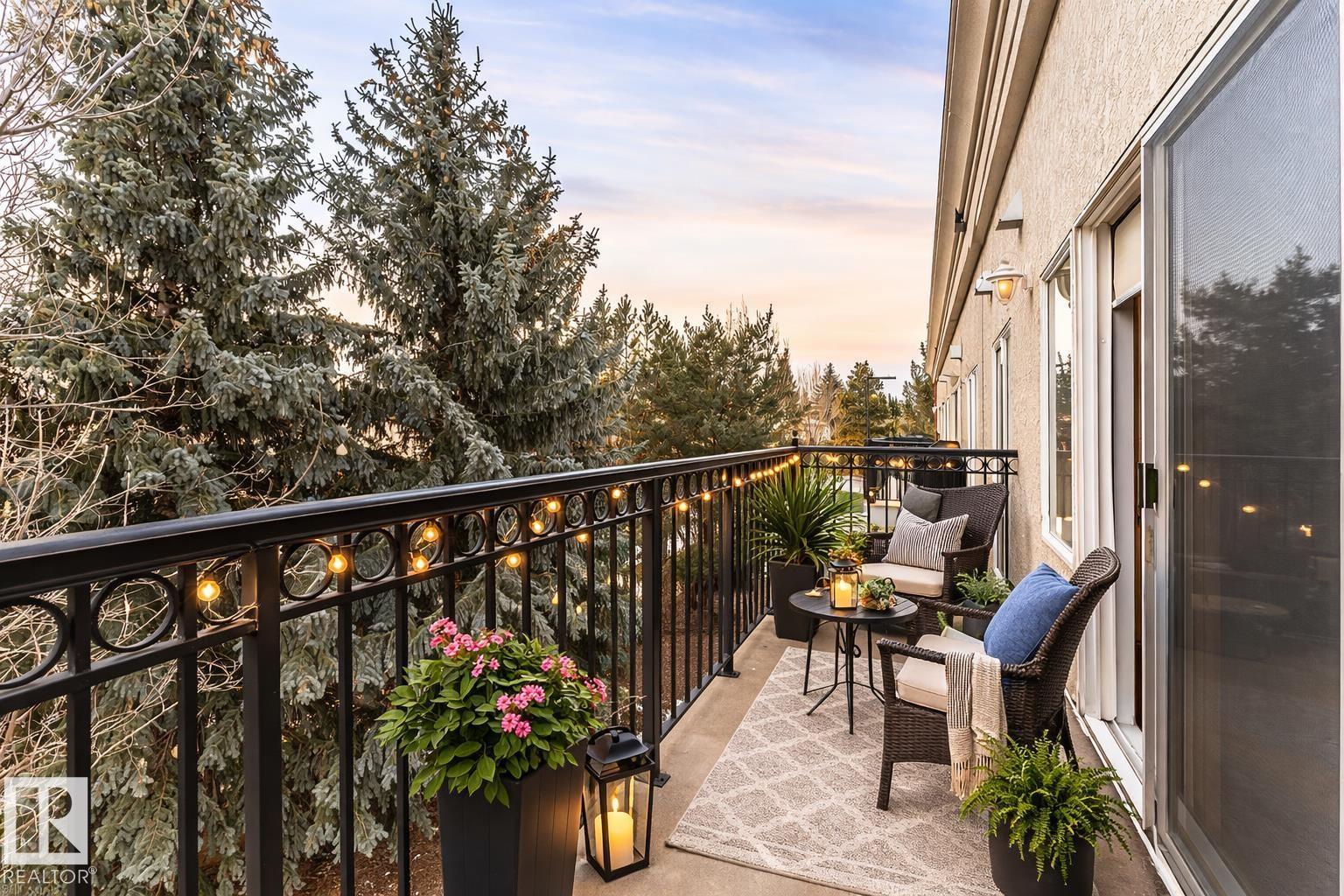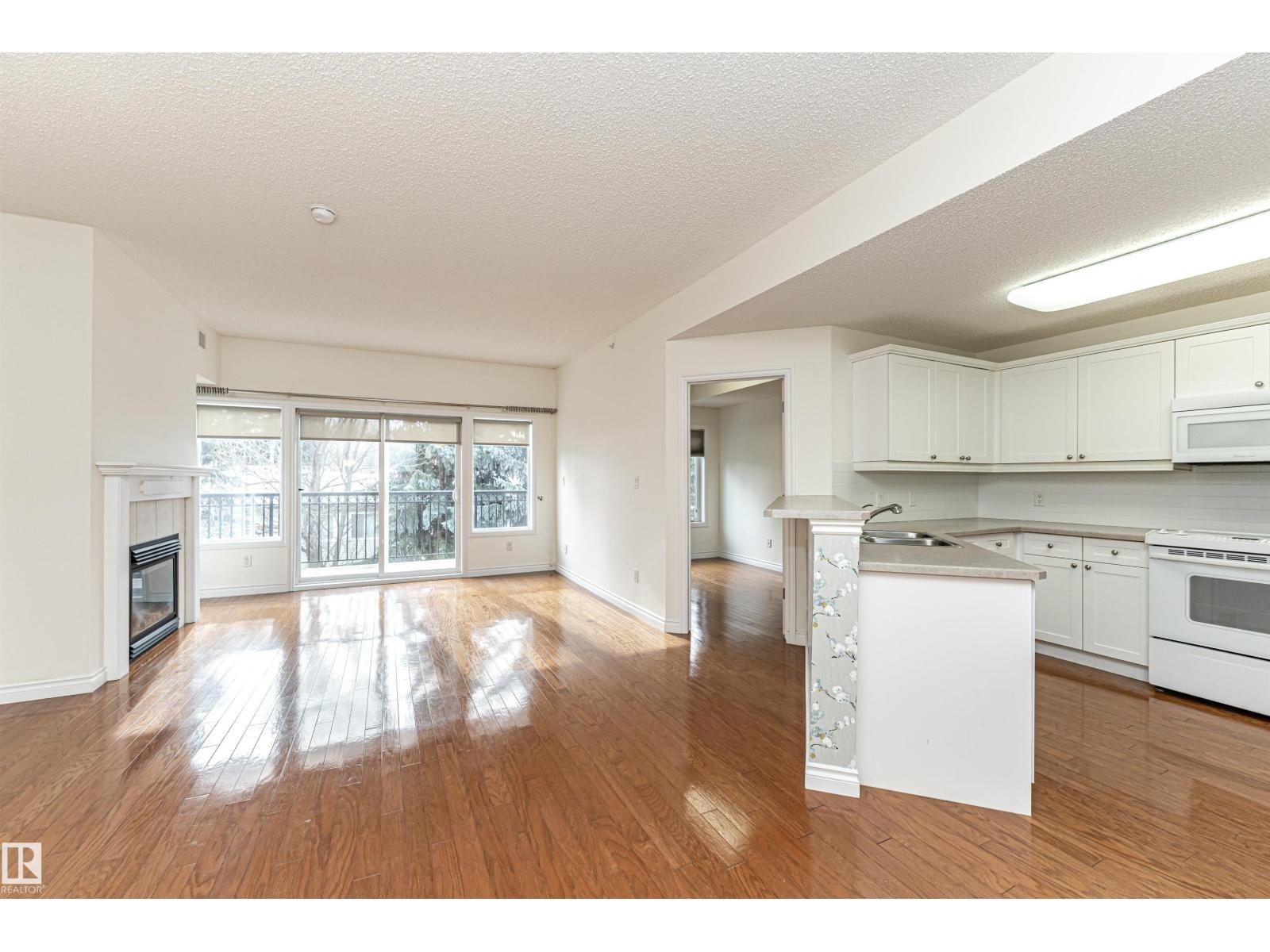 Imagine starting your day with a coffee on your top-floor balcony overlooking trees and greenspace, just steps from the Rose/Botanical Gardens, Kingswood Park and the Red Willow Trail system. Beautifully maintained by the original owner, this 2-bedroom, 1.5-bath condo offers a bright open design with hardwood flooring, a bright kitchen featuring modern white cabinetry, ample counter space and a new dishwasher, and a welcoming living room with gas fireplace and wall of windows that fill the space with natural light. The primary suite offers two closets and a spa-like ensuite with soaker tub and separate shower, while the second bedroom works perfectly for guests or a home office. Enjoy the convenience of in-suite laundry, same-floor storage and titled heated underground parking. Residents also enjoy exceptional amenities including a gym, library/billiards room, social spaces, gardens and community events in this well-managed complex. Easy, maintenance-free living in a fantastic location! (id:63190)