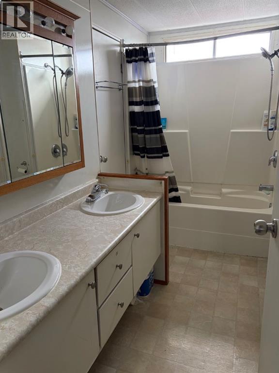 Renovated 2 bedroom, 1 bathroom mobile in High River Village. There is a covered veranda with plenty of room for outdoor patio furniture and a mudroom entry in addition to the main entry. This home has durable vinyl plank throughout. The living room had a door added onto it to accommodate a 3rd tenant, but can easily be removed to its original state. The updated kitchen and dining area is spacious and there is also a built-in serving hutch / coffee bar with additional storage and counter space. The 5pc bathroom has dual vanities, shower/tub combo, toilet and also houses the washing machine. It resides in between the 2 bedrooms and there is a "cheater door" into the primary bedroom. The primary bedroom has bifold doors into a good sized closet. Outside the yard is fully fenced and there is a garden shed for any additional storage needs. Pad rent is currently set at $956/mo and includes water/sewer, garbage removal, and snow plowing of common roadways. Move into this one and make it Your Home, Your Castle. (id:63190)
