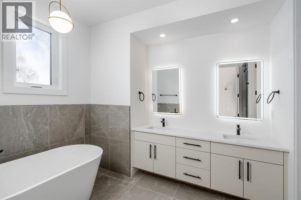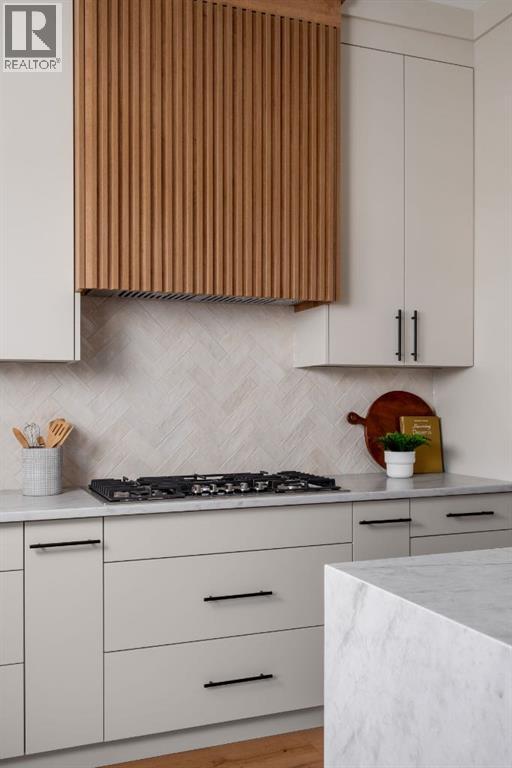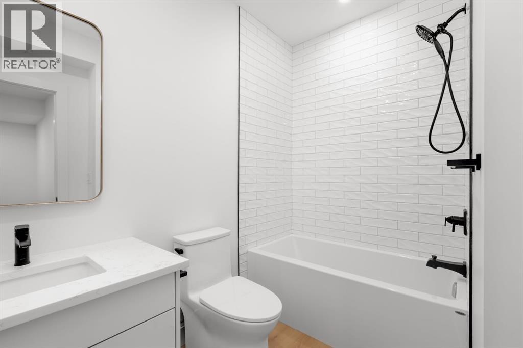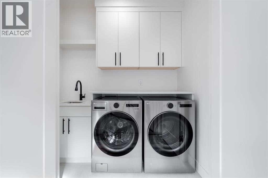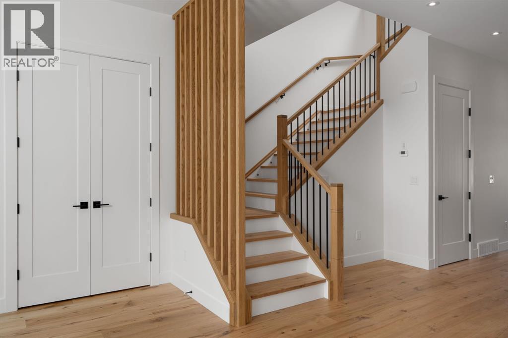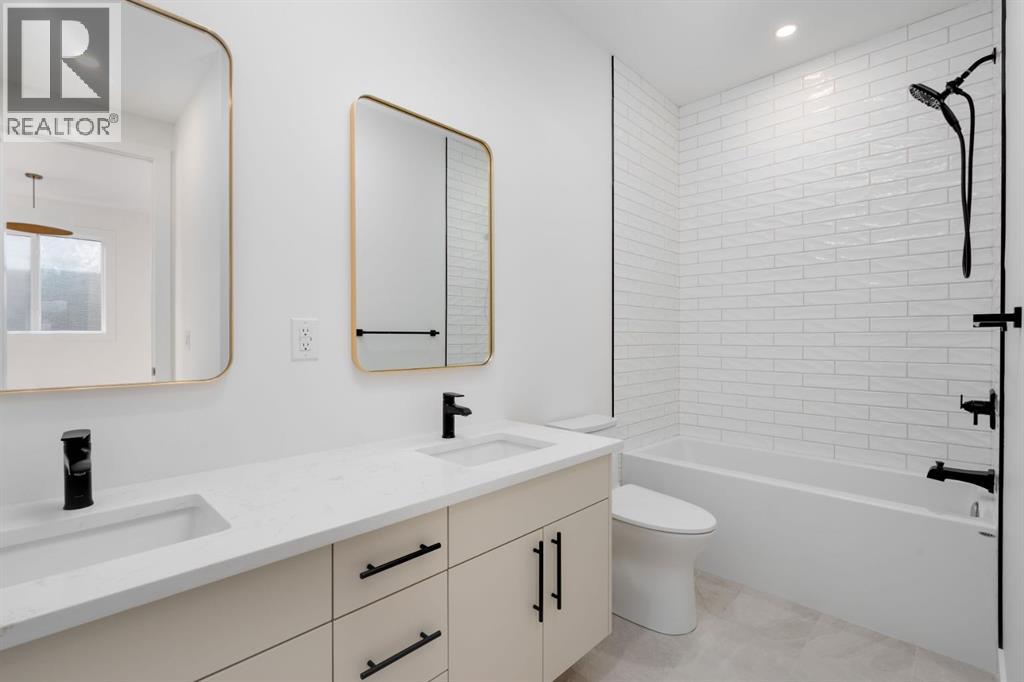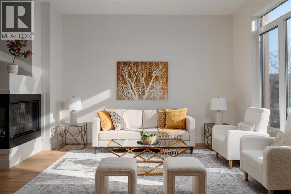 | Open House Saturday April 25th from 2-4pm and Sunday April 26th from 2-5pm | Welcome to The Killarney Collection in SW Calgary—thoughtfully crafted on a quiet street, this fully upgraded duplex infill offers a refined balance of scale, texture, and modern comfort. From the moment you arrive, the home makes a striking first impression with its sleek, contemporary exterior, pairing oversized triple-pane windows for abundant natural light with warm natural tones of true brick detailing and stucco accenting stands out. Inside, 10-foot main floor ceilings create a grand sense of arrival, setting the tone for the interior designer–curated colour palette carried throughout the home. Every detail has been intentionally explored, with the heart of the main floor anchored by a chef-inspired gourmet kitchen. Featuring a premium Bosch appliance package, fully custom-painted cabinetry, and an oversized waterfall granite island, the space effortlessly blends luxury with everyday functionality. A dedicated central dining off the kitchen offers a warm setting for gatherings, while the front living room provides a more intimate retreat, both areas are anchored by the full feature-wall gas fireplace—perfect for evenings spent unwinding. Thoughtful storage solutions are seamlessly integrated, including built-ins at the entry and a fully custom mudroom at the rear, ensuring every inch of space is maximized. Ascending to the upper level, subtle design moments continue to impress, with a full wood feature wall, custom stair lighting, and luxury wide-plank hardwood flooring flowing continuously throughout both the main and upper levels for a seamless transition.The oversized primary bedroom is a true sanctuary, showcasing a vaulted and peaked ceiling design with expansive windows that welcome morning light. The spa-inspired ensuite features a dual vanity, an expansive full-tile shower, and a calming, private retreat. Two additional bedrooms offer generous proportions, each complete w ith custom closet built-ins. The upper-level laundry room maintains the home’s commitment to efficiency and design, offering full cabinetry, a folding counter, side-by-side washer and dryer, and a laundry sink. A versatile work-from-home alcove completes the upper floor, easily functioning as a den or secondary living space.The lower level further extends the home’s flexibility with an oversized 2-bedroom, 1-bath legal suite (900+SQFT), centered around a spacious open kitchen—ideal for rental income, guests, or multi-generational living. A separate full laundry room, understair storage, and built-ins throughout each closet to ensure the same level of thoughtful design continues below.Perfectly positioned close to inner-city Calgary, recreation centres, shopping, and public transit, this Killarney residence offers a timeless blend of form and function—designed to live beautifully today and adapt effortlessly for tomorrow. (id:63190)