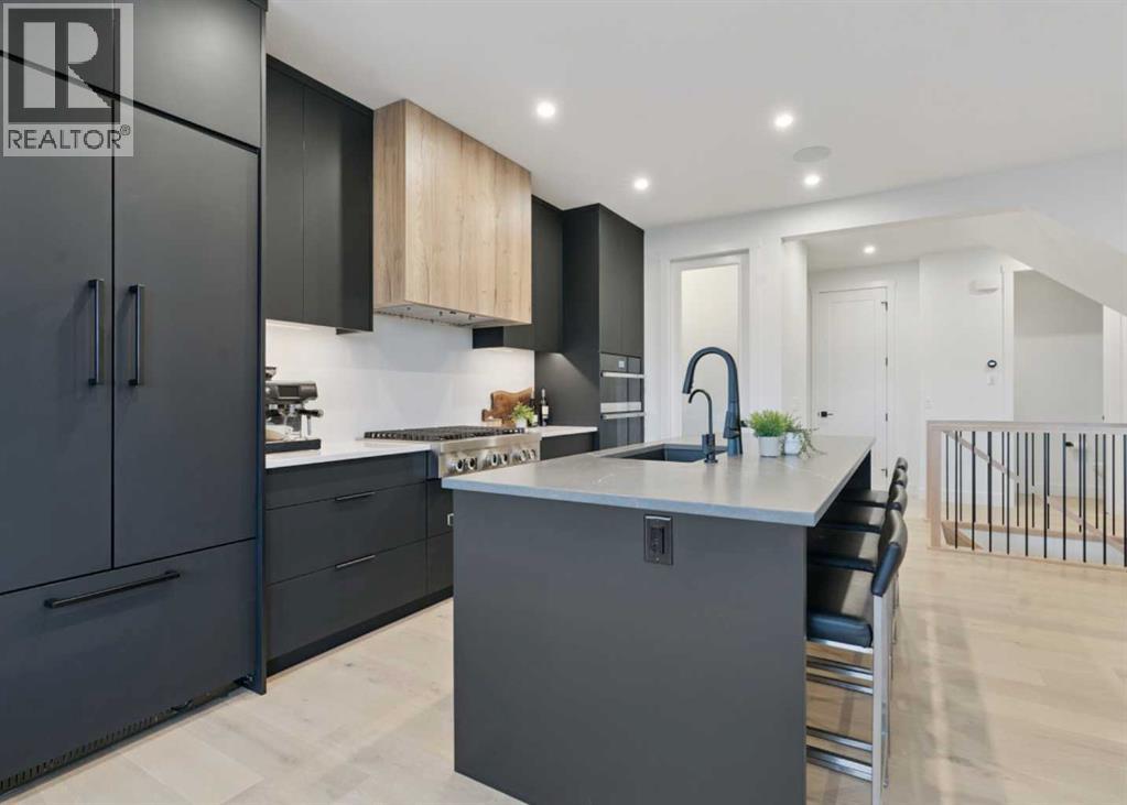 Welcome to this thoughtfully designed 2024-built, 1,975 ft² LIKE-NEW home offering 4 bedrooms, 4 bathrooms, and finished with PREMIUM UPGRADES throughout. The striking kitchen features matte black cabinetry, a matte quartz island, JennAir appliances including an integrated refrigerator, and a sleek modern aesthetic that anchors the main living space. Warm hardwood floors run throughout the home, including the staircase, creating a seamless and elevated feel.The inviting living room is centred around an oversized gas fireplace with a maple mantle and showcases expansive green views that stretch as far as the eye can see. Built-in speakers throughout the home add to the comfortable and modern living experience.Upstairs, the second floor offers a bonus room, two additional bedrooms, and a beautifully appointed five-piece ensuite in the primary retreat featuring a floating double vanity and refined finishes. The laundry room is thoughtfully designed for convenience with access from both the primary walk-in closet and the main hallway.The fully finished basement features impressive 10-foot ceilings, plush carpet, an additional bedroom, and a four-piece bathroom, creating the perfect extension of living space.Outdoor living is equally impressive on this premium lot with a covered composite deck backing onto green space, where a back gate provides direct access to the walking path and gorgeous morning sunrises over the golf course.Additional highlights include power blinds throughout, reverse osmosis water system, central air conditioning, and a water softener. The garage is equally impressive with a 10-foot door, 12-foot ceilings for additional storage, and an EV charger already installed. An aggregate driveway and walkway enhance the home’s beautiful curb appeal. Ask your agent for a full list of upgrades and features! (id:63190)