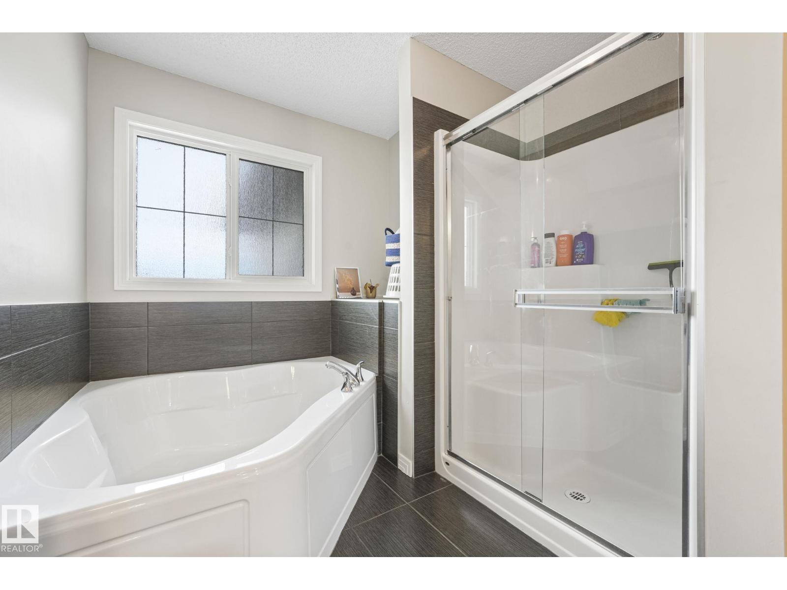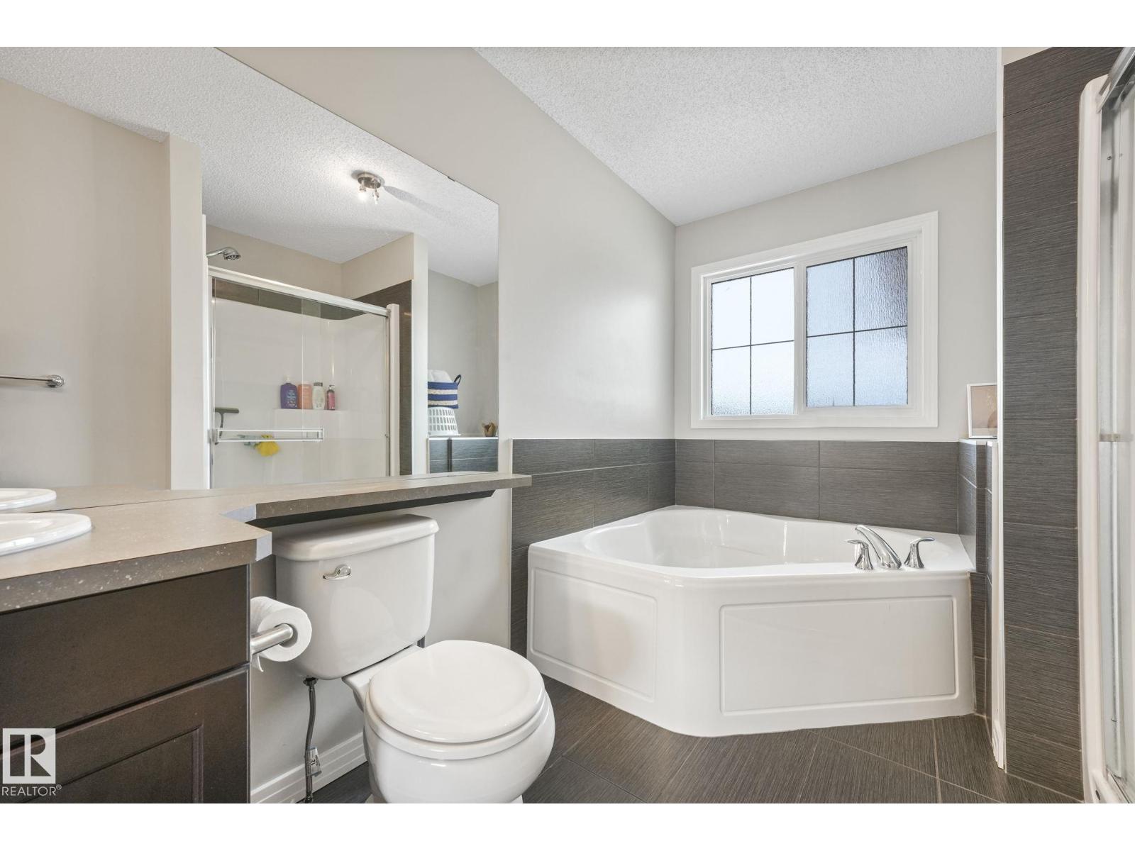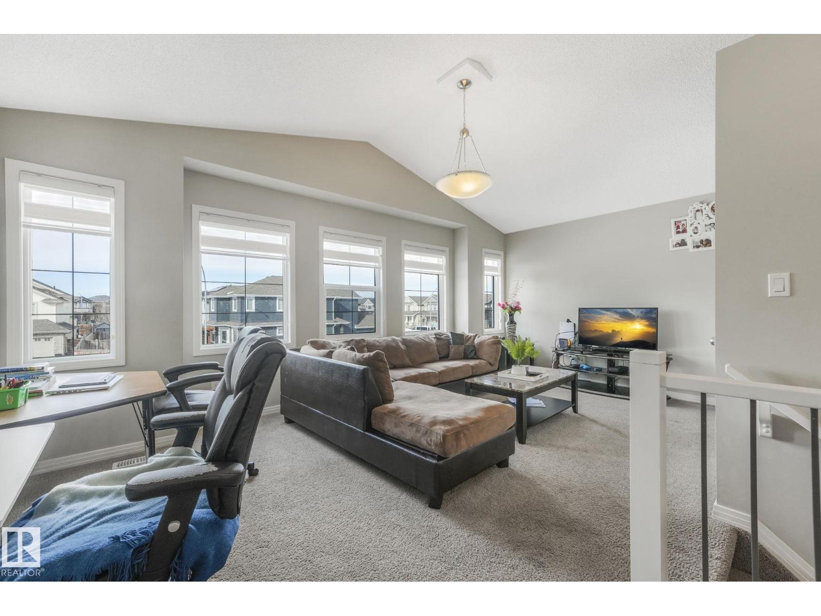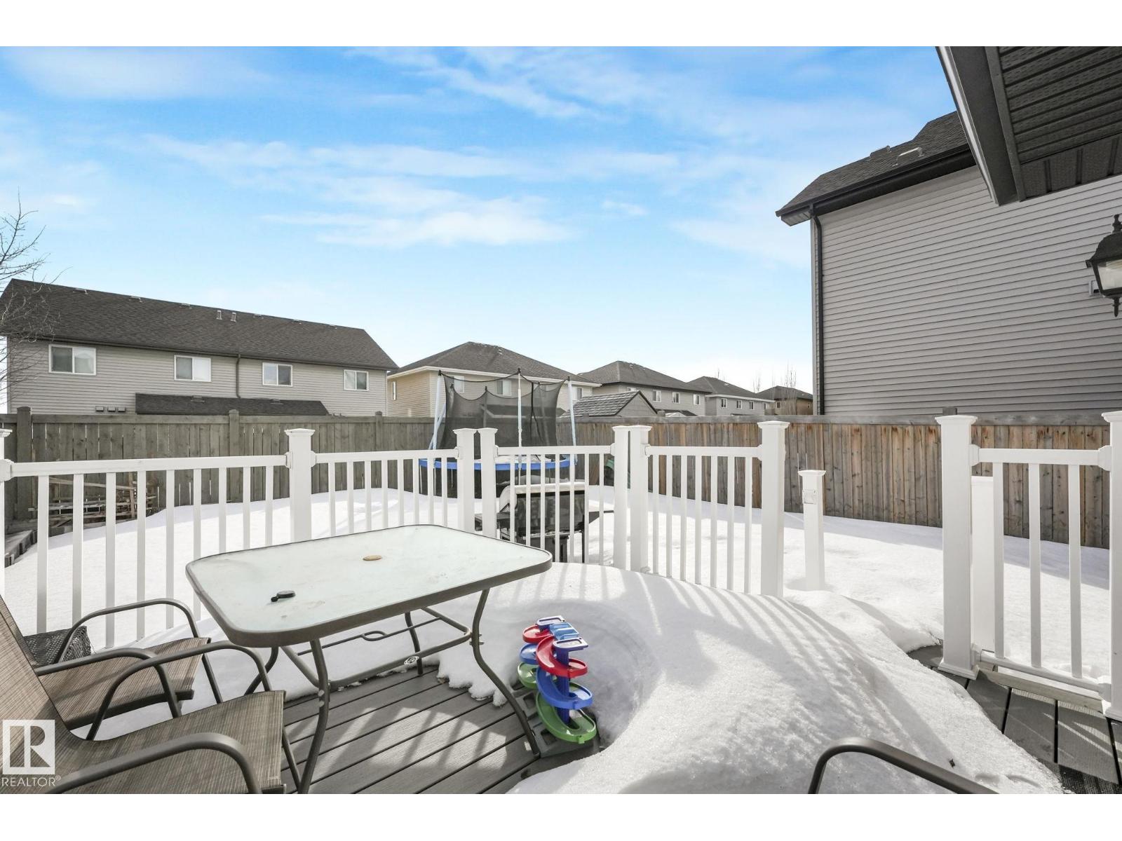 STUNNING FAMILY HOME IN CARLTON! Beautifully maintained by the original owners, this exceptional 2 storey offers a bright open design, A/C, elegant upgrades & large windows that fill the home with light. The main floor features a gorgeous chef’s kitchen, tall espresso cabinetry, quartz countertops, corner pantry, high-end s/s appliances & large eat-up island—perfect for entertaining. The dining area opens to the deck with maintenance-free railings & flows into the inviting living room with a modern fireplace. A 2-pc bath & convenient mudroom complete the main level. Upstairs you’ll find a huge vaulted bonus room with oversized windows, laundry, 3 beds & full bath. The spacious primary suite offers a w/i closet & luxurious 5-pc ensuite with corner soaker tub & separate glass shower. The unfinished basement provides excellent future potential. Outside has great curb appeal, fenced yard & insulated, drywalled d/attached garage. Ideally located near parks, schools & shopping—an incredible place to call home!! (id:63190)