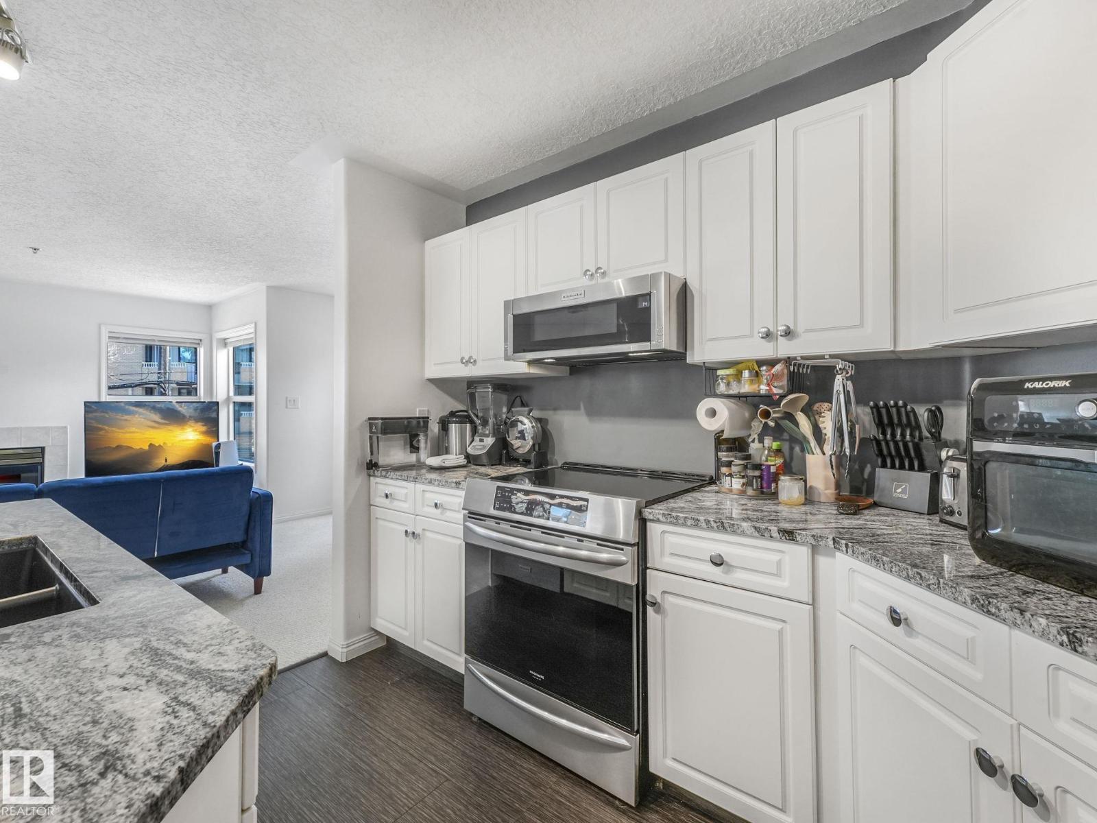 Experience the ultimate urban lifestyle in this bright corner-unit condo located in the vibrant Wîhkwêntôwin neighbourhood. Expansive north and east facing windows allow tons of natural light to fill every corner of the home, creating an airy and welcoming atmosphere. The heart of the residence is an upgraded kitchen featuring, stainless steel appliances, stone countertops, and modern finishes. This spacious layout includes a large living area that transitions seamlessly into the dining space. Two generous bedrooms and two updated full bathrooms provide comfort and privacy, including a primary suite with its own private ensuite. Modern conveniences include in-suite laundry and a secure, underground heated parking stall to protect your vehicle from the Alberta winter. Located just steps from local boutiques, diverse dining, and essential shopping. With excellent access to schools and public transit, this home perfectly connects you to the best of Edmonton. (id:63190)